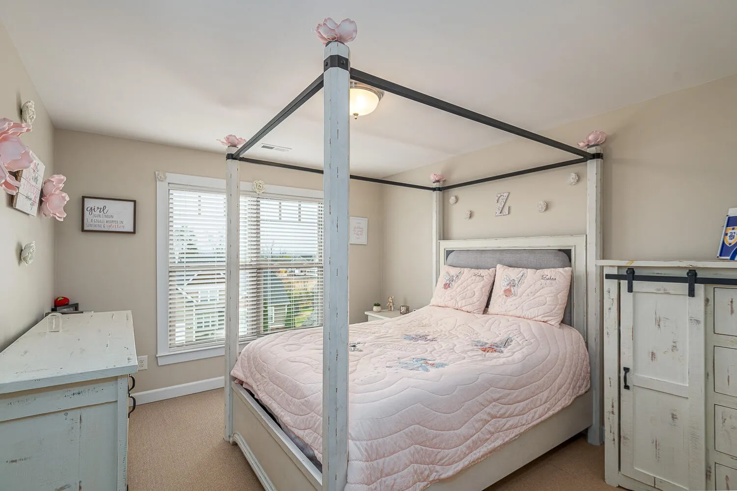 Upstairs, three spacious bedrooms each feature walk-in closets and share a thoughtfully designed full bath with separate vanity areas for added functionality. One bedroom also includes access to attic storage.