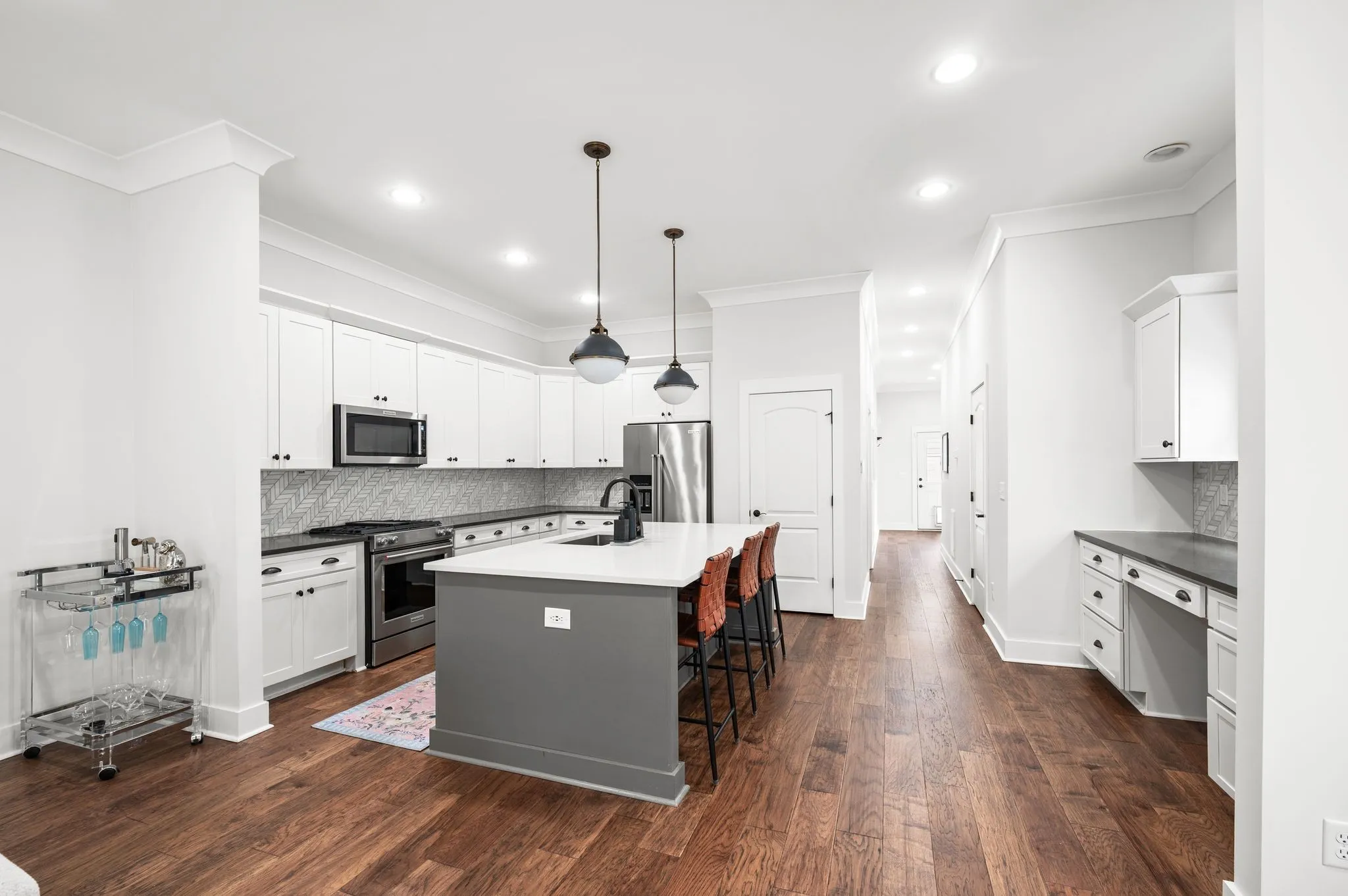 A light and airy Craftsman-style gem in the heart of Sylvan Park! Step inside to find a bright, open floor plan featuring tall ceilings and designer finishes throughout. The spacious kitchen is a true centerpiece with a huge island, built-in office space, quartz countertops, and gas appliances, perfect for cooking, entertaining, or working from home.