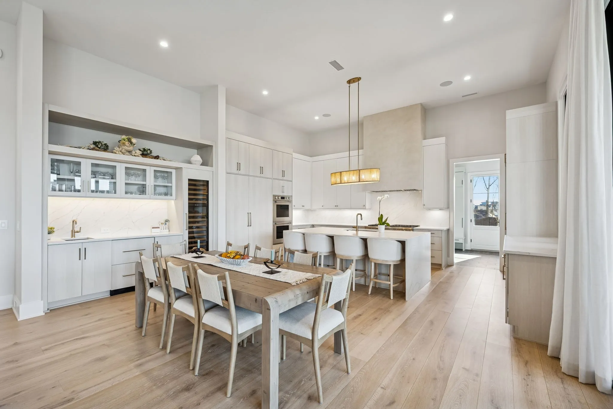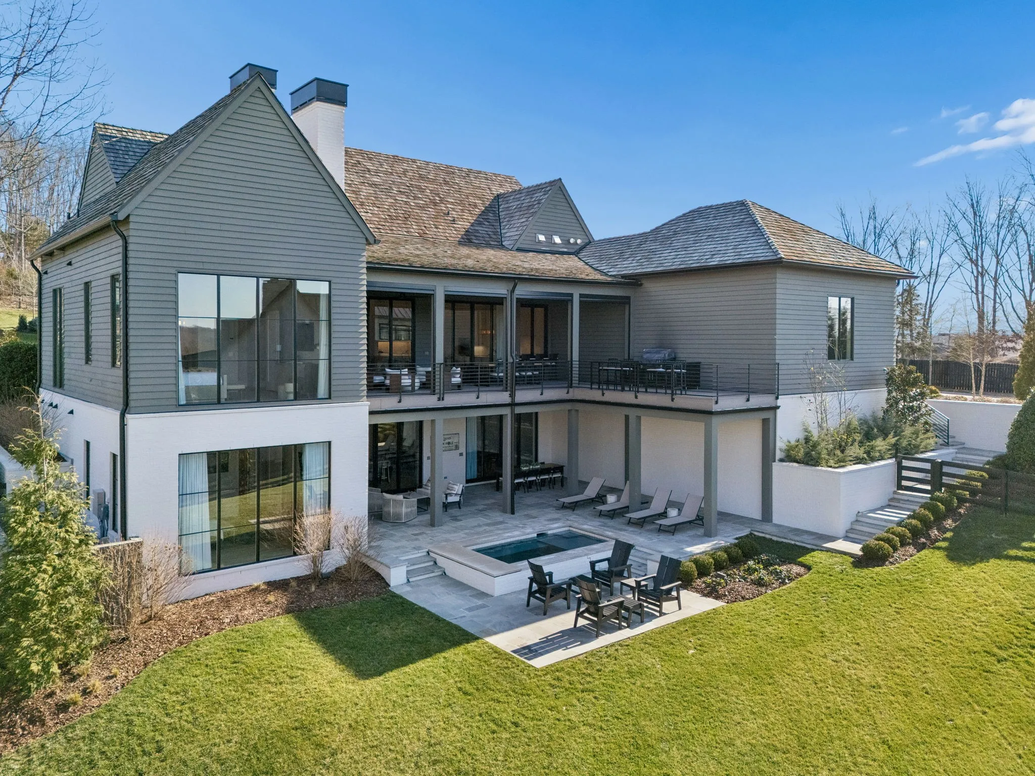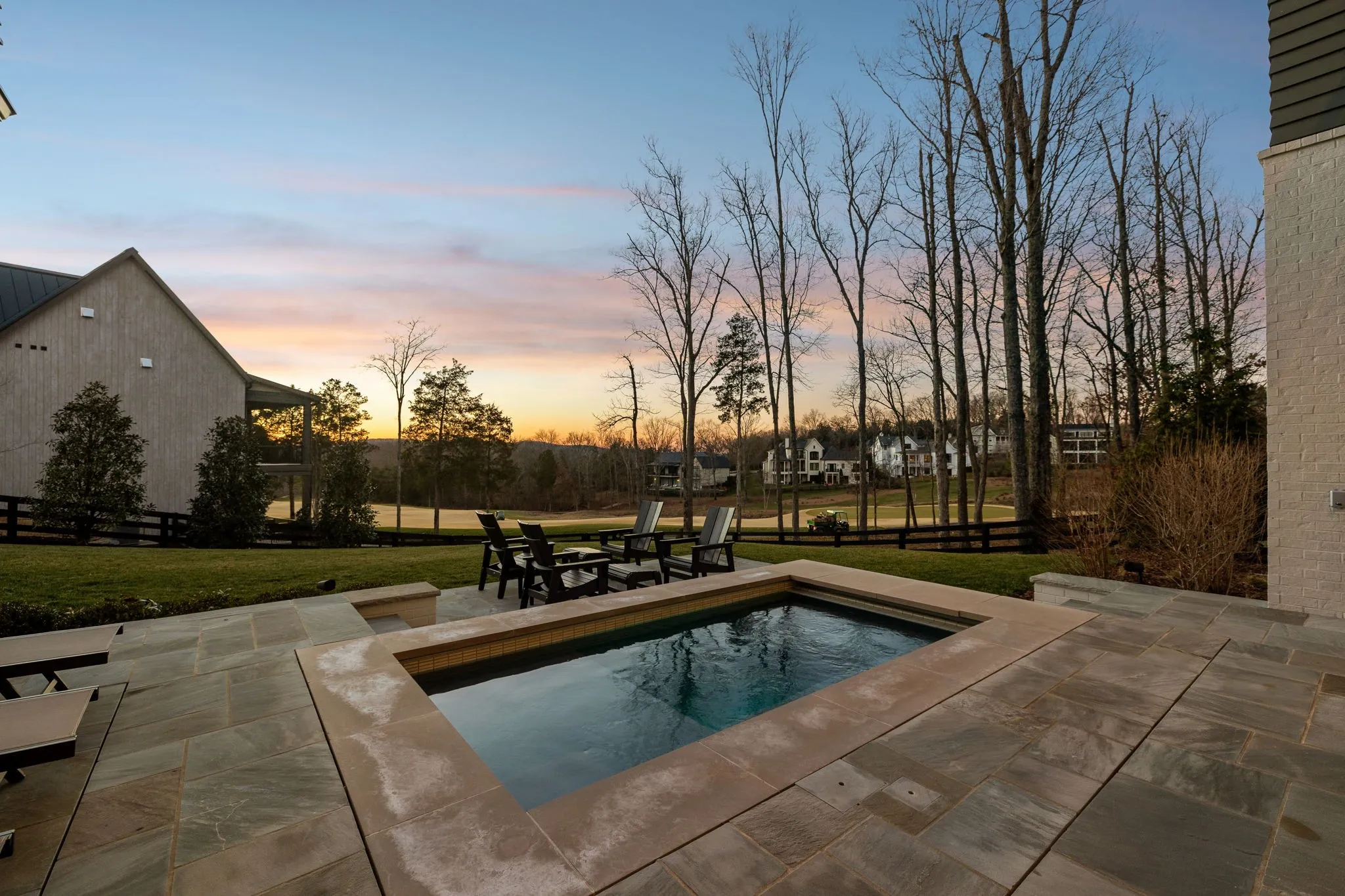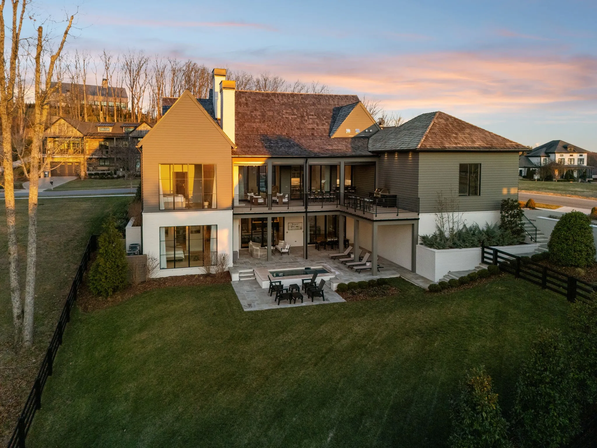 This exceptional modern residence blends timeless architectural elegance with curated designer finishes throughout. Natural light pours through expansive picture windows highlighting wide‑plank hardwood floors, soaring ceilings, and an open‑concept layout designed for beauty and everyday comfort. The inviting living room centers around a striking fireplace framed by custom built‑ins, while glass doors open to the covered outdoor living area overlooking the 9th hole and stunning west‑facing sunset views. The chef’s kitchen features premium Wolf and Sub‑Zero appliances, including a double oven, gas cooktop, paneled refrigerator, dishwasher, and wine refrigerator, complemented by a spacious walk‑in pantry. Thoughtfully separated living spaces and laundry rooms upstairs and downstairs provide privacy and effortless flow throughout the home. Step outside to enjoy a private pool area that enhances indoor–outdoor living year‑round. Ideally positioned with direct cart‑path access to the Clubhouse, Fitness Center, Spa, Pool, and Golf Course, this home offers resort‑style living at finest. Community amenities include an infinity‑edge pool with chic cabanas, elevated hot tubs, a serene spa sanctuary, and multiple dining venues offering both casual and gourmet experiences. Golf enthusiasts will appreciate the championship course and scenic short course with pristine fairways suited for all levels. Stay active in the state‑of‑the‑art fitness center or enjoy world-class tennis and pickleball courts. Beyond the courts, explore curated outdoor adventures—from hiking and biking trails to peaceful fishing at the exclusive fish camp. Every amenity is crafted to inspire relaxation, connection, and an extraordinary everyday lifestyle. Whether hosting gatherings or enjoying quiet evenings at home, the setting provides a perfect blend of comfort and sophistication. The community’s peaceful ambiance enhances the home’s exceptional appeal, offering a truly elevated way of living.