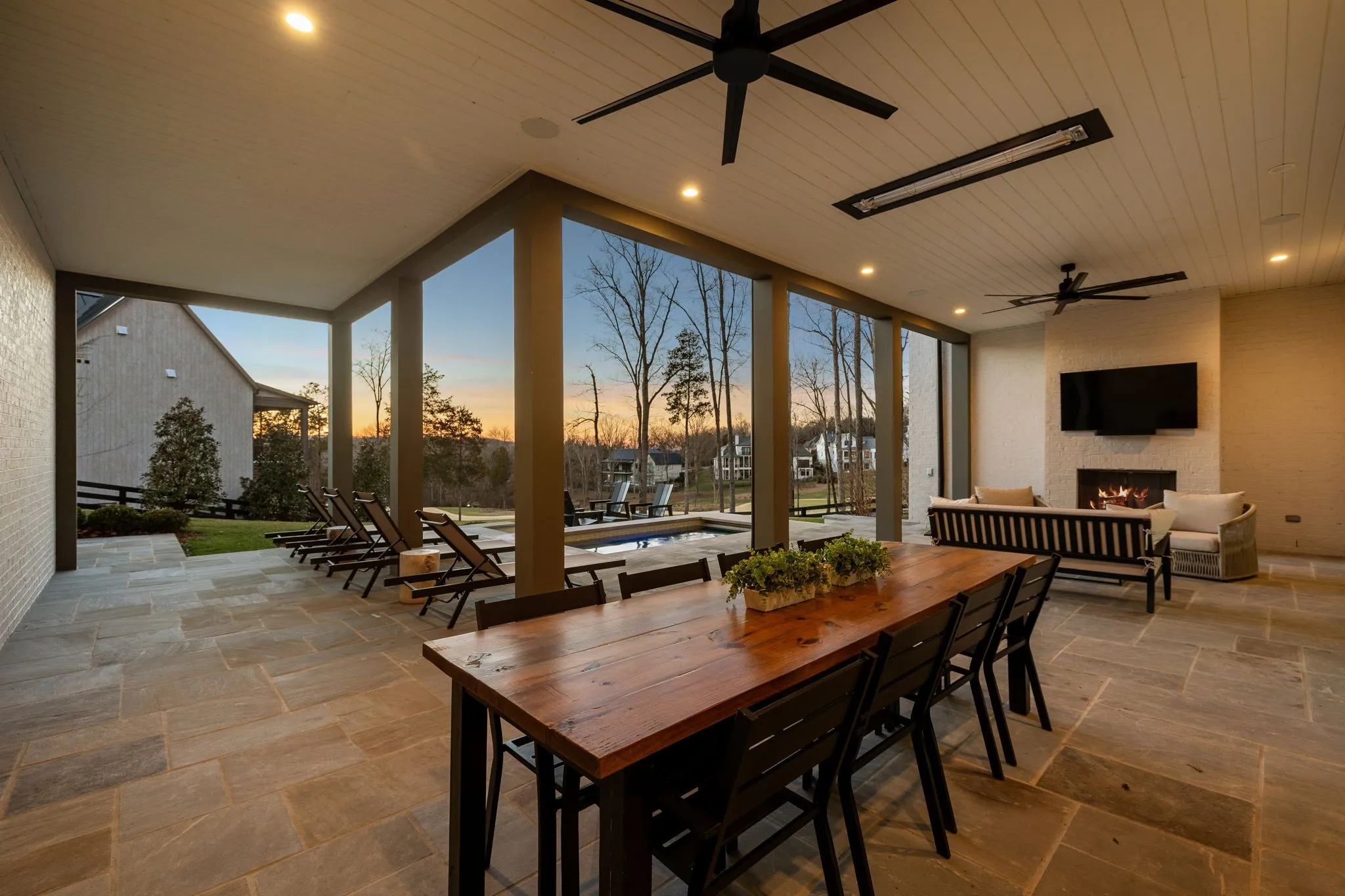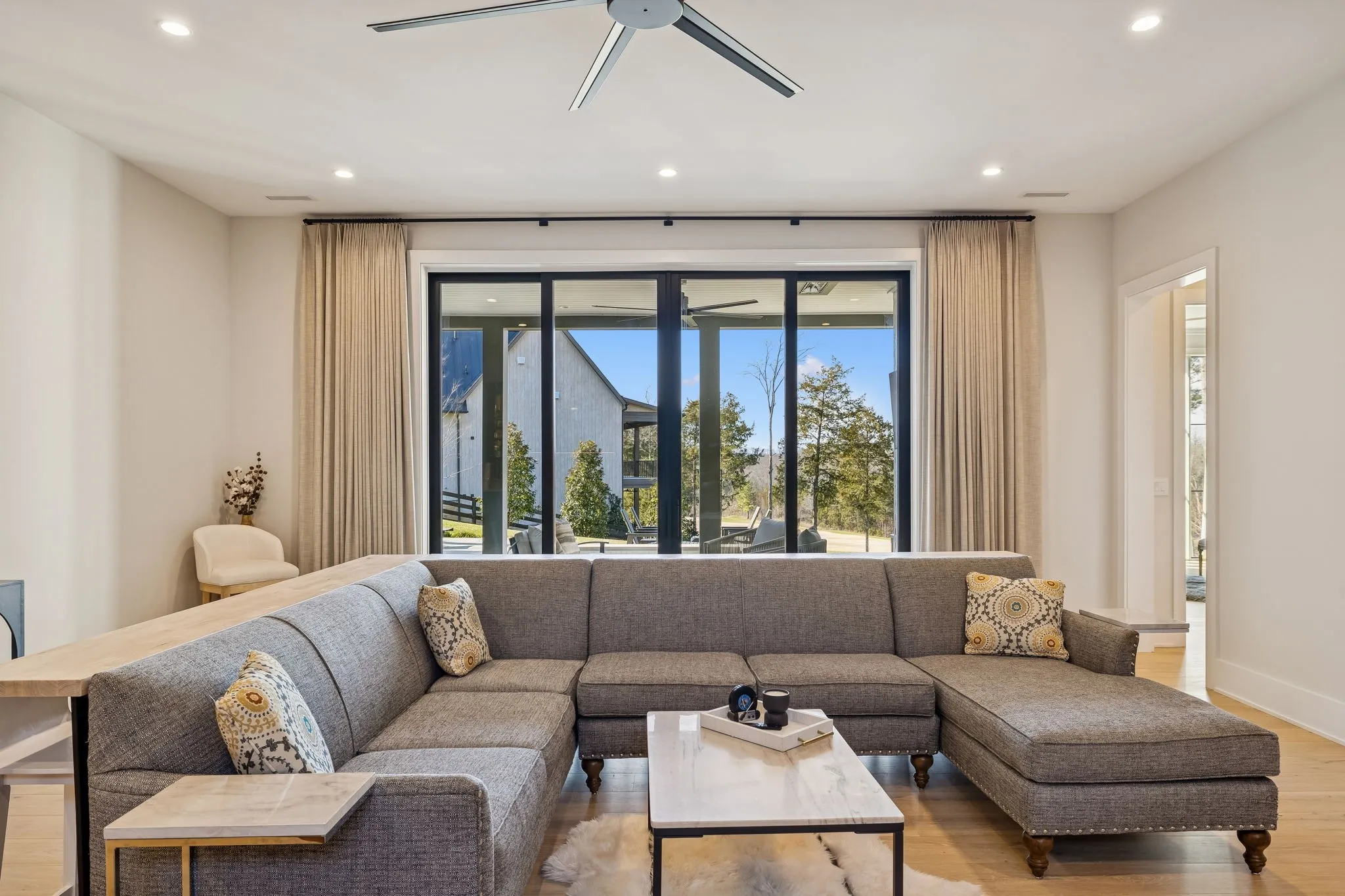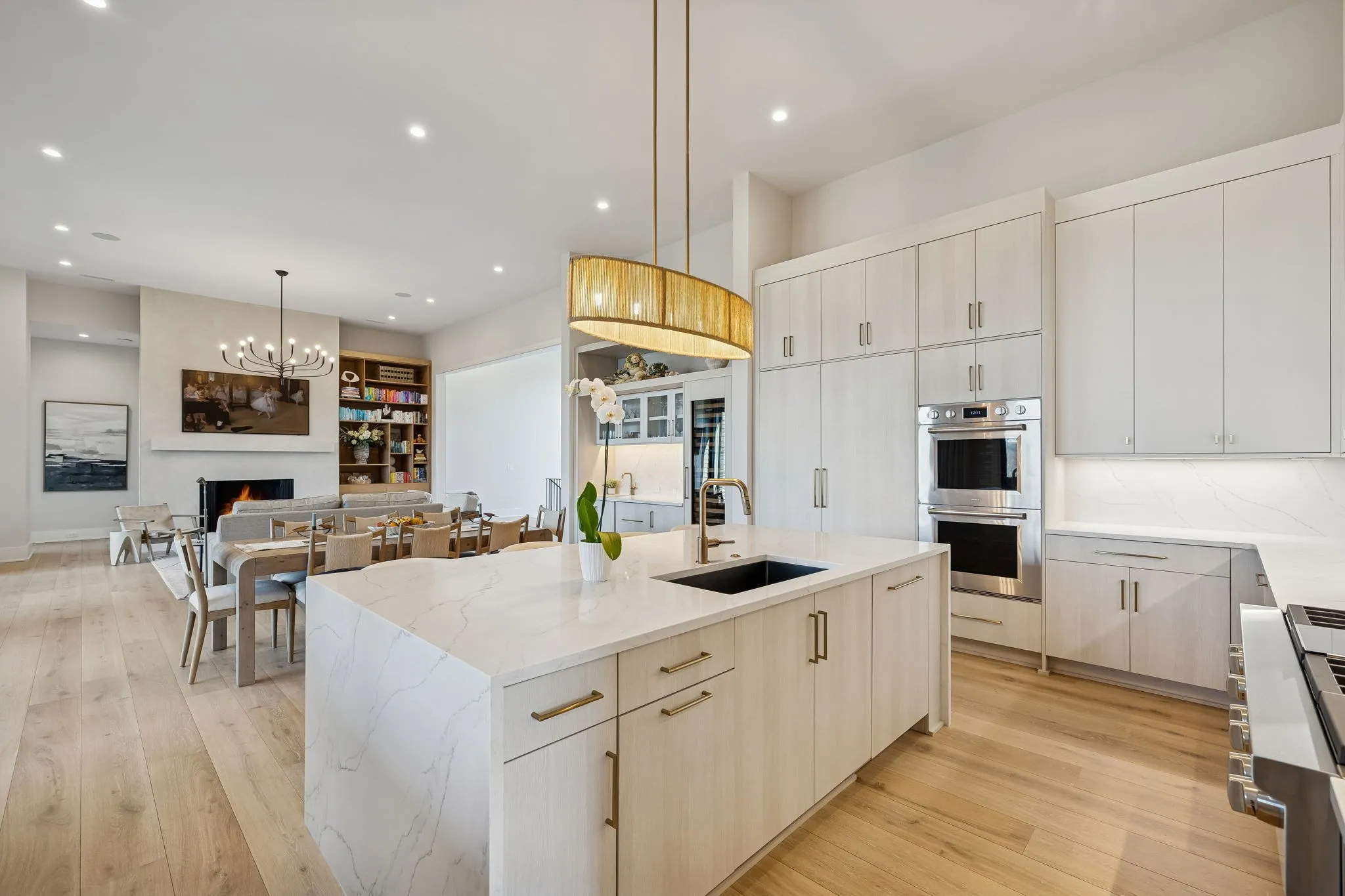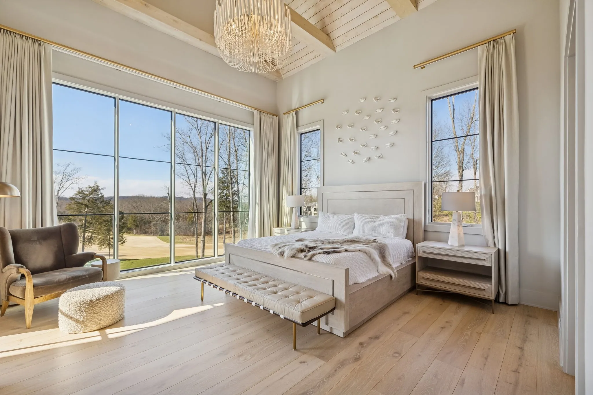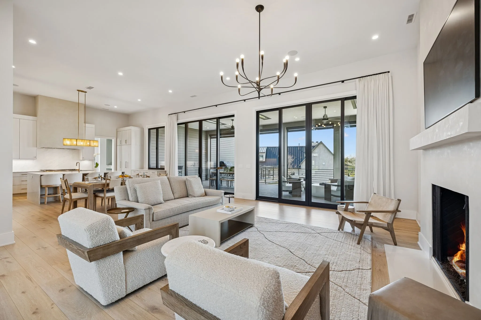 This exceptional modern residence blends timeless architectural elegance with curated designer finishes throughout. Natural light pours through expansive picture windows highlighting wide‑plank hardwood floors, soaring ceilings, and an open‑concept layout designed for beauty and everyday comfort. The inviting living room centers around a striking fireplace framed by custom built‑ins, while glass doors open to the covered outdoor living area overlooking the 9th hole and stunning west‑facing sunset views. The chef’s kitchen features premium Wolf and Sub‑Zero appliances, including a double oven, gas cooktop, paneled refrigerator, dishwasher, and wine refrigerator, complemented by a spacious walk‑in pantry. Thoughtfully separated living spaces and laundry rooms upstairs and downstairs provide privacy and effortless flow throughout the home. Step outside to enjoy a private pool area that enhances indoor–outdoor living year‑round. Ideally positioned with direct cart‑path access to the Clubhouse, Fitness Center, Spa, Pool, and Golf Course, this home offers resort‑style living at finest. Community amenities include an infinity‑edge pool with chic cabanas, elevated hot tubs, a serene spa sanctuary, and multiple dining venues offering both casual and gourmet experiences. Golf enthusiasts will appreciate the championship course and scenic short course with pristine fairways suited for all levels. Stay active in the state‑of‑the‑art fitness center or enjoy world-class tennis and pickleball courts. Beyond the courts, explore curated outdoor adventures—from hiking and biking trails to peaceful fishing at the exclusive fish camp. Every amenity is crafted to inspire relaxation, connection, and an extraordinary everyday lifestyle. Whether hosting gatherings or enjoying quiet evenings at home, the setting provides a perfect blend of comfort and sophistication. The community’s peaceful ambiance enhances the home’s exceptional appeal, offering a truly elevated way of living.