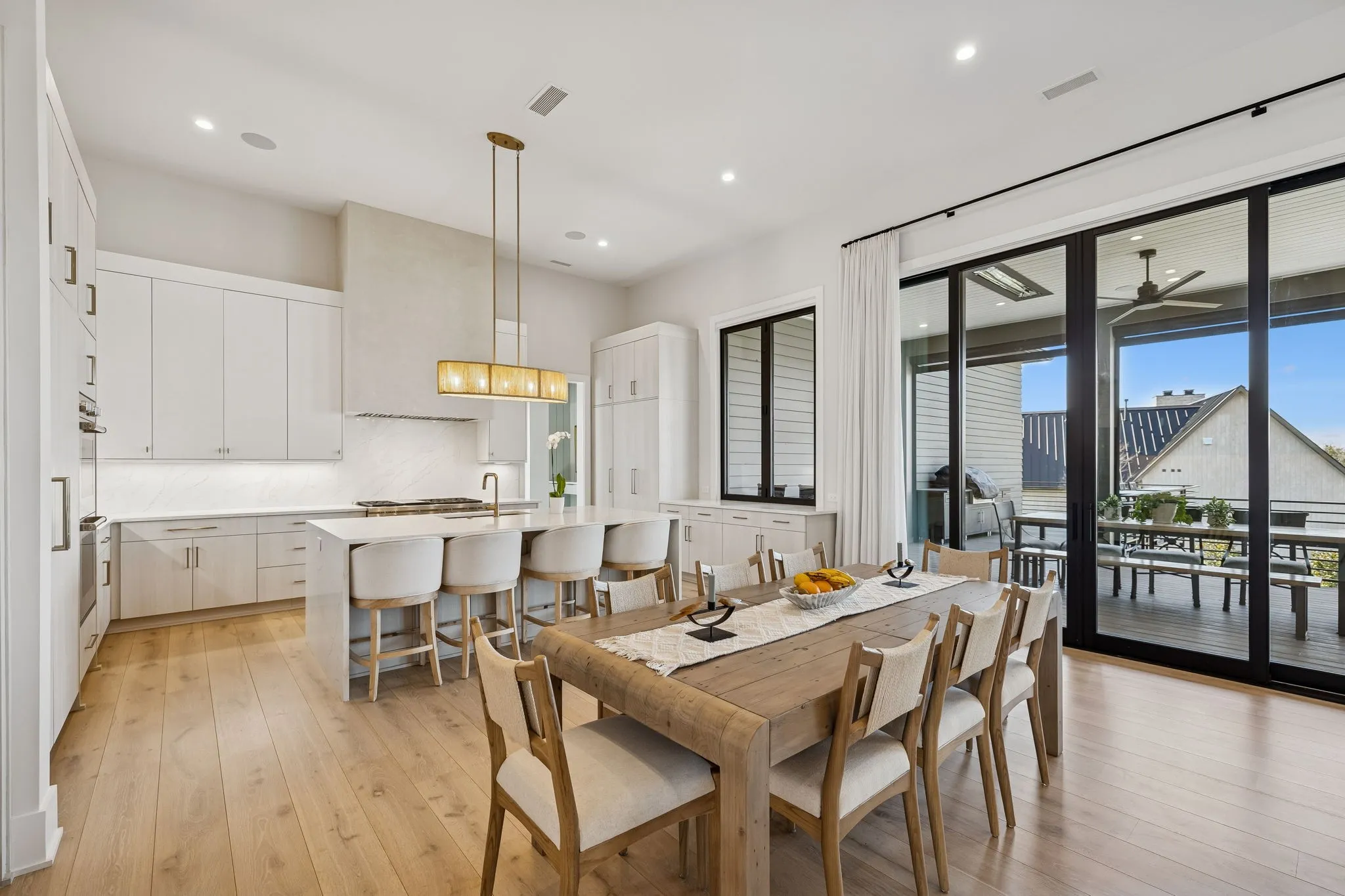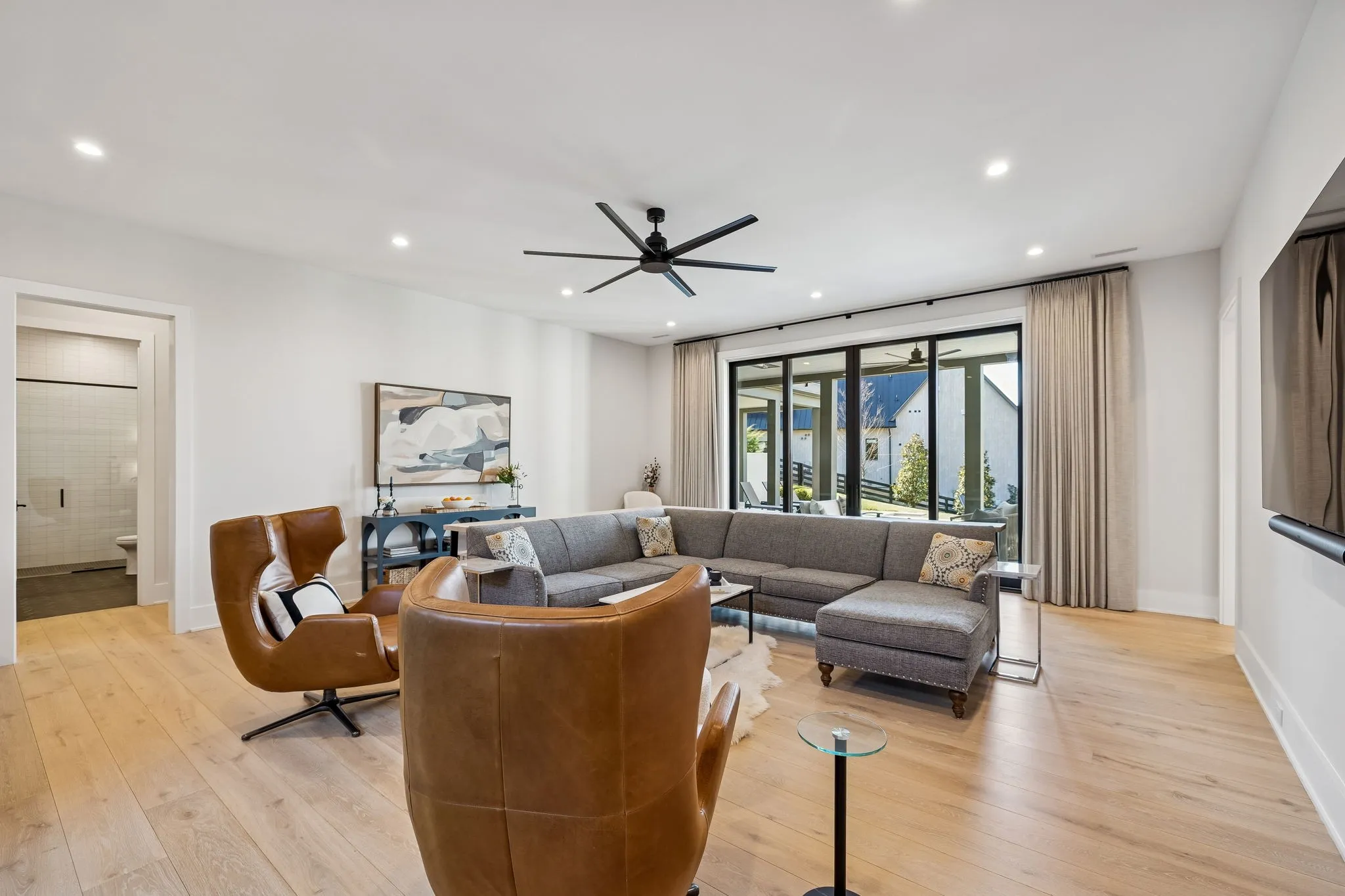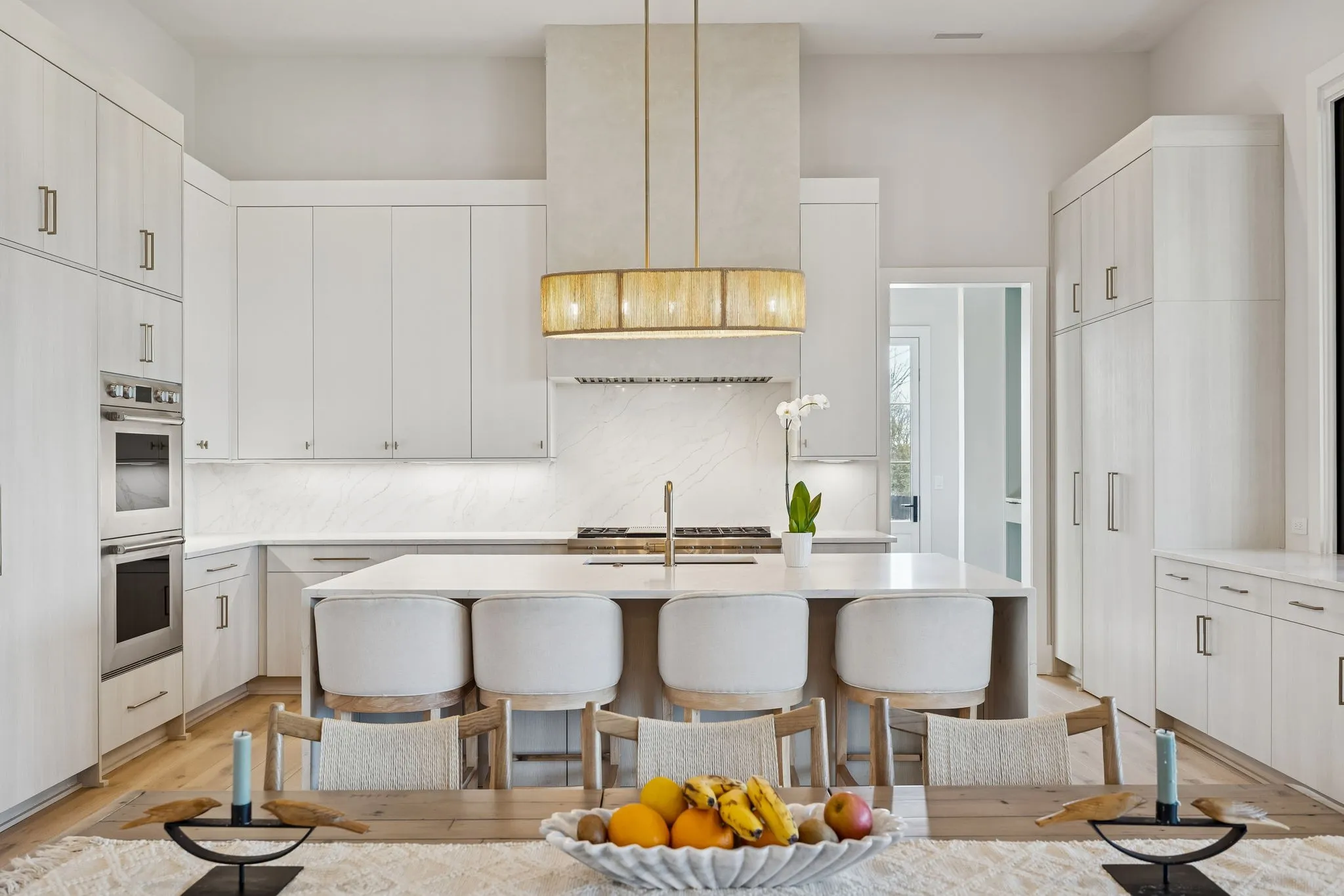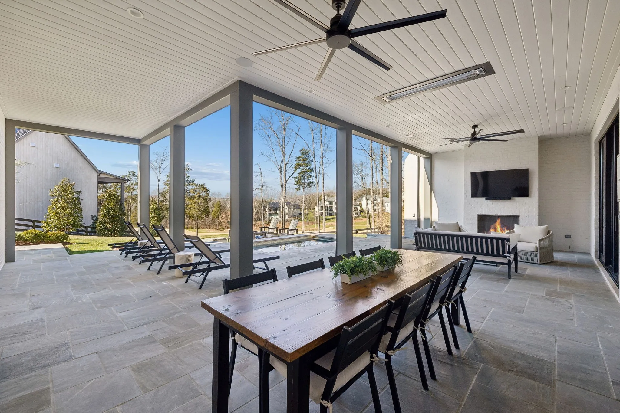 This exceptional modern residence blends timeless architectural elegance with curated designer finishes throughout. Natural light pours through expansive picture windows highlighting wide‑plank hardwood floors, soaring ceilings, and an open‑concept layout designed for beauty and everyday comfort. The inviting living room centers around a striking fireplace framed by custom built‑ins, while glass doors open to the covered outdoor living area overlooking the 9th hole and stunning west‑facing sunset views. The chef’s kitchen features premium Wolf and Sub‑Zero appliances, including a double oven, gas cooktop, paneled refrigerator, dishwasher, and wine refrigerator, complemented by a spacious walk‑in pantry. Thoughtfully separated living spaces and laundry rooms upstairs and downstairs provide privacy and effortless flow throughout the home. Step outside to enjoy a private pool area that enhances indoor–outdoor living year‑round. Ideally positioned with direct cart‑path access to the Clubhouse, Fitness Center, Spa, Pool, and Golf Course, this home offers resort‑style living at finest. Community amenities include an infinity‑edge pool with chic cabanas, elevated hot tubs, a serene spa sanctuary, and multiple dining venues offering both casual and gourmet experiences. Golf enthusiasts will appreciate the championship course and scenic short course with pristine fairways suited for all levels. Stay active in the state‑of‑the‑art fitness center or enjoy world-class tennis and pickleball courts. Beyond the courts, explore curated outdoor adventures—from hiking and biking trails to peaceful fishing at the exclusive fish camp. Every amenity is crafted to inspire relaxation, connection, and an extraordinary everyday lifestyle. Whether hosting gatherings or enjoying quiet evenings at home, the setting provides a perfect blend of comfort and sophistication. The community’s peaceful ambiance enhances the home’s exceptional appeal, offering a truly elevated way of living.