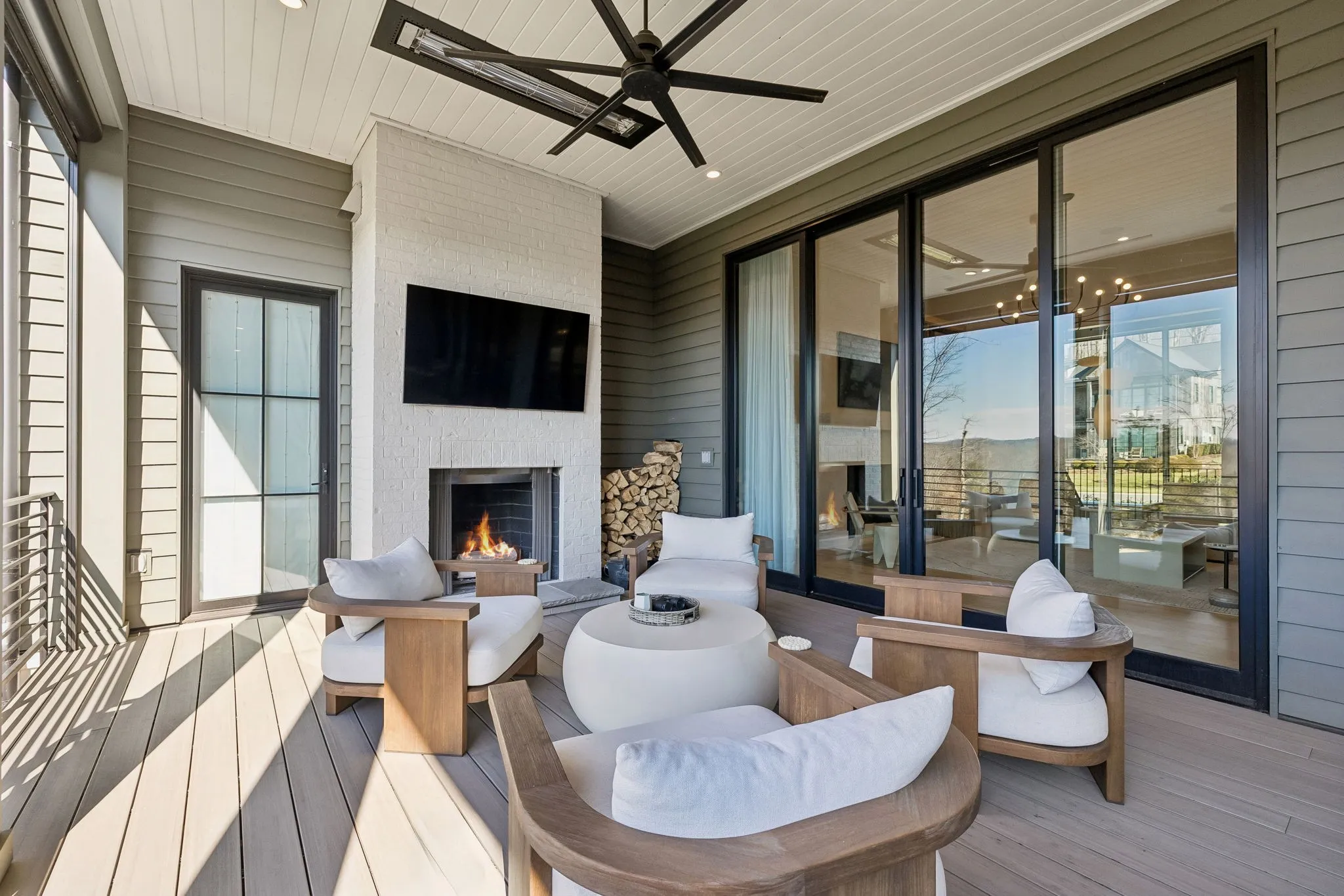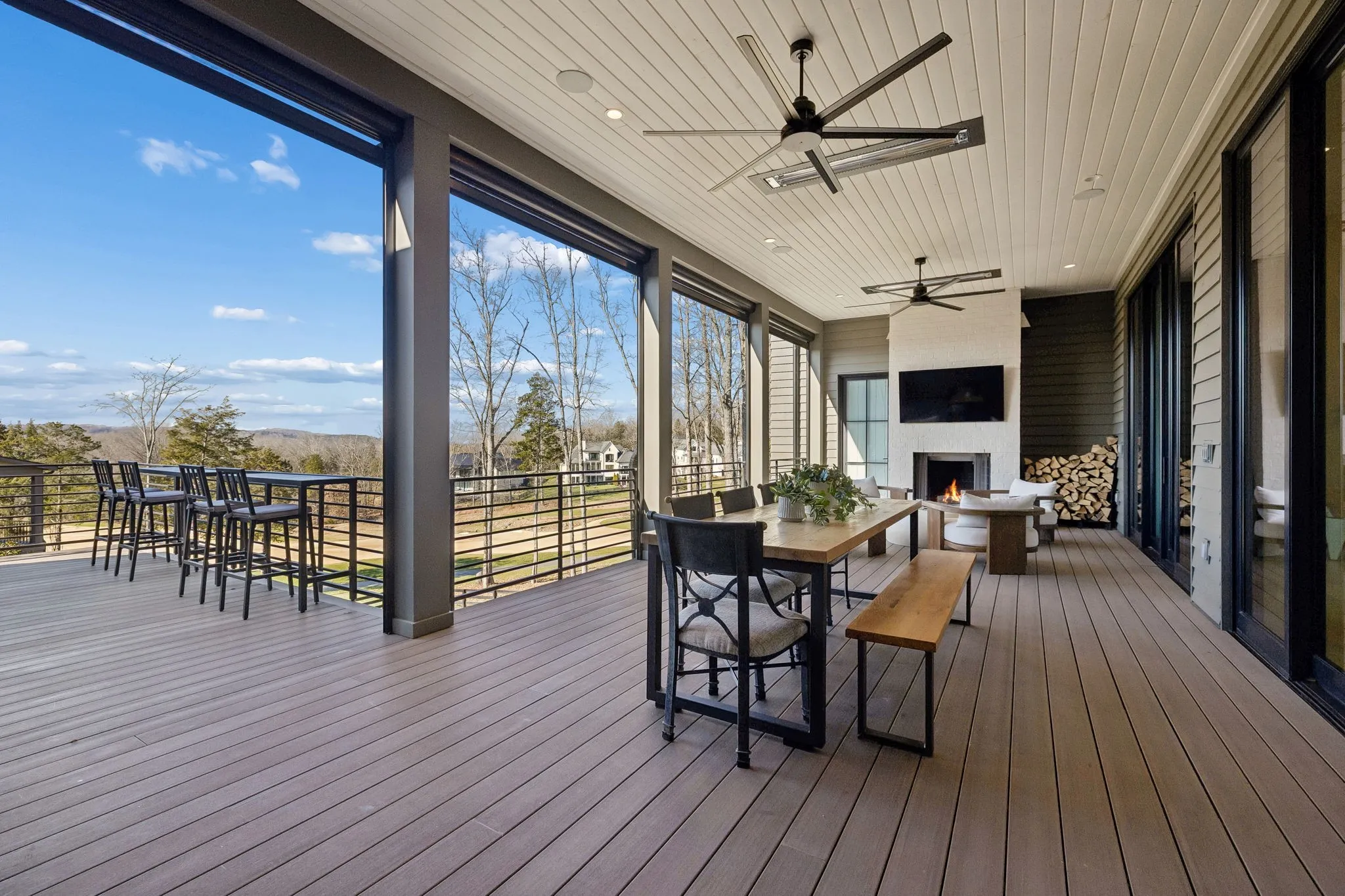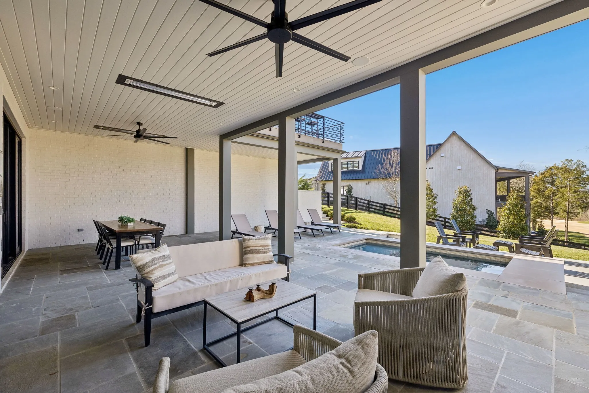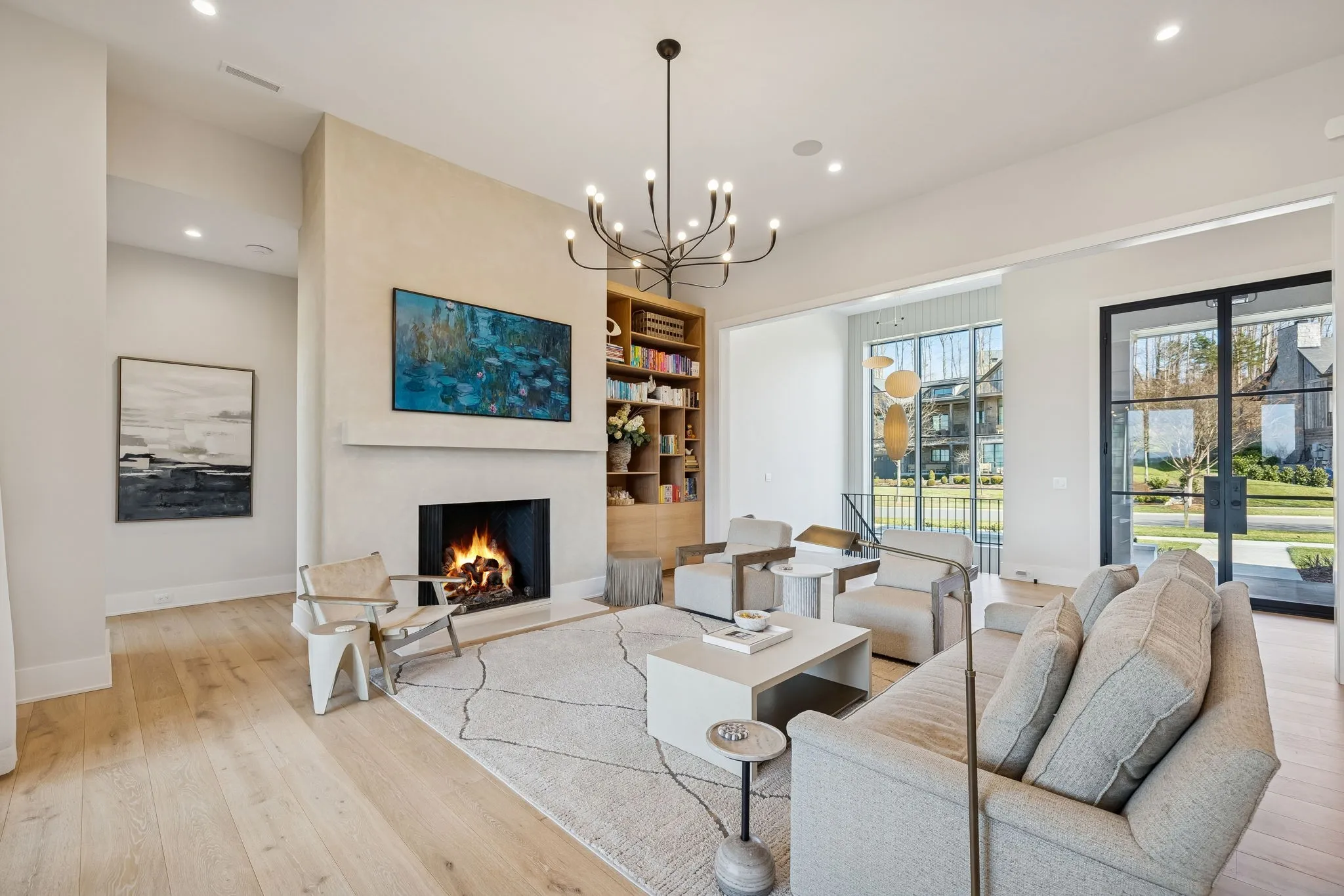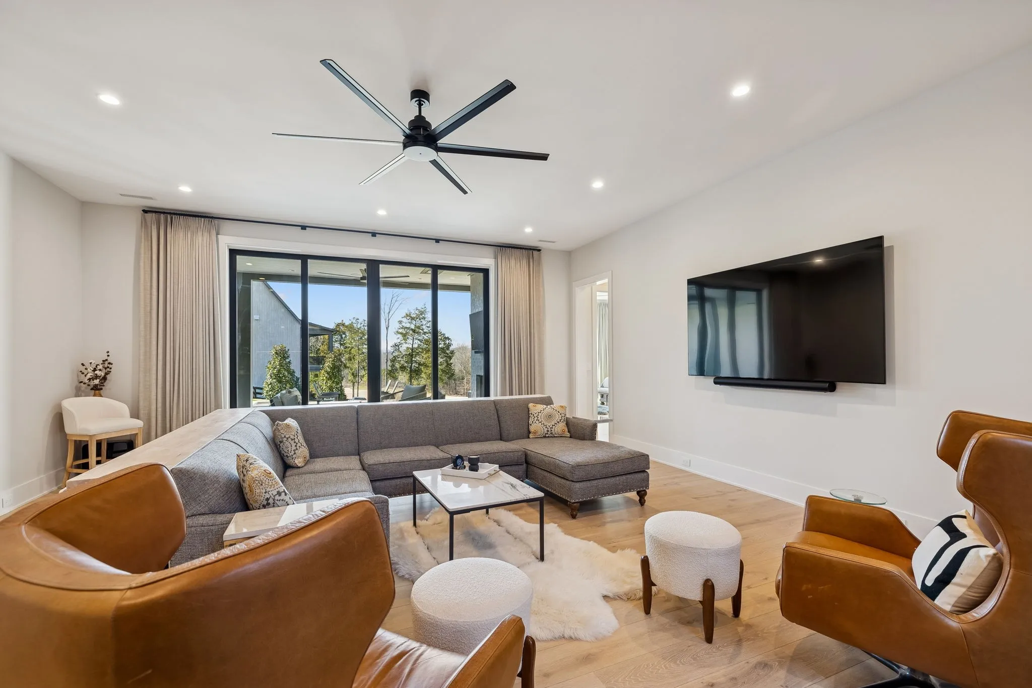 This exceptional modern residence blends timeless architectural elegance with curated designer finishes throughout. Natural light pours through expansive picture windows highlighting wide‑plank hardwood floors, soaring ceilings, and an open‑concept layout designed for beauty and everyday comfort. The inviting living room centers around a striking fireplace framed by custom built‑ins, while glass doors open to the covered outdoor living area overlooking the 9th hole and stunning west‑facing sunset views. The chef’s kitchen features premium Wolf and Sub‑Zero appliances, including a double oven, gas cooktop, paneled refrigerator, dishwasher, and wine refrigerator, complemented by a spacious walk‑in pantry. Thoughtfully separated living spaces and laundry rooms upstairs and downstairs provide privacy and effortless flow throughout the home. Step outside to enjoy a private pool area that enhances indoor–outdoor living year‑round. Ideally positioned with direct cart‑path access to the Clubhouse, Fitness Center, Spa, Pool, and Golf Course, this home offers resort‑style living at finest. Community amenities include an infinity‑edge pool with chic cabanas, elevated hot tubs, a serene spa sanctuary, and multiple dining venues offering both casual and gourmet experiences. Golf enthusiasts will appreciate the championship course and scenic short course with pristine fairways suited for all levels. Stay active in the state‑of‑the‑art fitness center or enjoy world-class tennis and pickleball courts. Beyond the courts, explore curated outdoor adventures—from hiking and biking trails to peaceful fishing at the exclusive fish camp. Every amenity is crafted to inspire relaxation, connection, and an extraordinary everyday lifestyle. Whether hosting gatherings or enjoying quiet evenings at home, the setting provides a perfect blend of comfort and sophistication. The community’s peaceful ambiance enhances the home’s exceptional appeal, offering a truly elevated way of living.