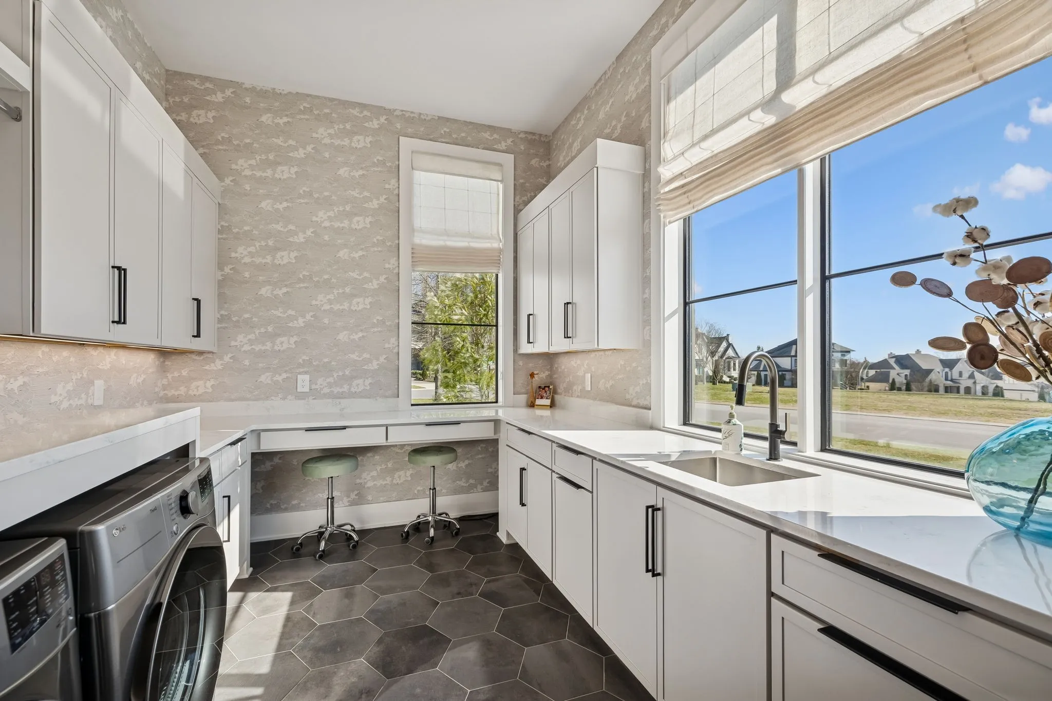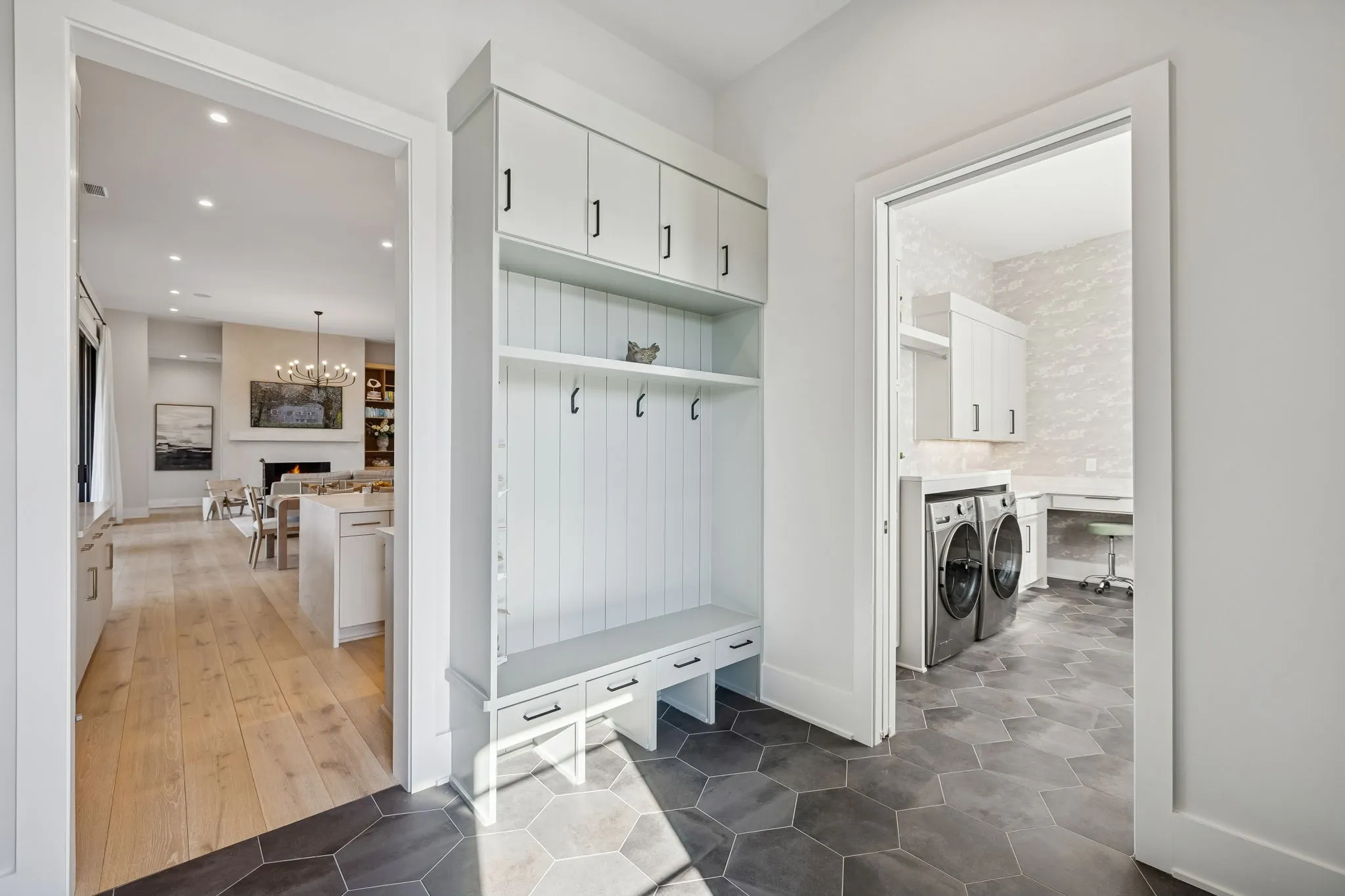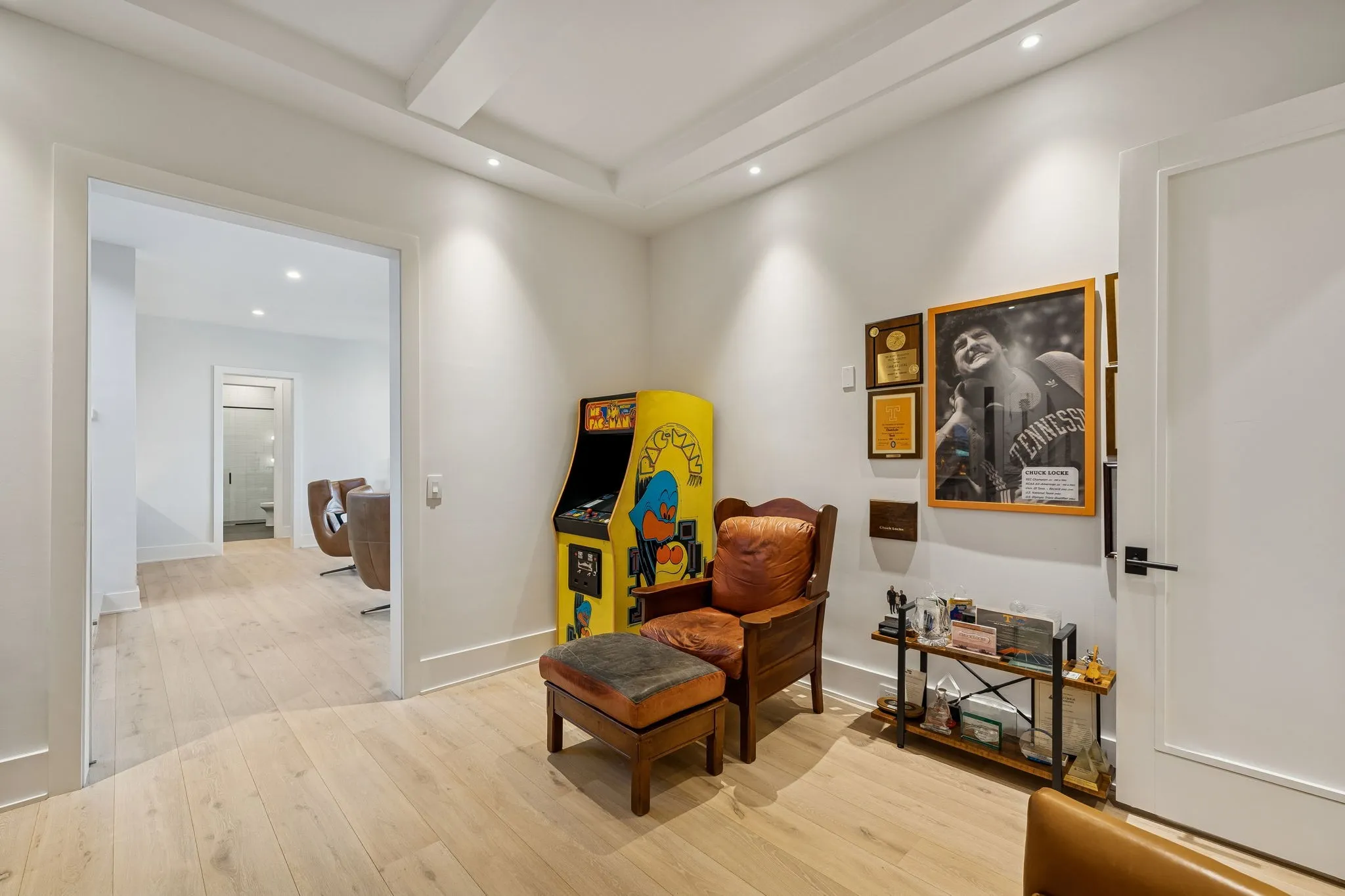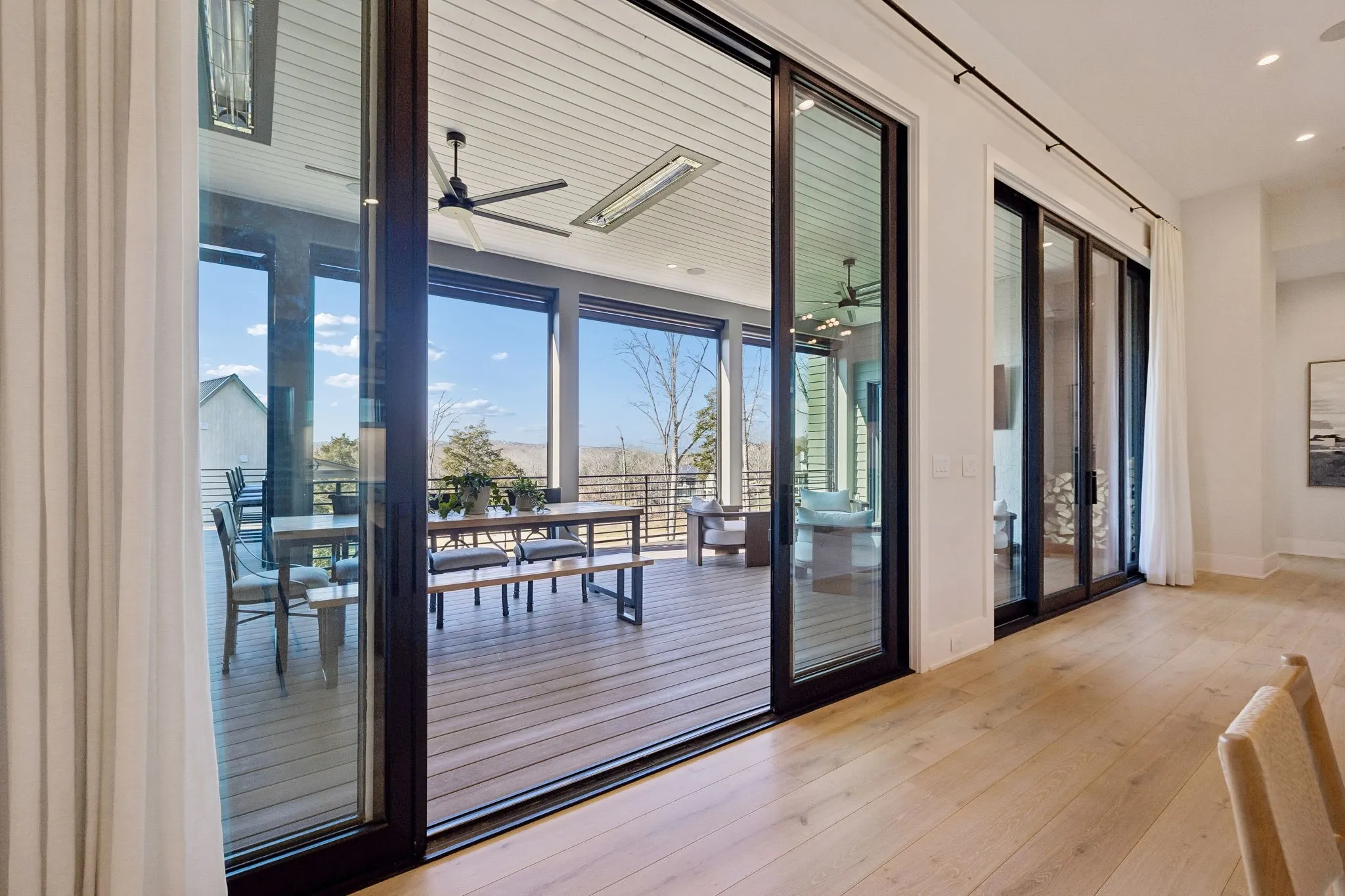 This exceptional modern residence blends timeless architectural elegance with curated designer finishes throughout. Natural light pours through expansive picture windows highlighting wide‑plank hardwood floors, soaring ceilings, and an open‑concept layout designed for beauty and everyday comfort. The inviting living room centers around a striking fireplace framed by custom built‑ins, while glass doors open to the covered outdoor living area overlooking the 9th hole and stunning west‑facing sunset views. The chef’s kitchen features premium Wolf and Sub‑Zero appliances, including a double oven, gas cooktop, paneled refrigerator, dishwasher, and wine refrigerator, complemented by a spacious walk‑in pantry. Thoughtfully separated living spaces and laundry rooms upstairs and downstairs provide privacy and effortless flow throughout the home. Step outside to enjoy a private pool area that enhances indoor–outdoor living year‑round. Ideally positioned with direct cart‑path access to the Clubhouse, Fitness Center, Spa, Pool, and Golf Course, this home offers resort‑style living at finest. Community amenities include an infinity‑edge pool with chic cabanas, elevated hot tubs, a serene spa sanctuary, and multiple dining venues offering both casual and gourmet experiences. Golf enthusiasts will appreciate the championship course and scenic short course with pristine fairways suited for all levels. Stay active in the state‑of‑the‑art fitness center or enjoy world-class tennis and pickleball courts. Beyond the courts, explore curated outdoor adventures—from hiking and biking trails to peaceful fishing at the exclusive fish camp. Every amenity is crafted to inspire relaxation, connection, and an extraordinary everyday lifestyle. Whether hosting gatherings or enjoying quiet evenings at home, the setting provides a perfect blend of comfort and sophistication. The community’s peaceful ambiance enhances the home’s exceptional appeal, offering a truly elevated way of living.