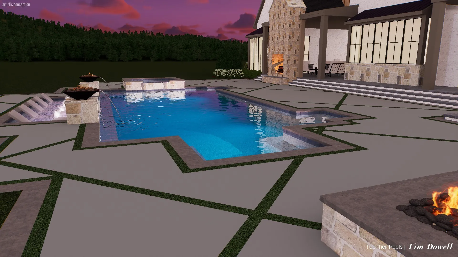 The professionally designed grounds elevate the experience even further, featuring full yard irrigation, expansive hardscaping, and a stunning pool concept by Top Tier Pools—crafted to complement both the home and surrounding landscape.