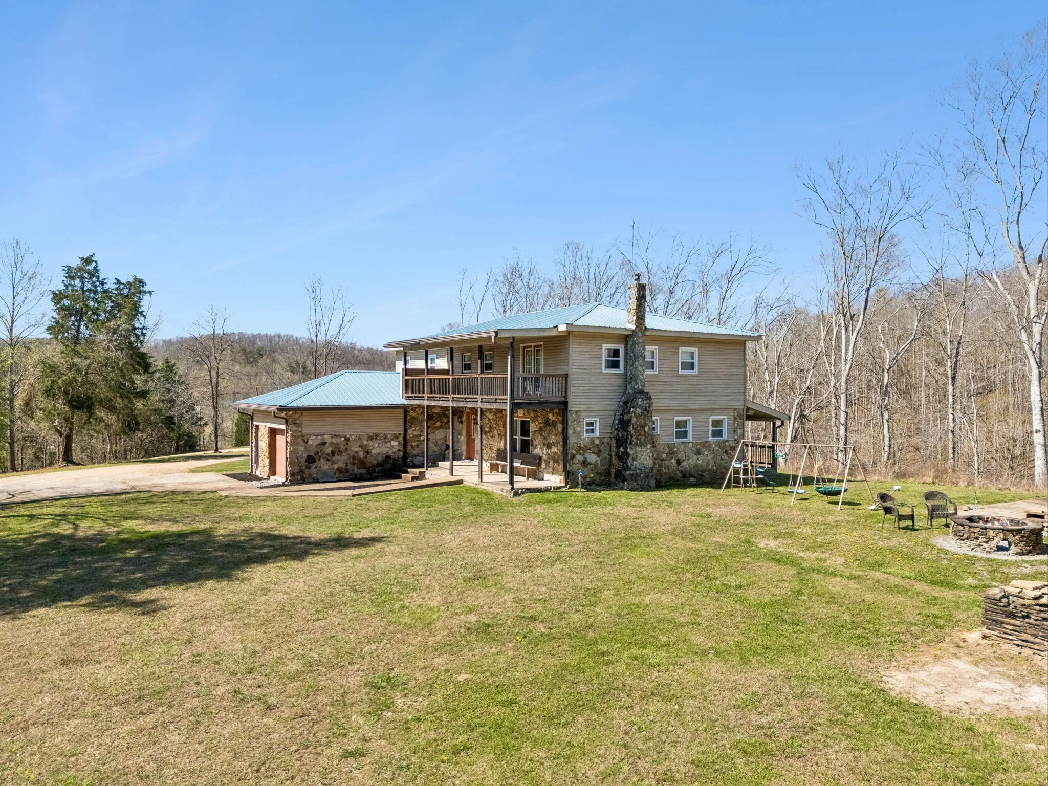 Discover a rare 112-acre private retreat featuring a serene creek, breathtaking views, and abundant wildlife, offering unmatched privacy and versatility in a peaceful, highly desirable location. The main home boasts 5 spacious bedrooms, 3 full baths, and a split floor plan designed for comfort and flow, complete with a cozy fireplace for relaxing evenings, a balcony off the master bedroom, and a deck overlooking the expansive grounds. The gourmet kitchen showcases white cabinetry, recessed lighting, and stainless steel appliances, while a dedicated canning room and attached 1-car garage add practical functionality. Expanding the possibilities, a 1,200 sq. ft. guest building features a full kitchen with two stoves, bedroom, two baths, and a convenient shower room connected to the pool area, perfect for entertaining or private accommodations. Outdoor living is elevated with a large pavilion equipped with built-in speakers, ideal for gatherings, social events, or peaceful relaxation. A detached shop provides ample space for hobbies, storage, or projects, and the three-year-old pool adds another layer of enjoyment. This property offers exceptional hunting land, potential additional build sites for a dream home, and endless opportunities for entertainment and outdoor activities. Don’t miss the chance to own a one-of-a-kind estate that combines luxury, function, and natural beauty – schedule your private showing!