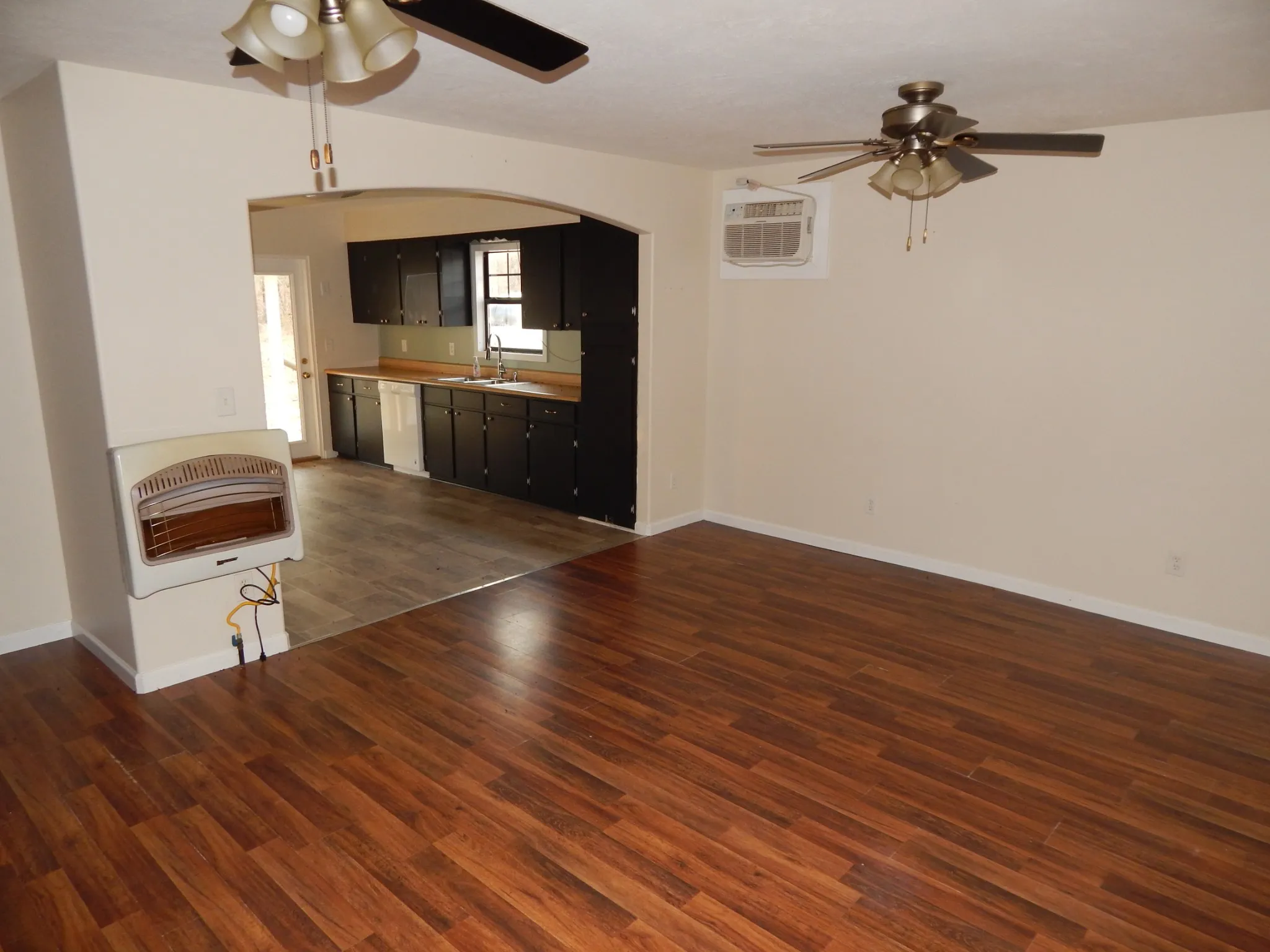 Comfort is covered year-round with wall gas heaters and window A/C units. Outside, you’ll find a spacious 24×37 detached garage/workshop, ideal for storage, hobbies, or projects.