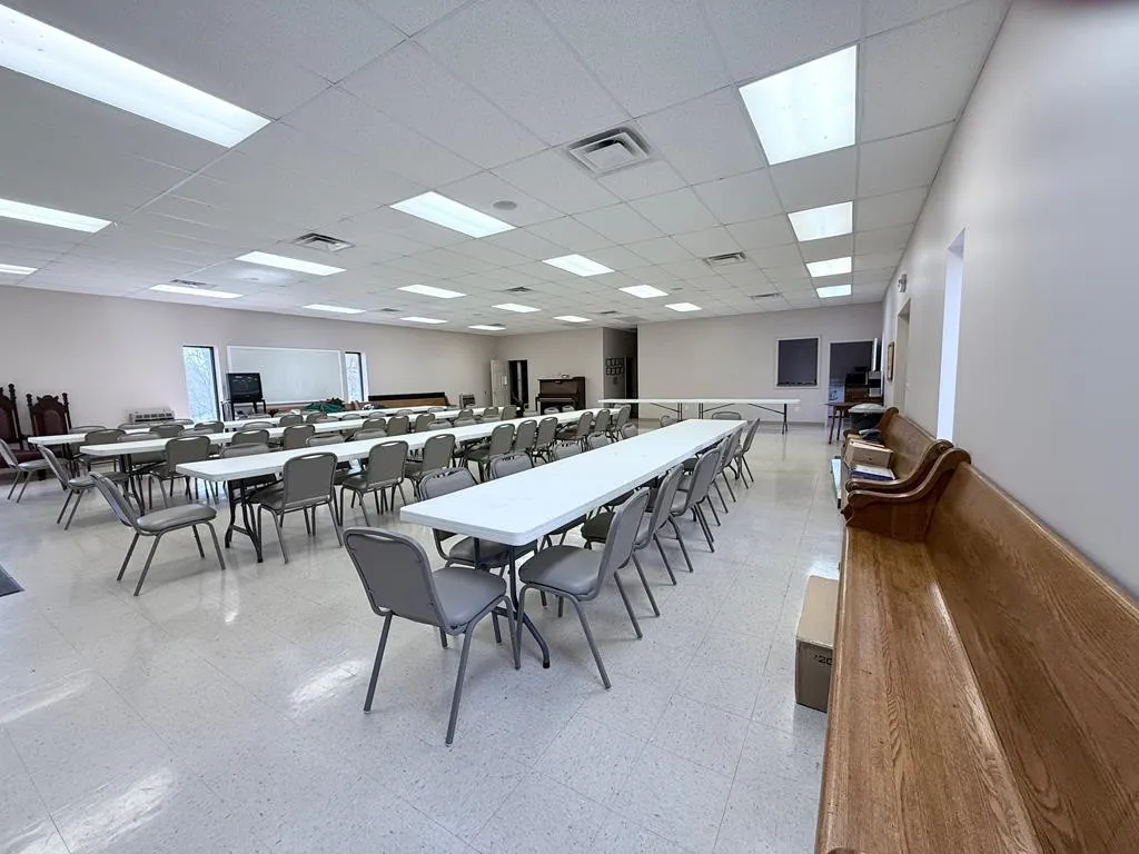 Well-maintained church facility situated on 2.5 acres with excellent visibility in the heart of Herndon, KY and ample parking. The main level offers approximately 1,518 SF and includes a spacious sanctuary with seating for around 200, a stage, foyer, and two restrooms. Double-pane windows throughout enhance the property’s character. The 1,300 SF basement provides multiple rooms suitable for Sunday school, meetings, or flexible use, along with a kitchen area. Exterior features include a large paved parking lot, prominent signage, attractive landscaping, and open green space ideal for outdoor activities. The building is equipped with a durable metal roof and three exterior entrances. Additionally, a newer 2,400 SF metal building on the property offers a large open area for events, a storage/utility space, two restrooms, and a fully functional kitchen, along with two exterior entry points. This versatile property is well-suited for a congregation or community organization.The church building was bricked in 1976 as well as the front of the building with the two restrooms. In 1985. The driveway was paved. In 1986 they put in the first HVAC unit and has been replaced since then. In 1994 the handicap rail was installed. With FPO contents included.