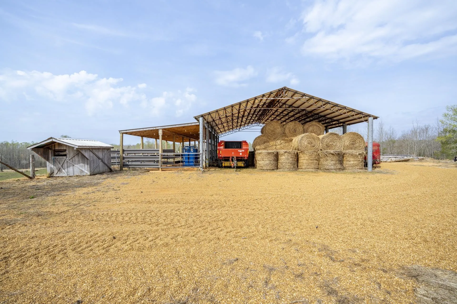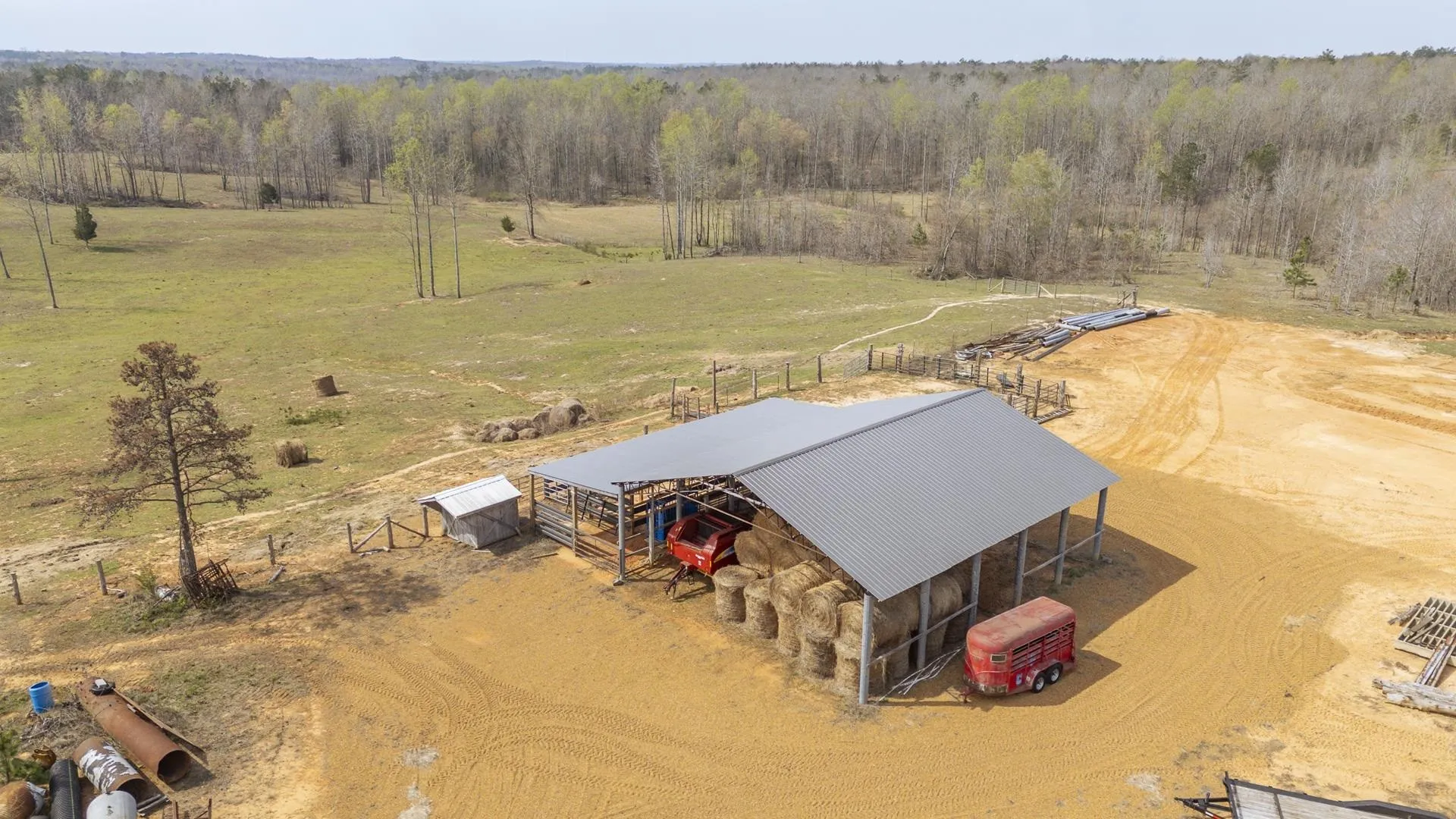 Turnkey cattle farm on 110 +/- acres with a beautifully updated home and everything you need already in place. This 3-bedroom, 2 and a half bath home features a remodeled kitchen with quartz countertops and a spacious layout designed for comfortable living. The primary suite offers a luxury bath with a separate shower, jacuzzi tub, double vanity, and tile flooring. A bright sunroom, currently used as an office, overlooks the back pasture—perfect for enjoying the view while you work or relax. The property is currently operating as a working cattle farm with approximately 45 acres fenced, two cleared areas for hay production, and includes a tractor shed, hay barn, and a shop. This property is Ideal for farming, investing, or enjoying peaceful country living! Don’t miss this wonderful opportunity!