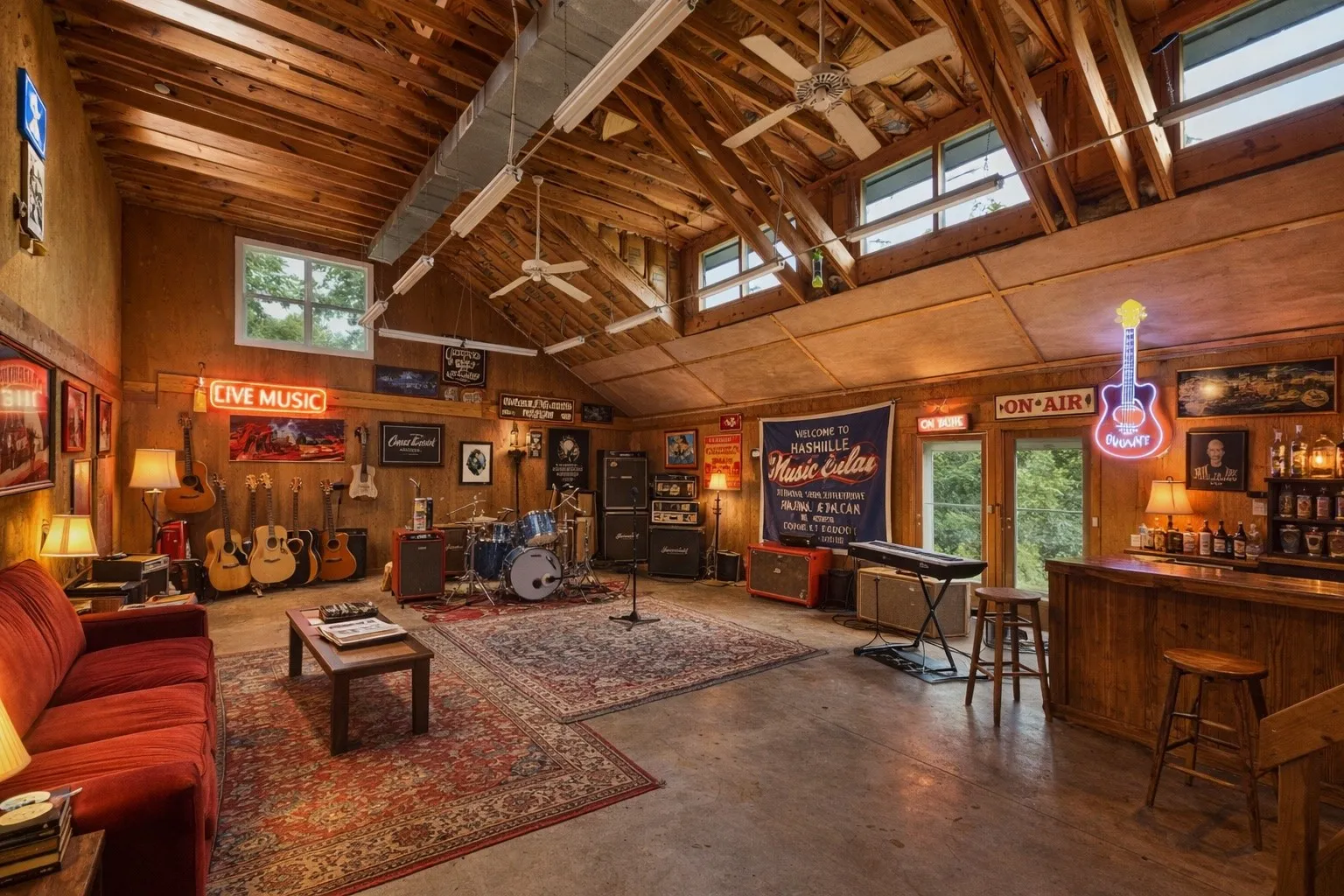 Every home has a story, a history etched into its walls, and this one is no exception. This isn’t just a house; it’s a stage for memories, a canvas for celebration, creativity, and inspiration. This home has also been a sanctuary for creativity. Its very walls have hummed with the rhythm of music, serving as the backdrop for countless albums and songs written in the home studio. The echoes of legendary artists like Alabama, Bad Company, and Lynyrd Skynyrd, along with the incredible talent of so many more, are forever a part of this home’s soul. The cabins on the property, built with over 200-year-old timbers, stand as a testament to the timeless beauty and history that define this land. And then there’s the quiet magic, the moments of peace that remind you you’re a part of something bigger. As the seasons change, the landscape transforms into a living theater of nature. Enjoy watching deer gracefully graze at dawn and listen to the rustle of wild turkeys at dusk. The vibrant bird life, a symphony of songs and colors, has been a constant source of wonder. The soft light of very early mornings and the tranquil beauty of a fading sunset, when you can fully appreciate the serene harmony of this natural world. This 11-acre wooded estate features a blend of cleared, grassy land and a magical grove of towering walnut trees. There are four buildings in total, including two charming log cabins and a spacious creativity studio perfect for artists and musicians. Another building is a blank canvas, ready to be transformed to suit your needs. This is a unique opportunity to own a peaceful retreat. This house is ready for its next chapter. It’s ready to host new gatherings, inspire new songs, and witness new stories. It’s not just a place to live; it’s a place to be—a place where life unfolds in the most beautiful and unexpected ways. **THIRD FLOOR SQUARE FOOTAGE represents total of 3 additional buildings**