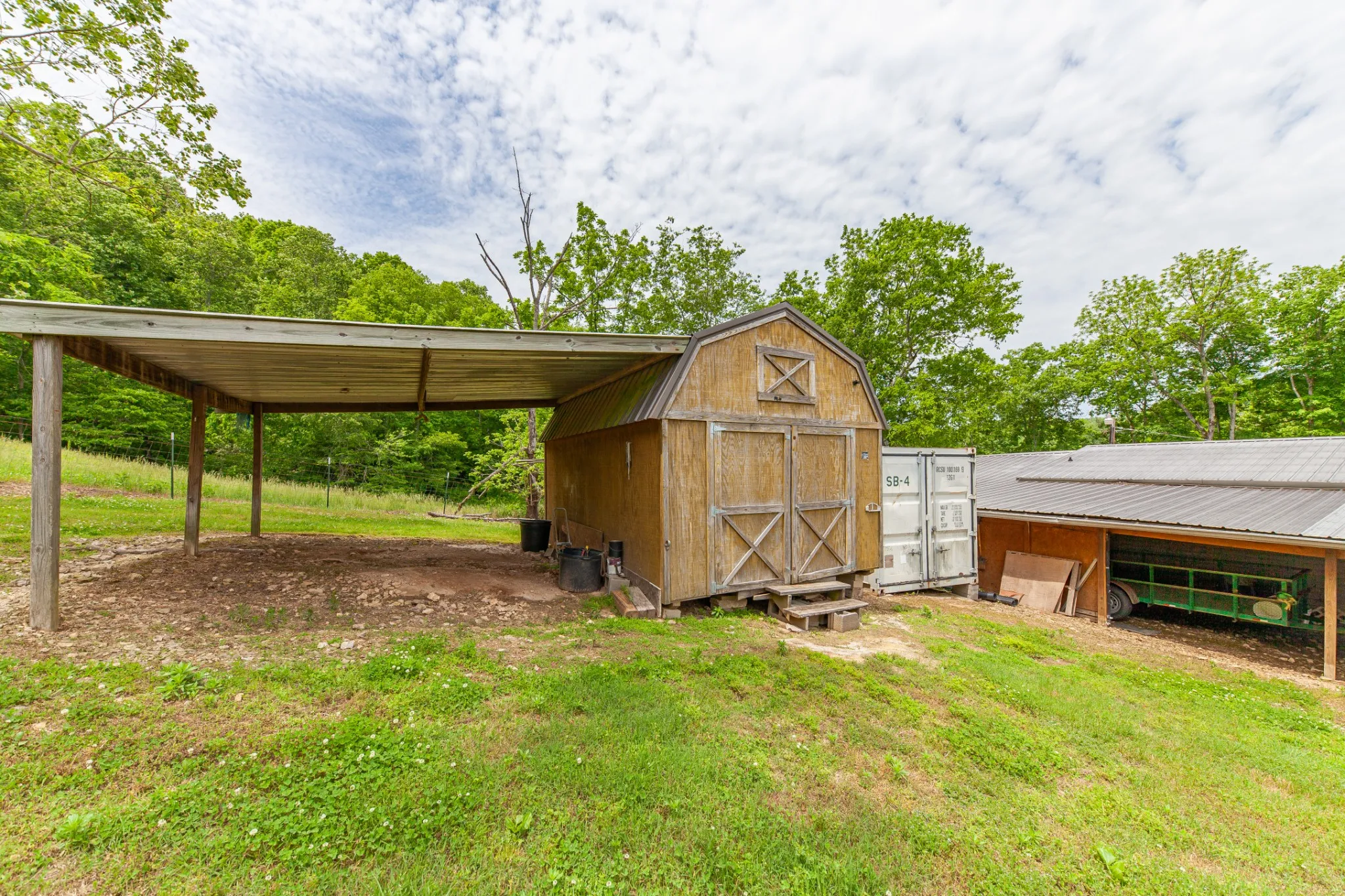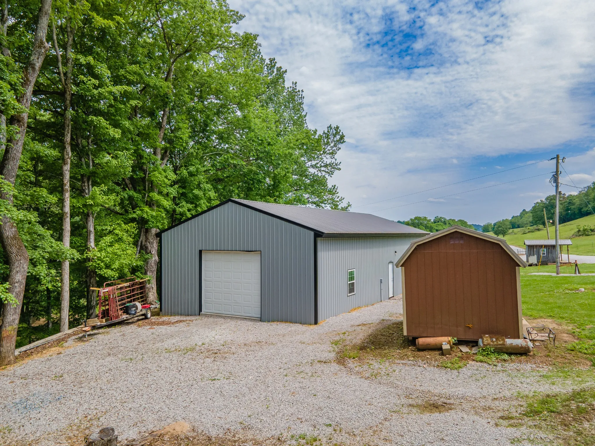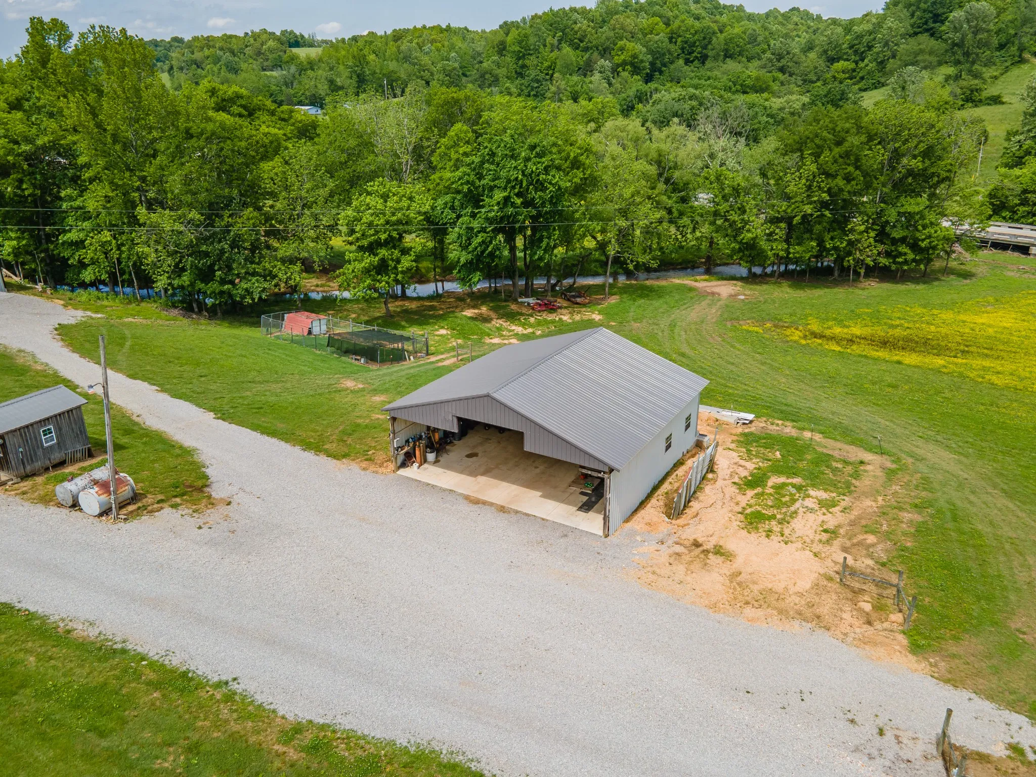 Situated on 9 beautiful acres, this unique offering includes two homes and multiple outbuildings. The main residence is a well-maintained 3-bedroom, 2-bath brick home with 2,145 sq. ft. and an attached 3-bay garage providing ample room for vehicles and storage. A second 3-bedroom, 2-bath home on a permanent foundation adds flexibility for guests, extended family, or income potential. The property also features a large pull-through shop, pole barn, and additional sheds, making it ideal for hobbies, equipment storage, or workspace needs. Property is fully fenced and a creek runs along one side of the property, offering a beautiful natural boundary.