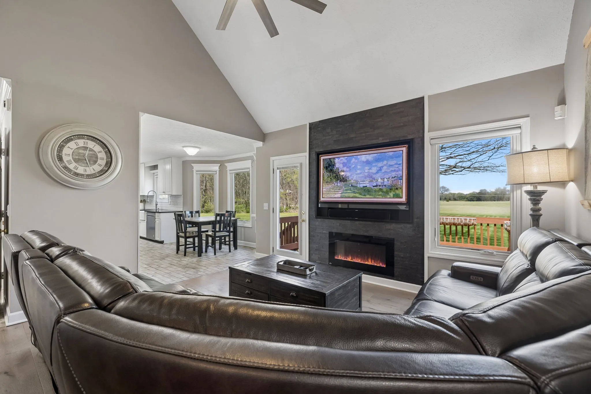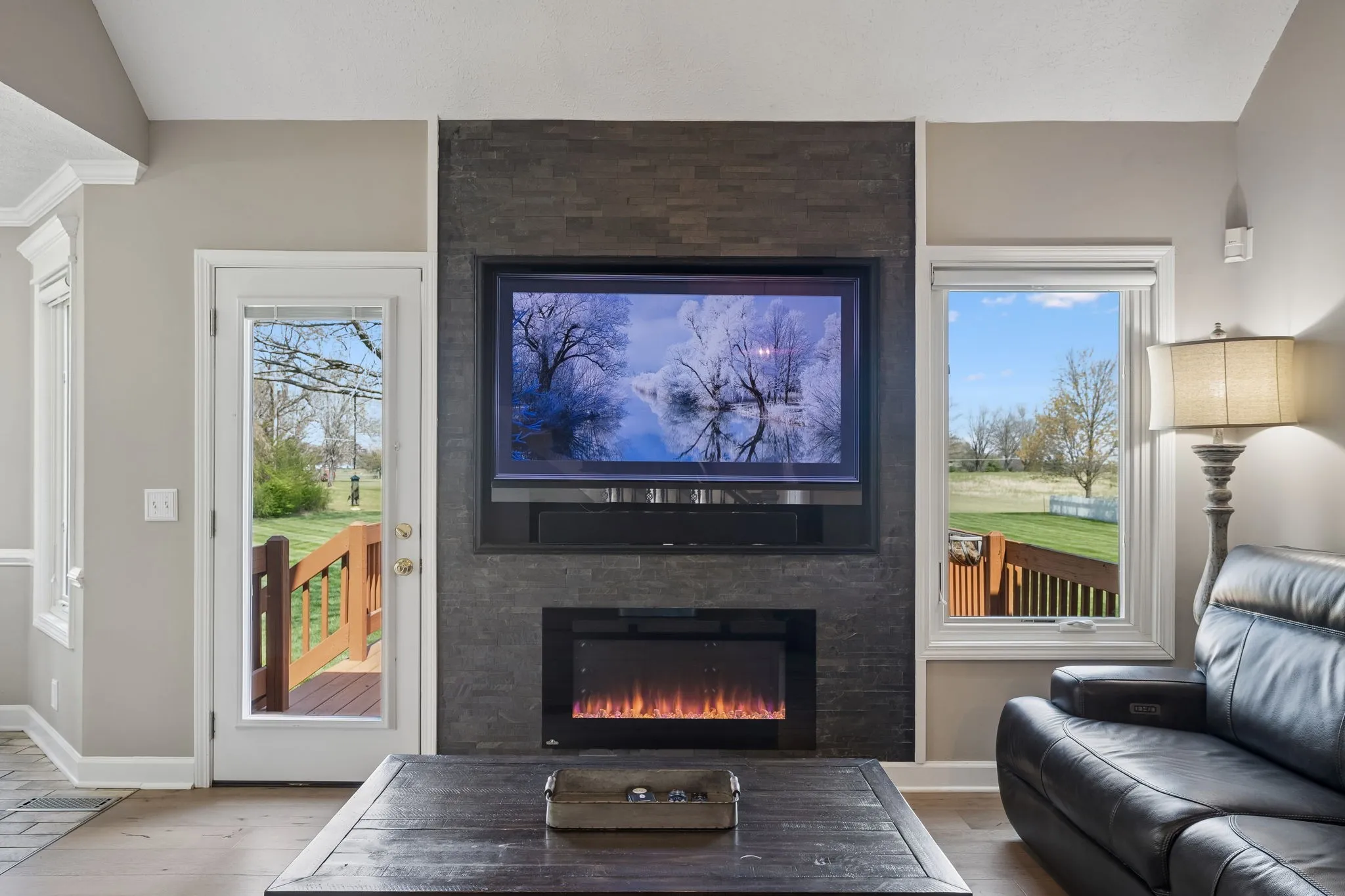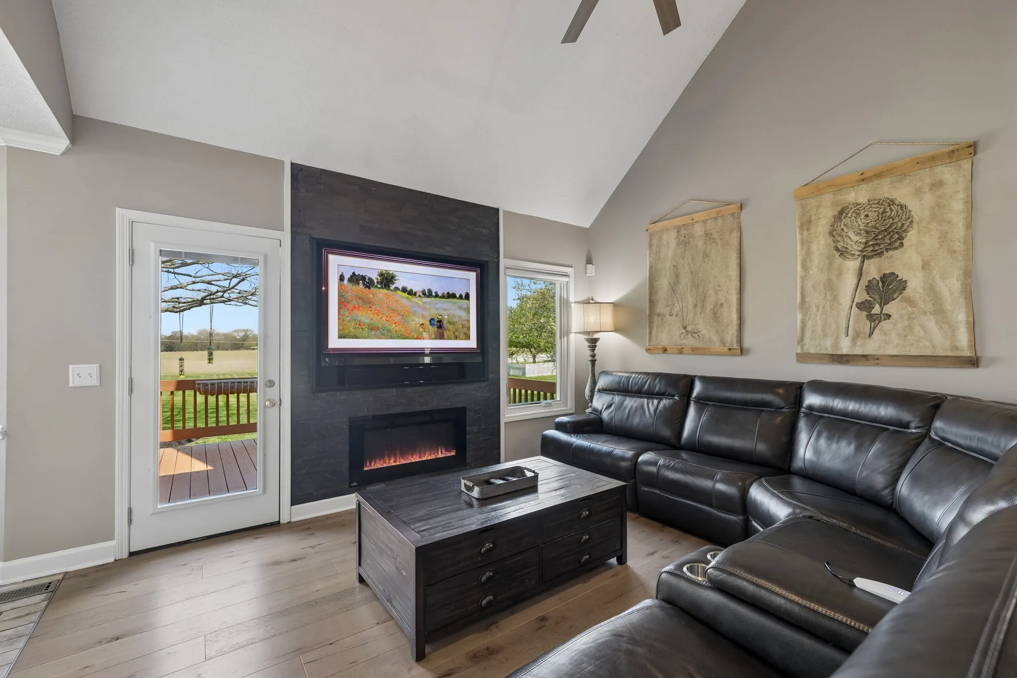 Enjoy the outdoor setting with established landscaping and unique roll-out windows along the back of the home, enhancing natural light and connection to the outdoor space.