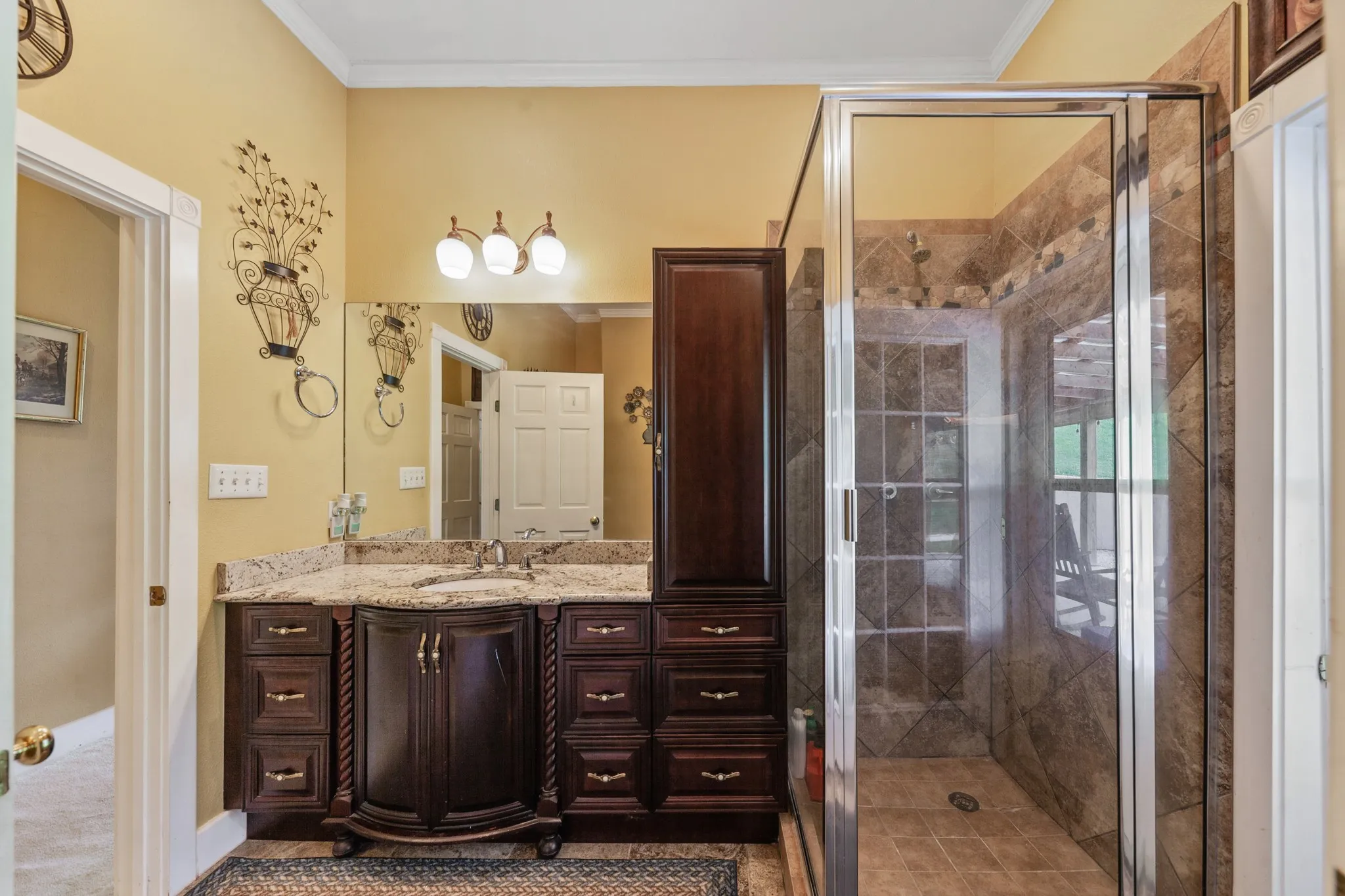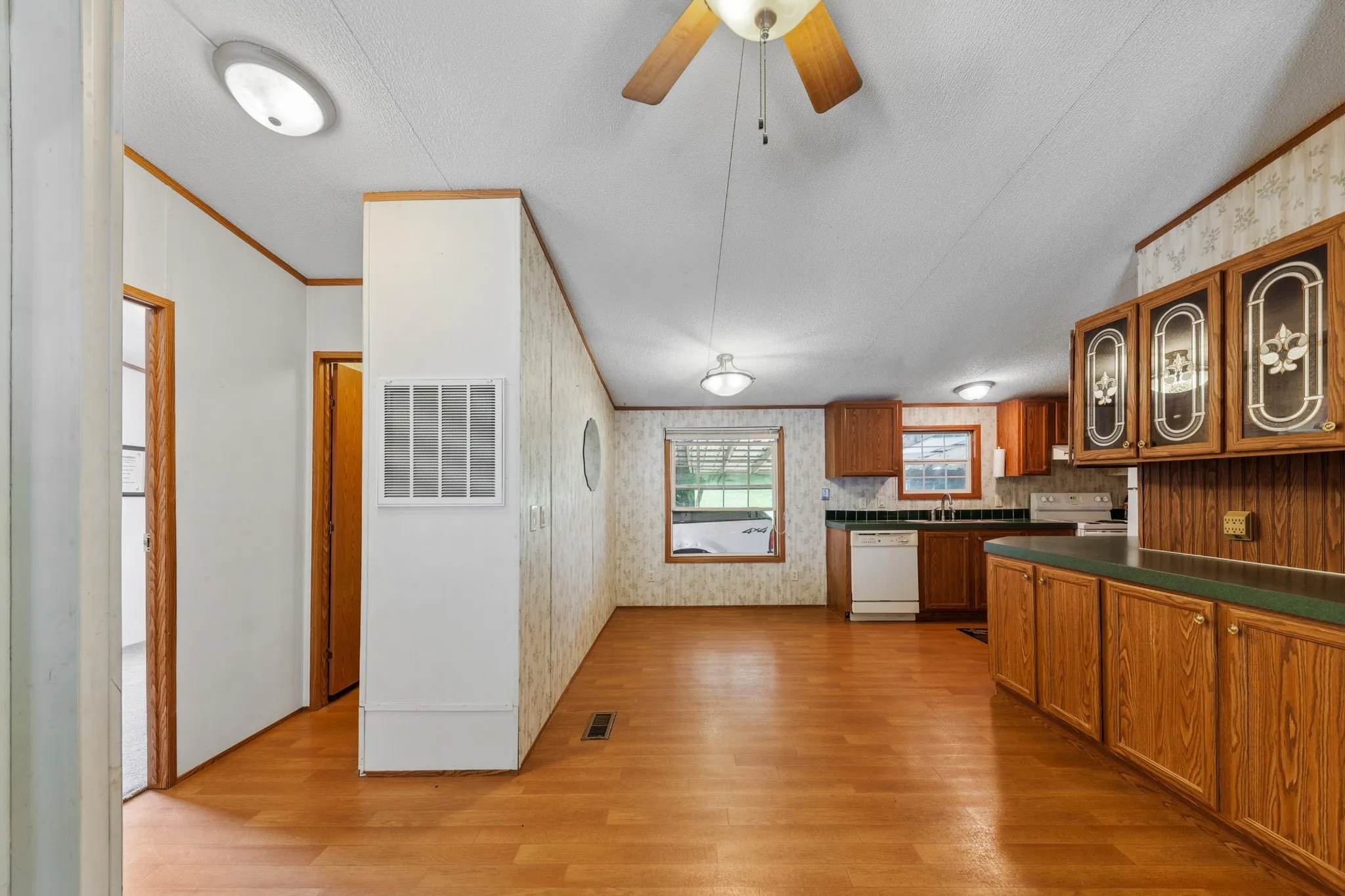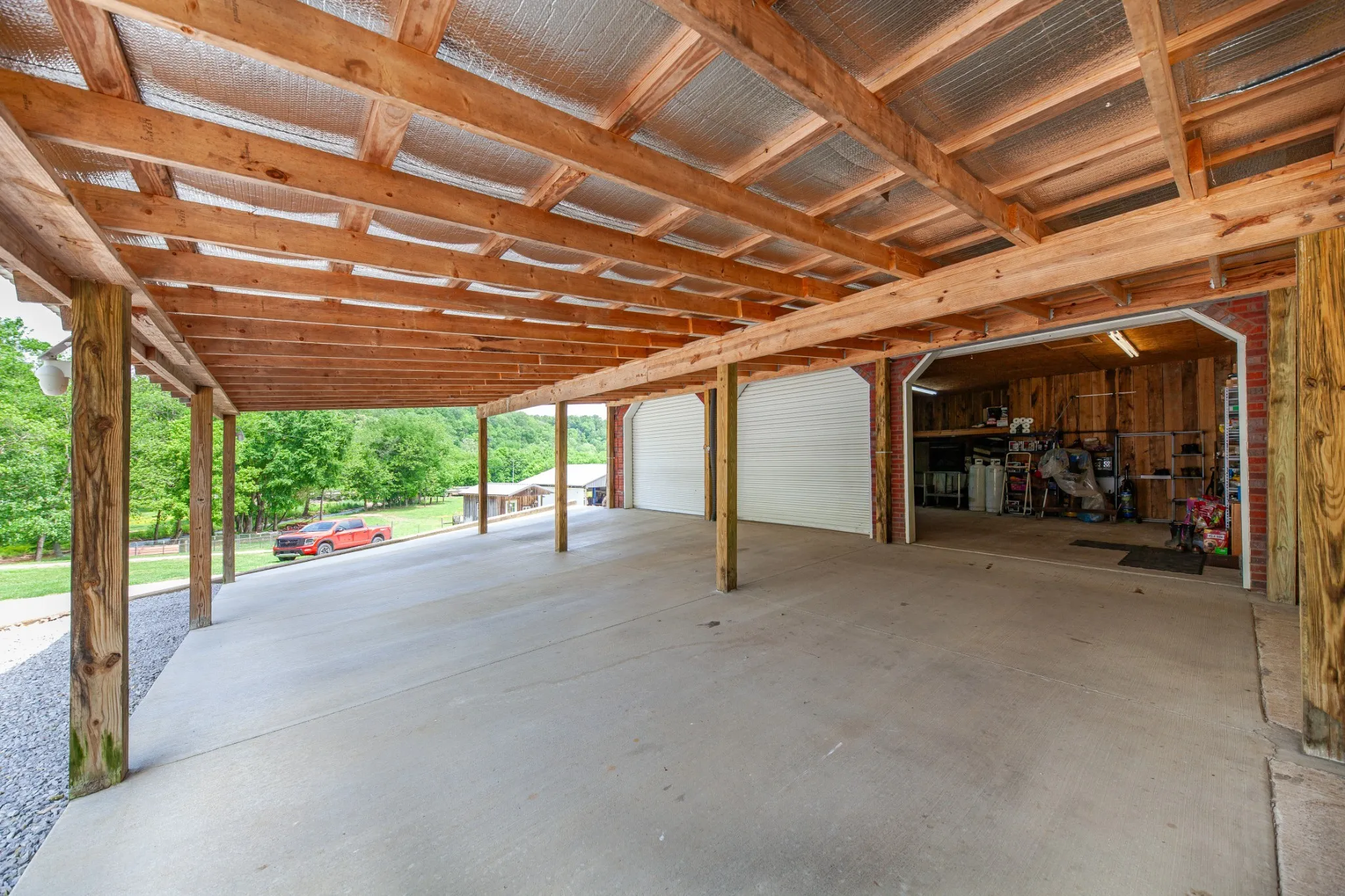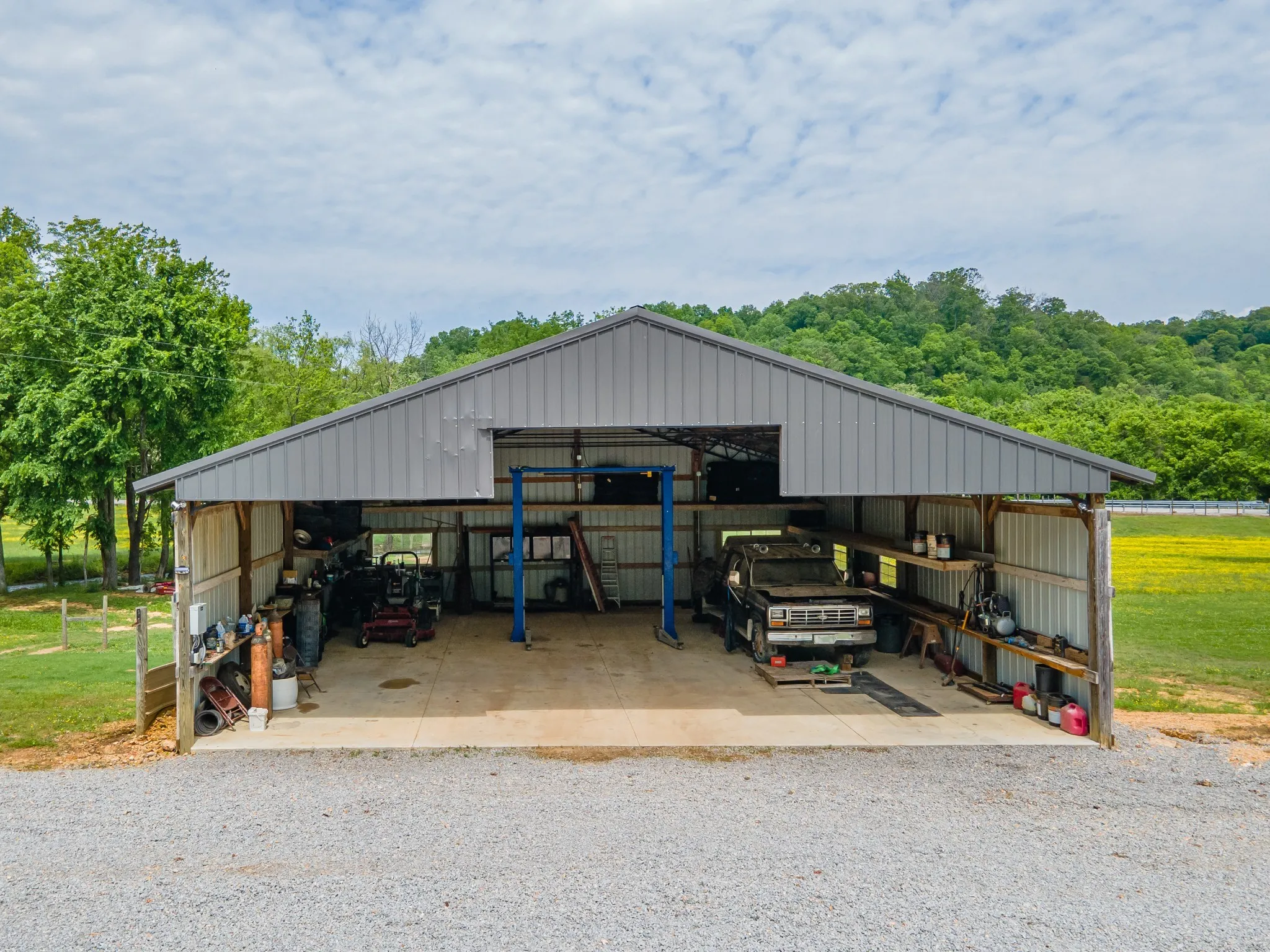 Situated on 9 beautiful acres, this unique offering includes two homes and multiple outbuildings. The main residence is a well-maintained 3-bedroom, 2-bath brick home with 2,145 sq. ft. and an attached 3-bay garage providing ample room for vehicles and storage. A second 3-bedroom, 2-bath home on a permanent foundation adds flexibility for guests, extended family, or income potential. The property also features a large pull-through shop, pole barn, and additional sheds, making it ideal for hobbies, equipment storage, or workspace needs. Property is fully fenced and a creek runs along one side of the property, offering a beautiful natural boundary.