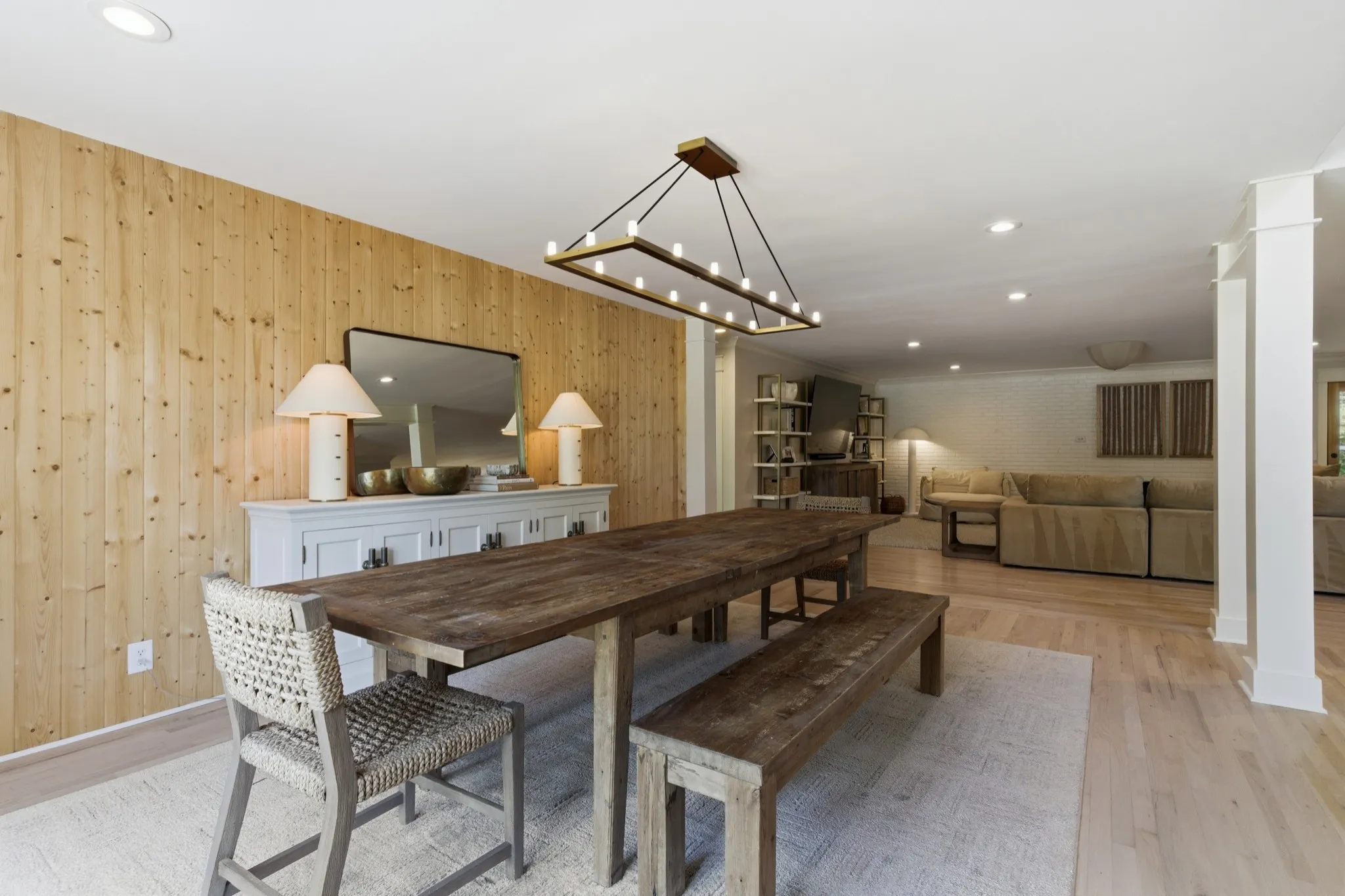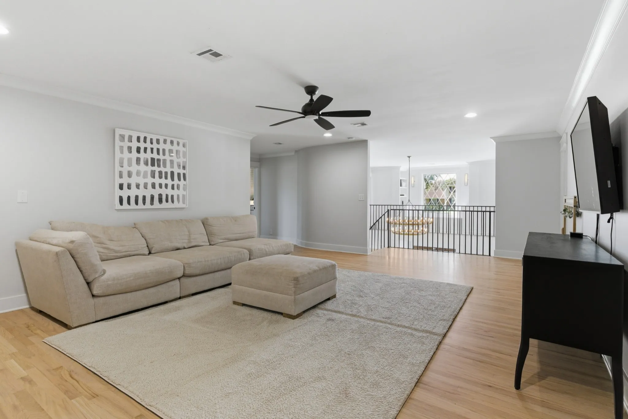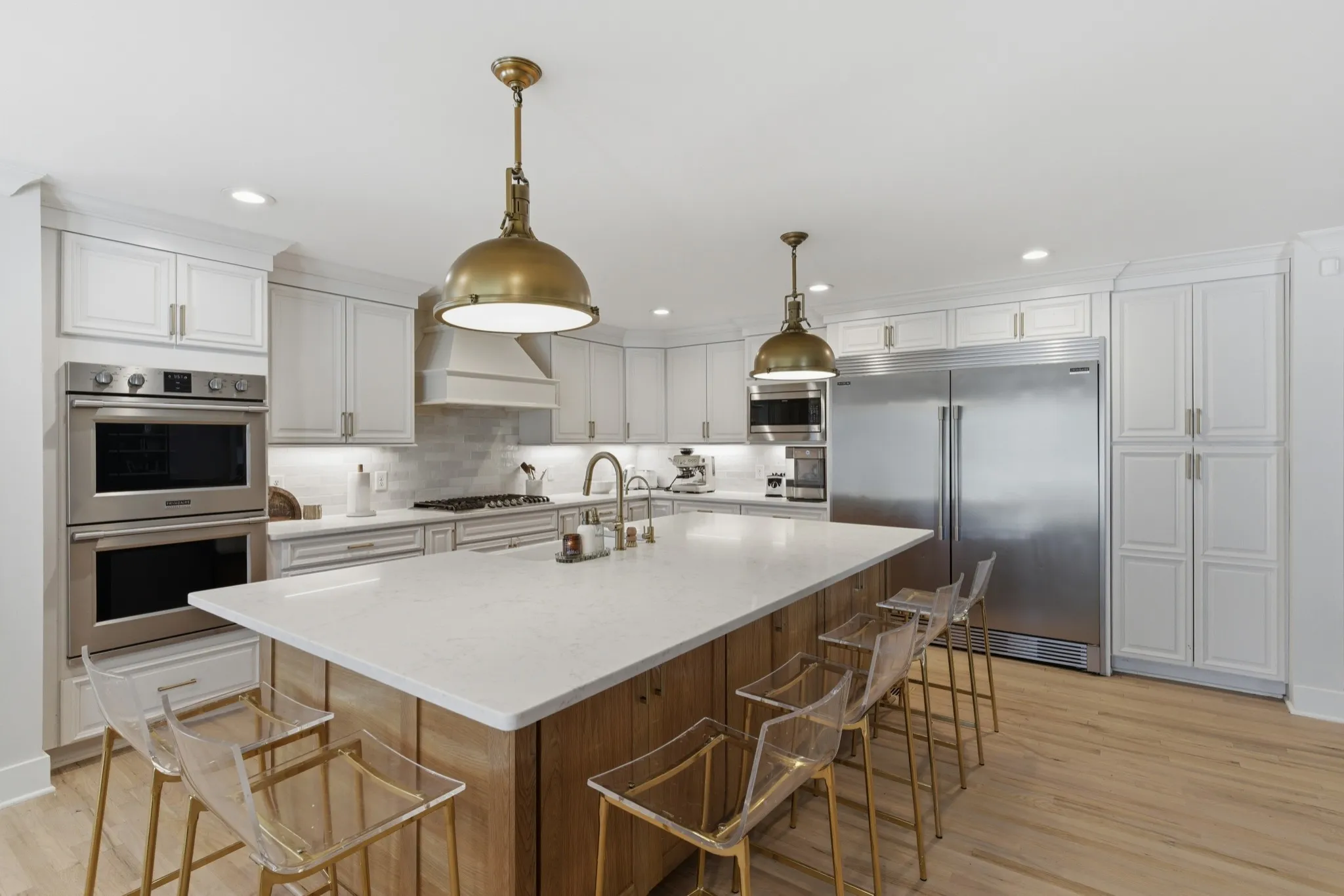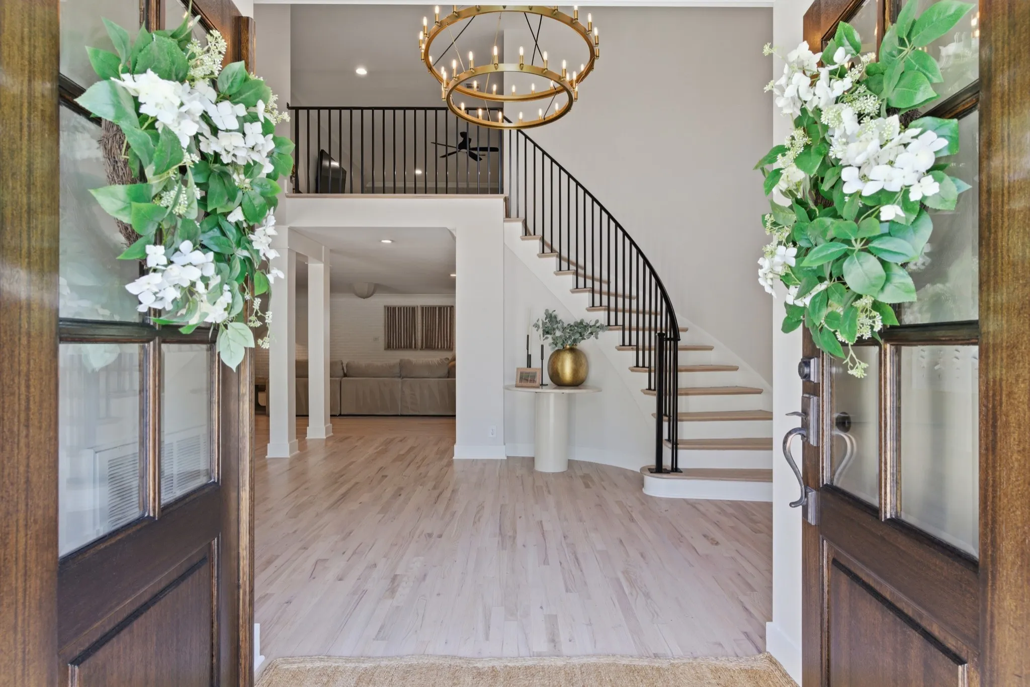 Inside, you’ll find an open-concept layout designed for modern living, featuring a chef’s kitchen with quartz countertops, gas range, double ovens, and seamless flow into expansive entertainment spaces. As part of the renovation, the formal dining room has been opened up to enhance the home’s flow and natural light. Hardwood floors run throughout, complemented by multiple bonus rooms and flex spaces that can easily serve as additional bedrooms or work-from-home setups. A previous garage has been thoughtfully converted into additional living space, creating even more room for relaxation or entertainment.