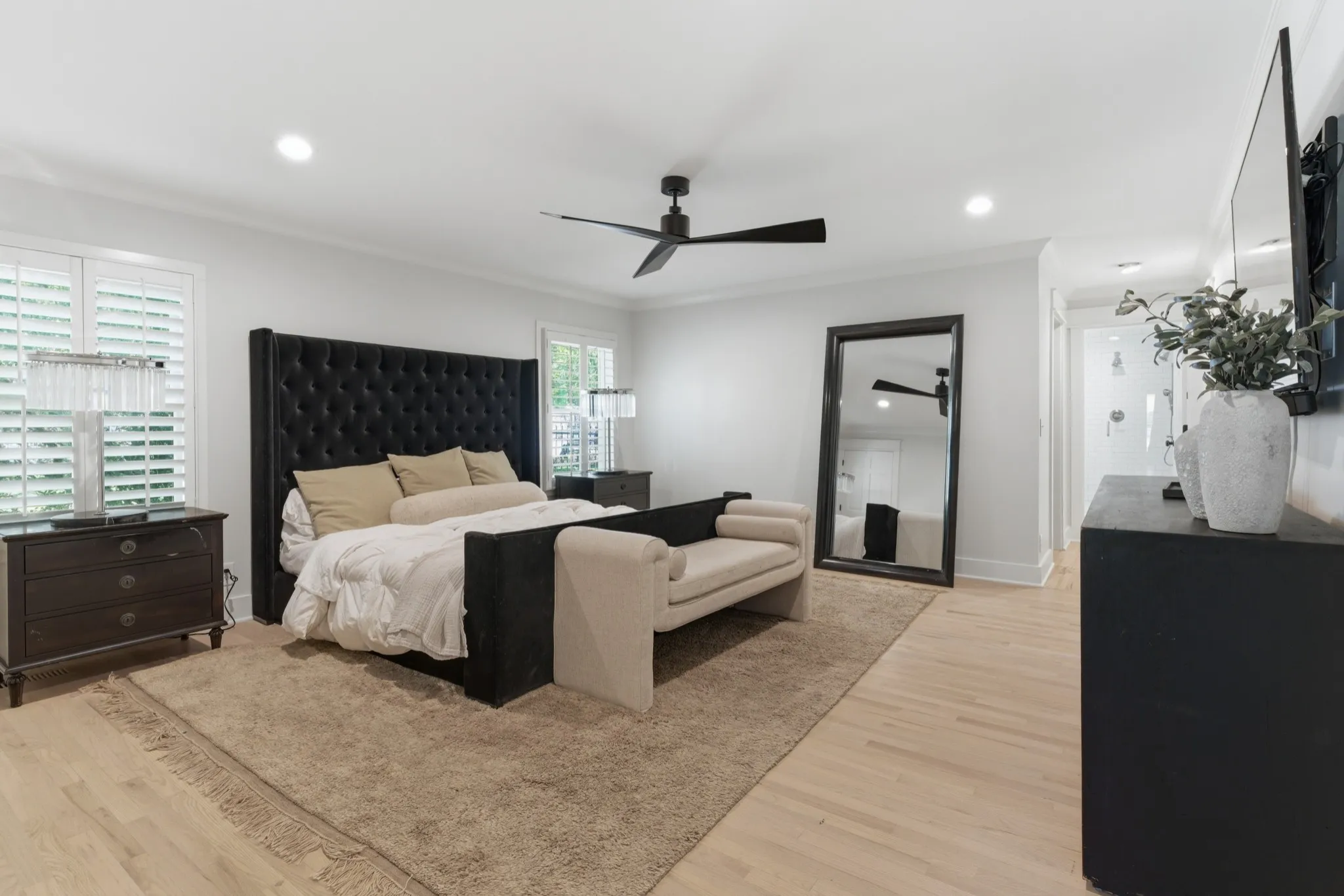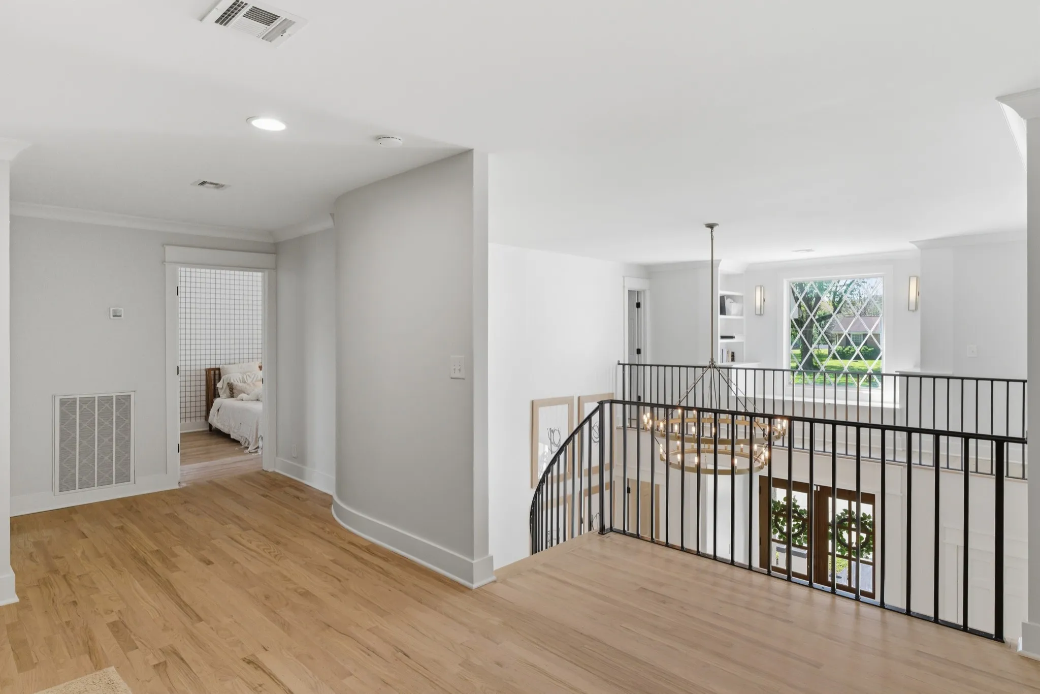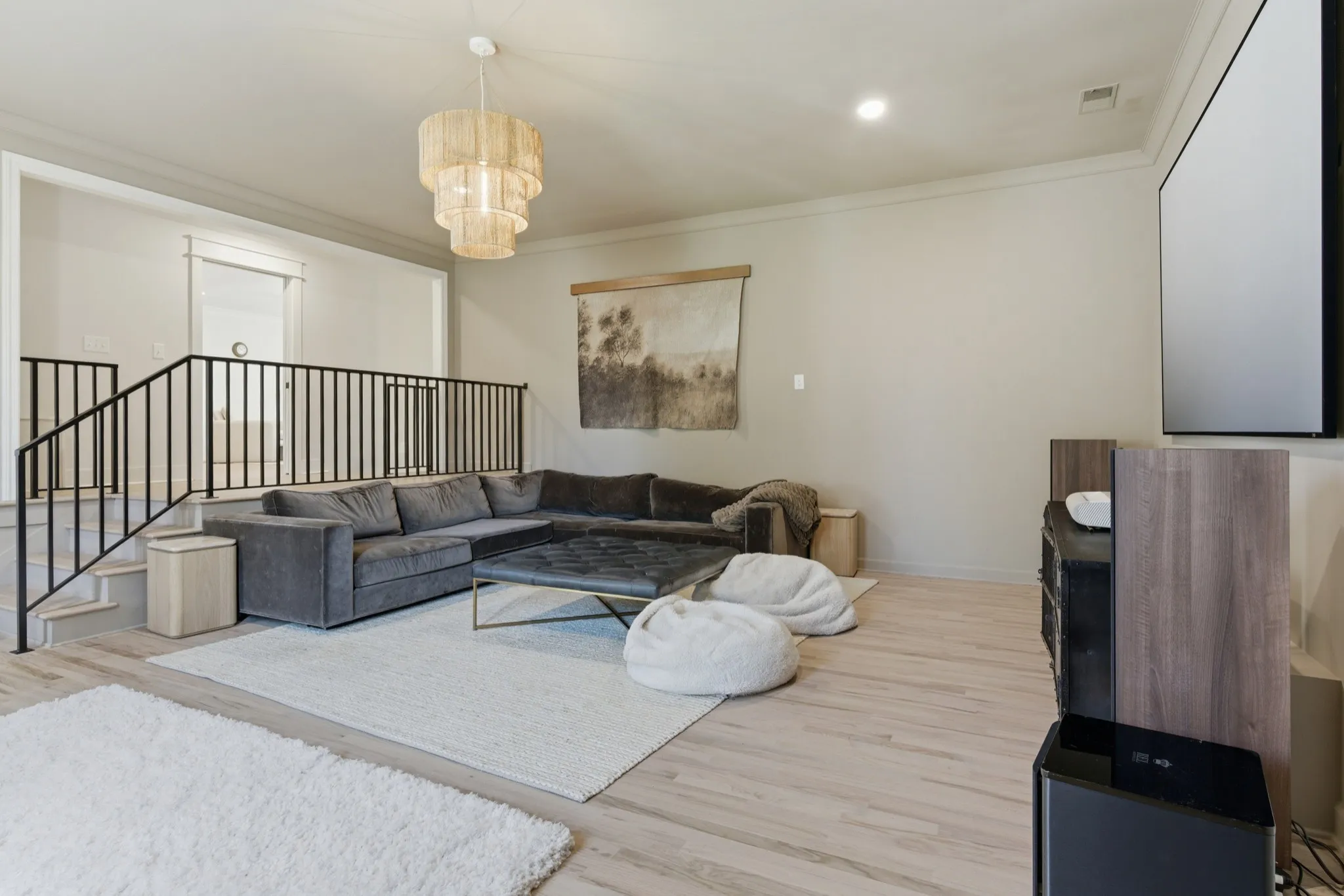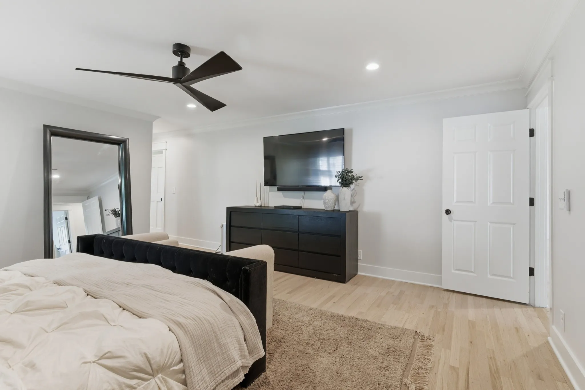 Inside, you’ll find an open-concept layout designed for modern living, featuring a chef’s kitchen with quartz countertops, gas range, double ovens, and seamless flow into expansive entertainment spaces. As part of the renovation, the formal dining room has been opened up to enhance the home’s flow and natural light. Hardwood floors run throughout, complemented by multiple bonus rooms and flex spaces that can easily serve as additional bedrooms or work-from-home setups. A previous garage has been thoughtfully converted into additional living space, creating even more room for relaxation or entertainment.