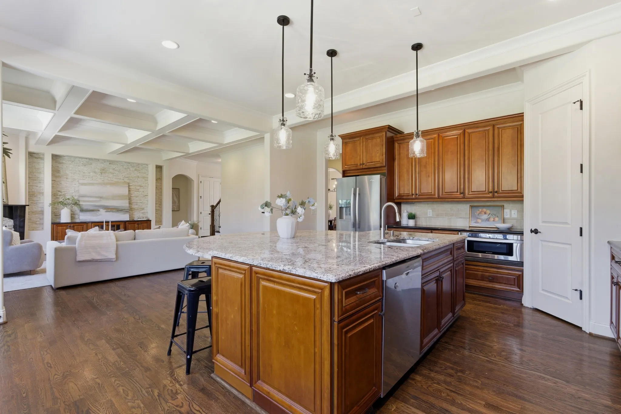 Tucked away on one of the most desirable cul-de-sacs in the heart of Green Hills, this spacious 5-bedroom 5/1 bath home offers nearly 6,000 square feet of comfortable, well-designed living space. Thoughtfully laid out, the main level features a light-filled primary suite, dedicated home office, and generous living spaces that flow with ease. Each bedroom includes ample storage with walk-in closets throughout. Flexible spaces upstairs for bonus room, 2nd office, or optional 6th bedroom. The expansive walk-out basement with heated floors provides flexibility, ideal for additional living, work, exercise, or recreational space while still maintaining a sense of privacy from the main living areas. This is the one if you are looking for lots of square footage, privacy, and a quiet street with walkability/bike riding.