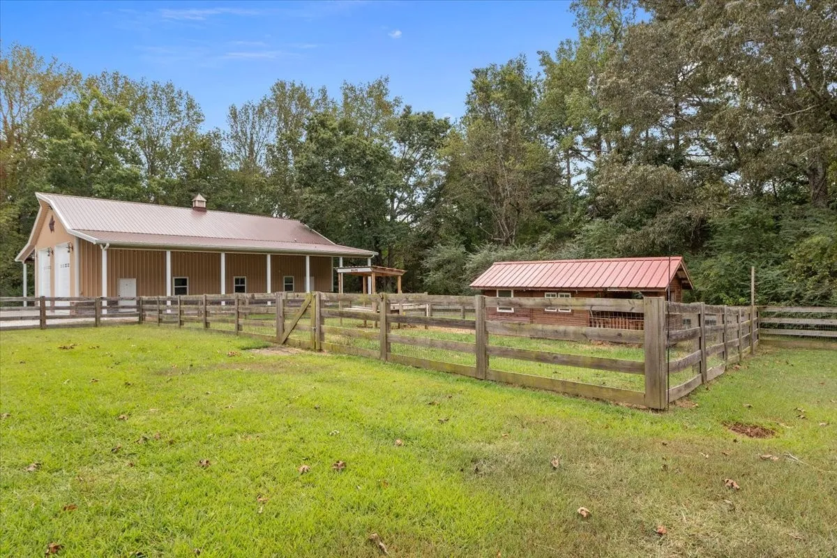 OPEN HOUSE 4/12 STILL ON! BACK UP OFFERS WELCOME. Custom-built in 2012, this single-level home features a fiber cement, brick, and stone exterior, situated on 8.56 private acres outside the city limits yet close to everything. Own your own MINI FARM in Tennessee! Offering 2,237 sq ft with a 3BR/3BA split floor plan, this light-filled home features an open living area with a wood-burning fireplace (easily converted to gas), separate dining plus a breakfast nook, and a bonus room/office with a gas fireplace. The kitchen shines with stainless steel appliances and quartz countertops with abundant cabinet and prep space. The primary suite is thoughtfully designed with dual dressing areas—each with its own closet, toilet, and sink—joined by a shared shower. Outdoor highlights include a 40×100 garage/workshop with extended lean-to roofs on both sides for parking and equipment storage, double RV-height doors, RV hookups, multiple power stations, including a welding outlet, and an upper-level loft for storage or recreation. Need space for work, hobbies, or guests? You’ll love the detached studio apartment (located inside the workshop) with a full bath and separate entrance—great for visitors, a teen/office suite, or add a small kitchenette to explore rental or in-law use. The grounds are largely fenced (except the entrance) with a wooden fenced-in area perfect for dogs or play, and a separate fenced area with an animal shelter for goats and chickens. Storage shed stays. WIth some additional fencing at the entrance, this would make the perfect property for horses! There is even the start of a small pond. Brand new water heater (located in crawl space). Location perks: ~9 miles to downtown Dickson, ~8.8 miles to I-40 (Exit 163), ~20 minutes to the Piney River, 6.5 miles to McEwen, and an easy commute to Nashville, Franklin, and Spring Hill. All the conveniences of Dickson’s growth—with country living.