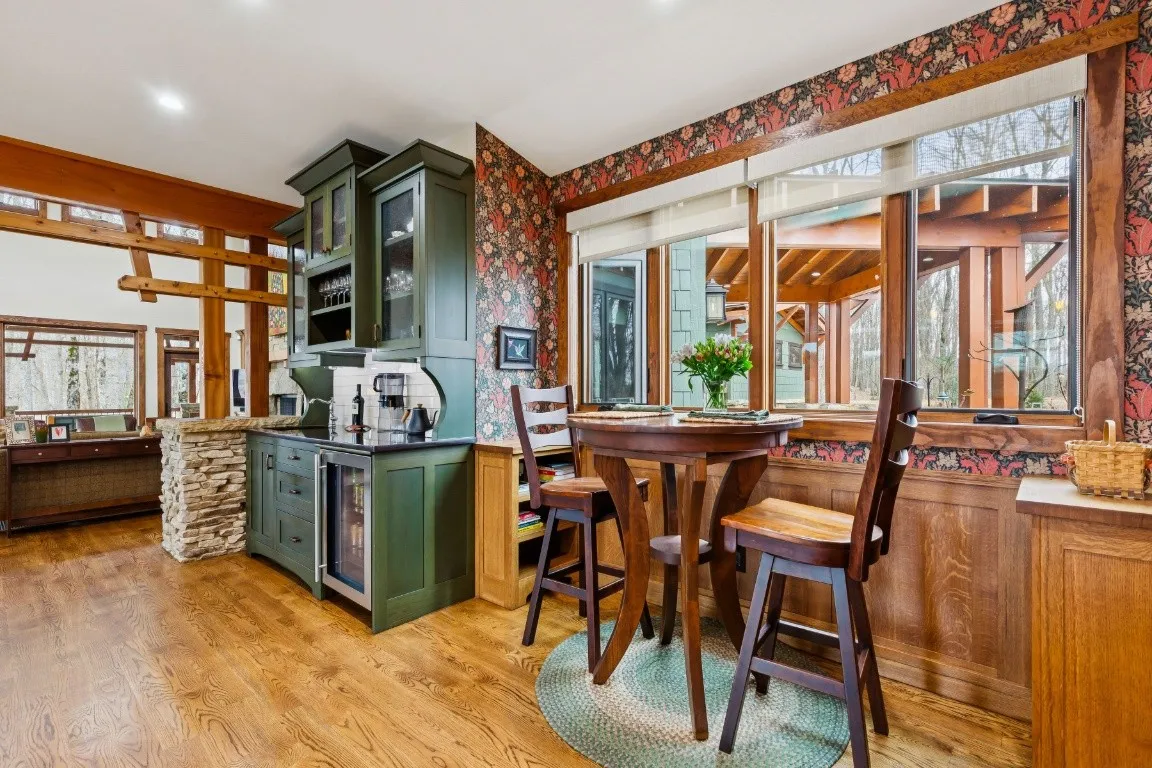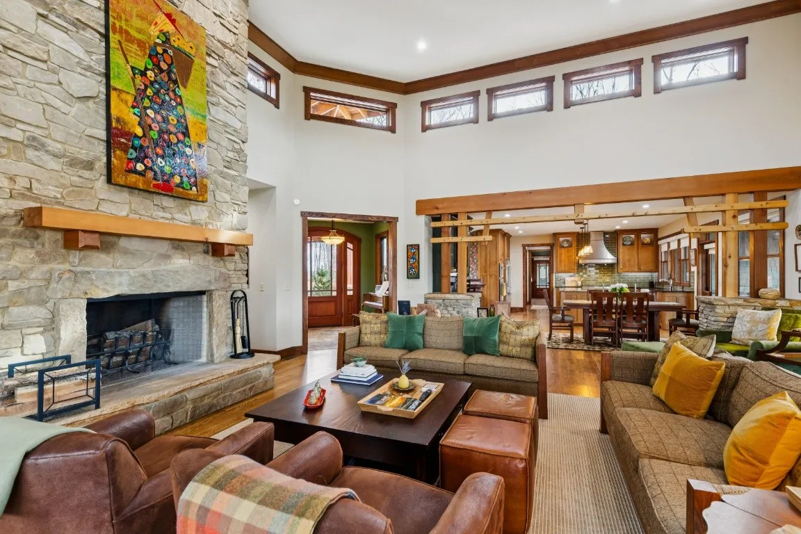 From the moment you arrive, you will be captivated by the home’s inviting façade, blending classic architectural details with craftsman warmth. Inside, the open-concept floor plan is bathed in natural light, showcasing rich hardwood floors, custom stone fireplace, vaulted ceilings, and exquisite millwork that pay tribute to true artisanal design.