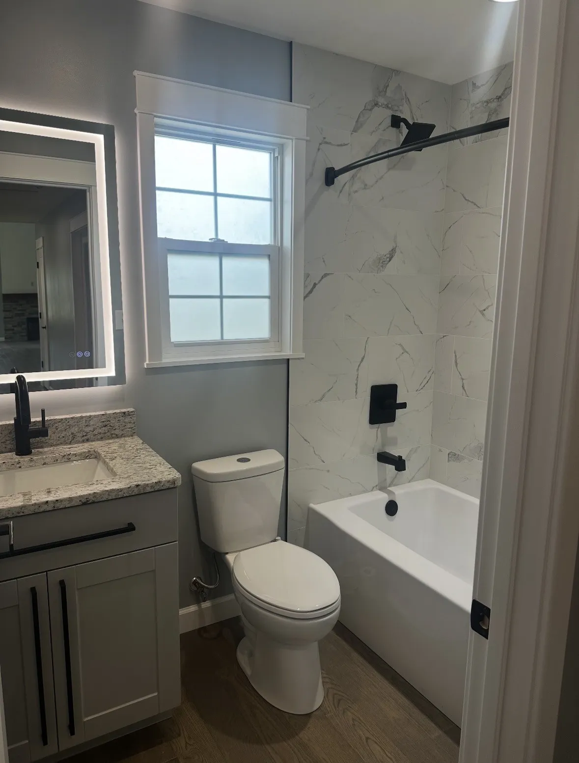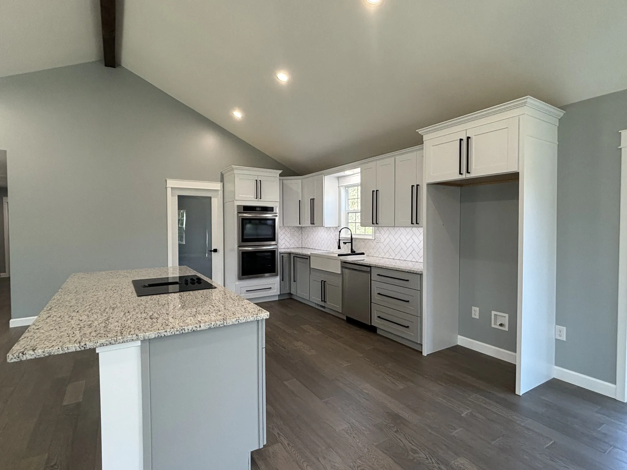 NEW CONSTRUCTION COMPLETED & READY FOR A NEW OWNER! The vaulted great room features an open concept, electric fireplace and sliding glass doors leading to the deck! The kitchen boasts granite countertops, a double farm sink, and beautiful cabinetry with large drawers, double ovens and a down draft range in the island! This home has 2 bedrooms PLUS a room with a closet & window! The Master suite boasts with double doors with frosted glass. Both bathrooms are luxurious with marble-inspired porcelain tiles and frameless glass shower, and LED mirrors! Metal roof, Pex water lines and so much more!