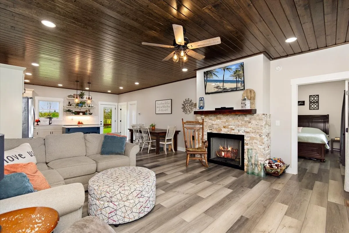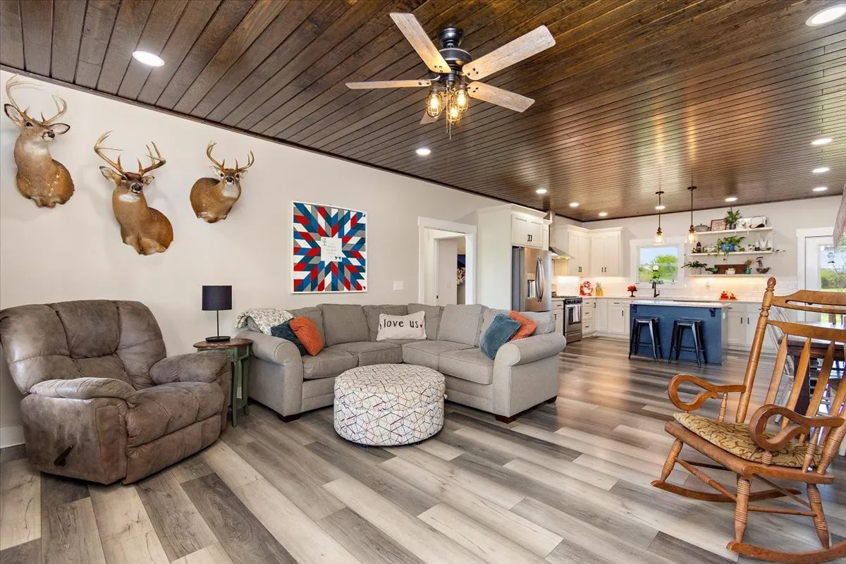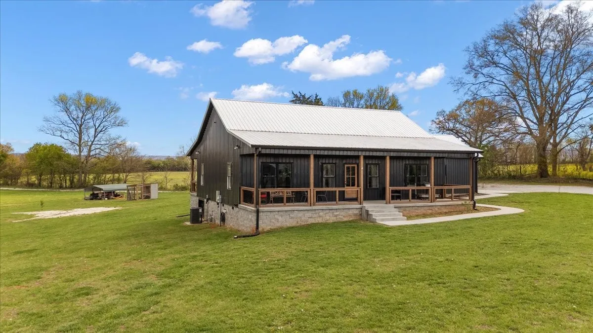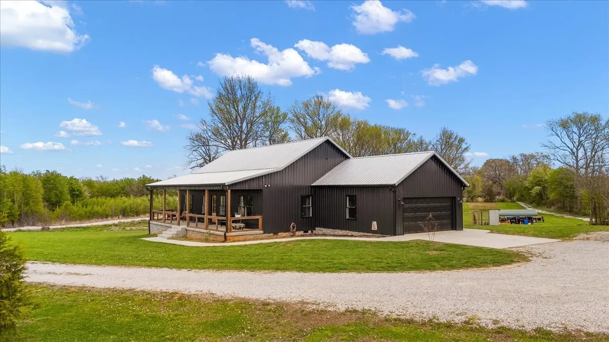 Beautiful newer construction home on 5.42 acres just minutes from Winchester! This 3 BR, 2 BA home, built in 2023, features a modern black metal exterior and metal roof for durability and low maintenance along with a spacious 2-car garage. Enjoy comfortable living with large covered porch on both front and back, an open layout and generous bedrooms, plus a large crawl space offering excellent storage potential. Plenty of room to spread out, garden, or enjoy peaceful country surroundings while still being convenient to town amenities. A great opportunity for those looking for newer construction with acreage and privacy.
