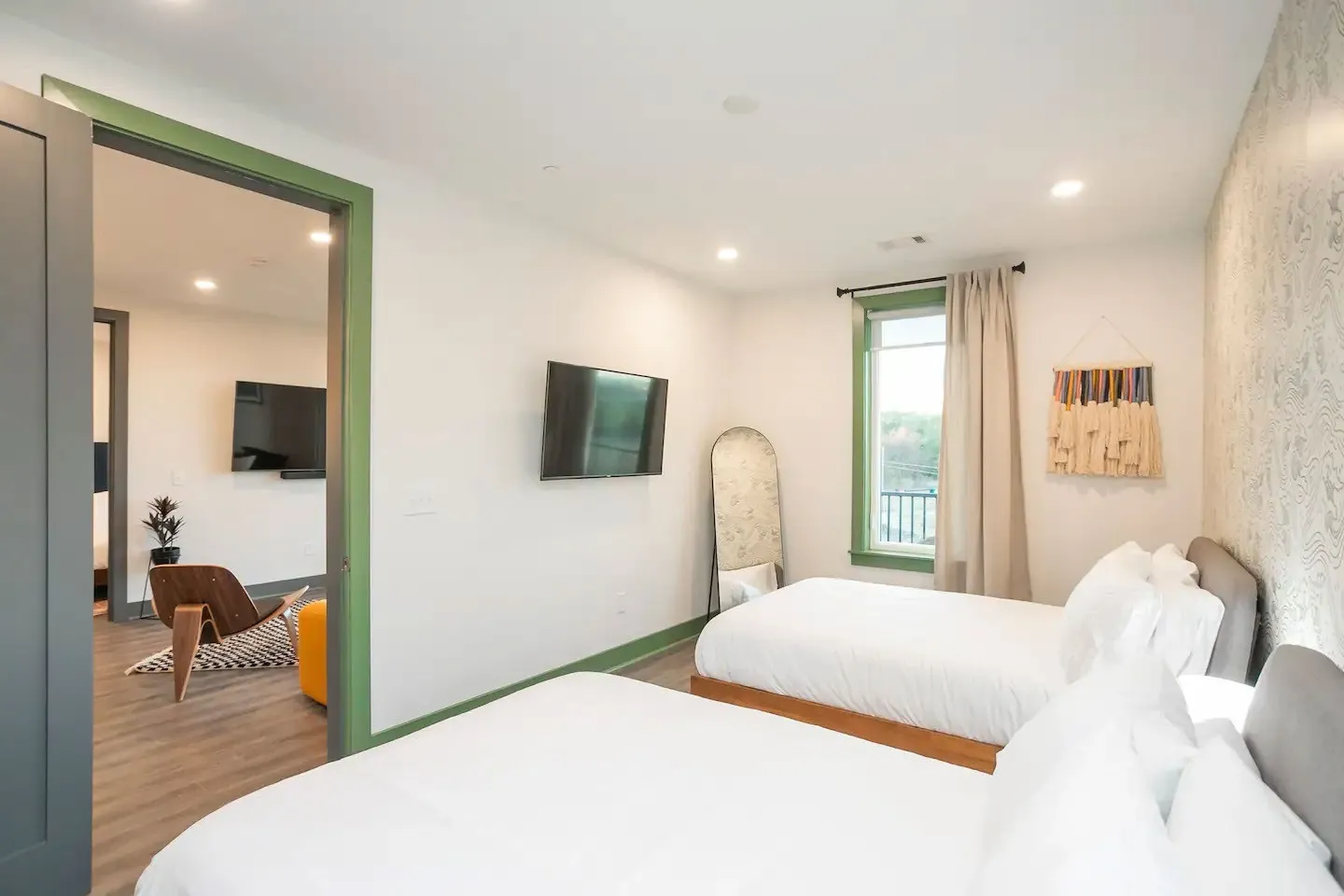 Non-Owner Occupied Short Term Rental at The Muse, walking distance to Broadway & the heart of Nashville! This luxury 2 Bed, 2 Bath Condo sleeps 7, has downtown views and a wrap around balcony! Building amenities include a fitness center, roof top lounge, secured entry & overnight security. This spacious double en-suite features 1 king bed, 2 queen beds and 1 twin bed. Quartz countertops, modern fixtures & stainless steel appliances throughout. Comes fully furnished and has laundry in unit. A must see!