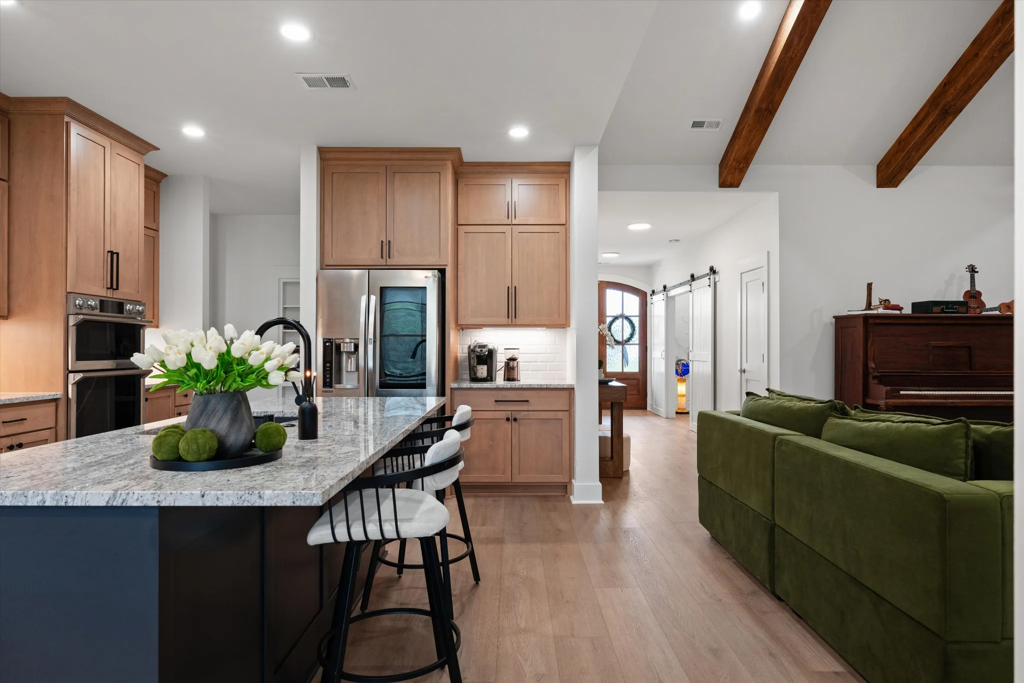 WOW! Privacy, power, and craftsmanship define this extraordinary 4-bed, 6-bath luxury estate on over 15 pristine acres. Every detail signals a home built to perform as beautifully as it lives. Infrastructure is unmatched: 24kW GENERAC whole-home generator, 400-amp electrical service (200 to house, 200 to shop), fiber optic internet up to 3,000 Mbps, and 2,000+ feet of CAT6 cabling throughout. Dual Rheem high-efficiency heat pumps with gas backup furnaces and dual ActivePure Air Scrubbers eliminate contaminants, bacteria, and odors at the source. Navien tankless water heater with recirculating pump delivers instant hot water to every shower. The kitchen features a Samsung dual-zone steam oven, convection air fryer combo, and 1,300 CFM professional range hood. App-controlled HVAC, garage, ovens, and 49 Philips Hue smart lights integrate with Google Home, Alexa and Apple HomeKit. Nest Protect smart detectors with motion path lighting throughout. Two vented American-made fireplaces with natural gas connections for the outdoor fireplace and grill. A hidden attic media room and secret pantry pass-through to the office add rare character. A tornado proof underground 6-person storm shelter provides safety and peace of mind. The fully plumbed shop includes bathroom, laundry, floor drain, reinforced floor for a future car lift, and dual 30-amp RV hookups inside and out. Outside hosts a fenced garden, raised beds, 3-year established orchard with apple, peach and pecan trees, apiary site for up to 5 hives, seasonal stream, deer, and wild turkeys. Local farmer maintains rear fields via hay arrangement. Pipeline easement permanently preserves rear views. A fully equipped, future-ready retreat unlike anything else in Middle Tennessee.