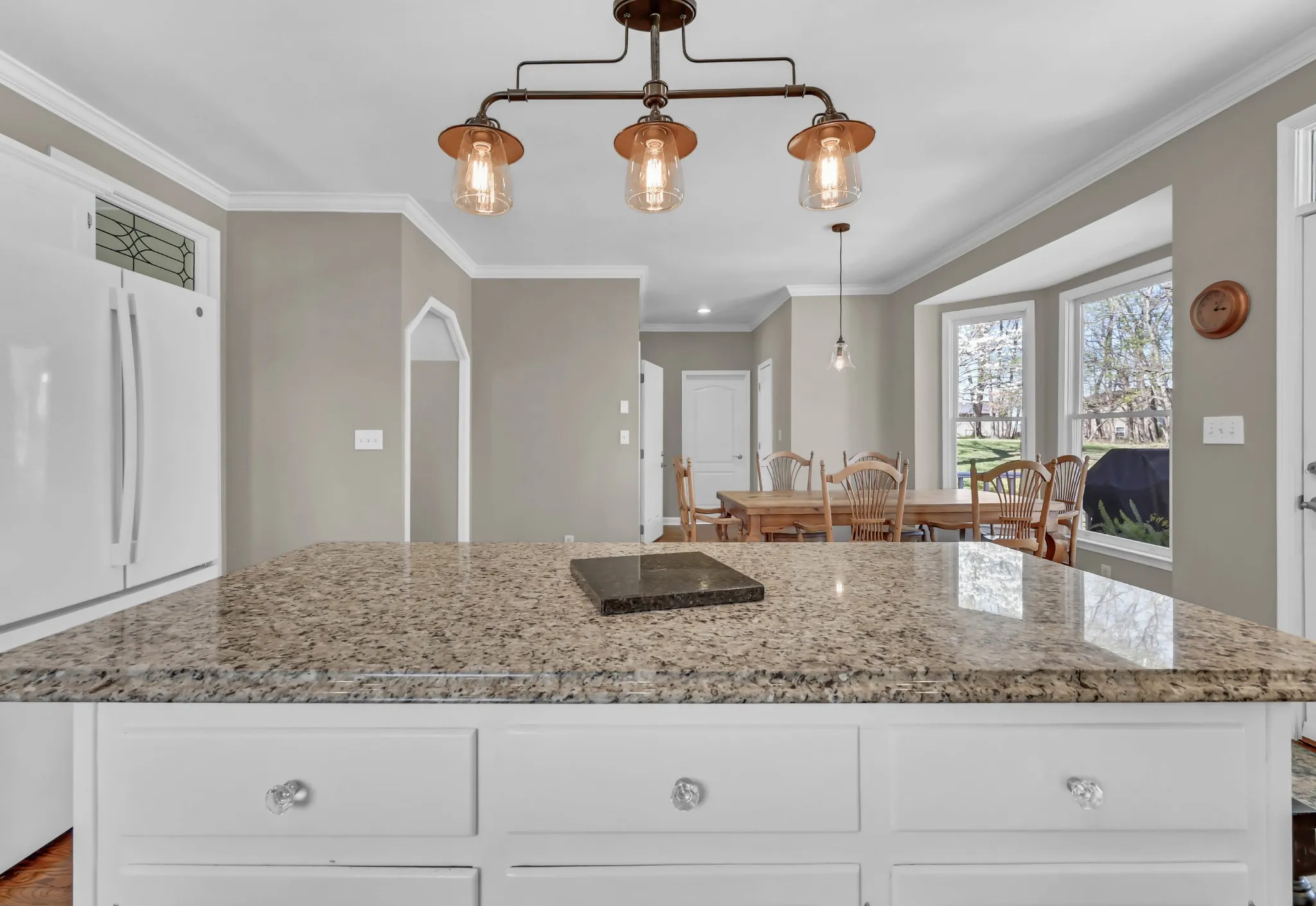 Welcome home to 930 Doe Run Ct—where timeless style meets thoughtful updates. Nestled on 1.68 acres with mature trees and standout curb appeal, this home makes an impression from the start. Step inside to a soaring entry foyer with rich hardwood flooring and elegant glass-paneled doorways. The spacious living room features a gas fireplace with brick surround, while the open kitchen offers a center island, granite countertops, pantry, bar area with mini fridge, and a generous dining nook. A formal dining room provides the perfect space for gatherings. The main level also includes a beautifully renovated powder room and a functional laundry room with sink and extra storage. Upstairs, you’ll find three bedrooms and two full baths, including a spacious primary suite with a fully renovated en suite featuring a freestanding soaking tub, tiled walk-in shower with glass doors, double vanities, private water closet, and walk-in closet. Secondary bedrooms are generously sized, each with walk-in closets, and the guest bath has been tastefully updated. The basement offers a finished flex room with walk-in closet, a two-car garage, and additional storage space. Outdoor living shines with a multi-level (4-tier) deck designed to enjoy the scenic views year-round—complete with a heater, awning, stair lights, and patio space below. Additional storage is tucked beneath the deck. Plantation shutters throughout will remain. This home has been meticulously maintained and truly cared for.