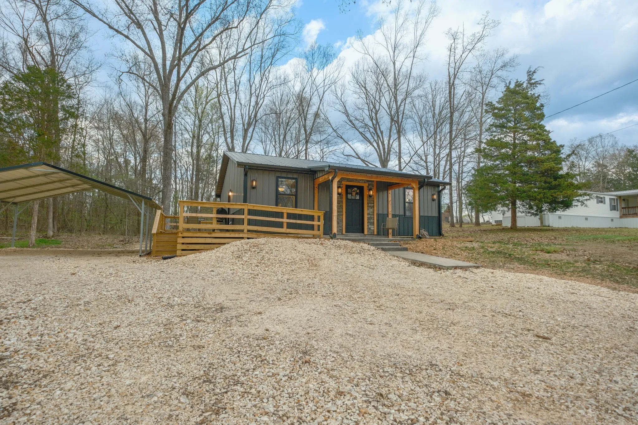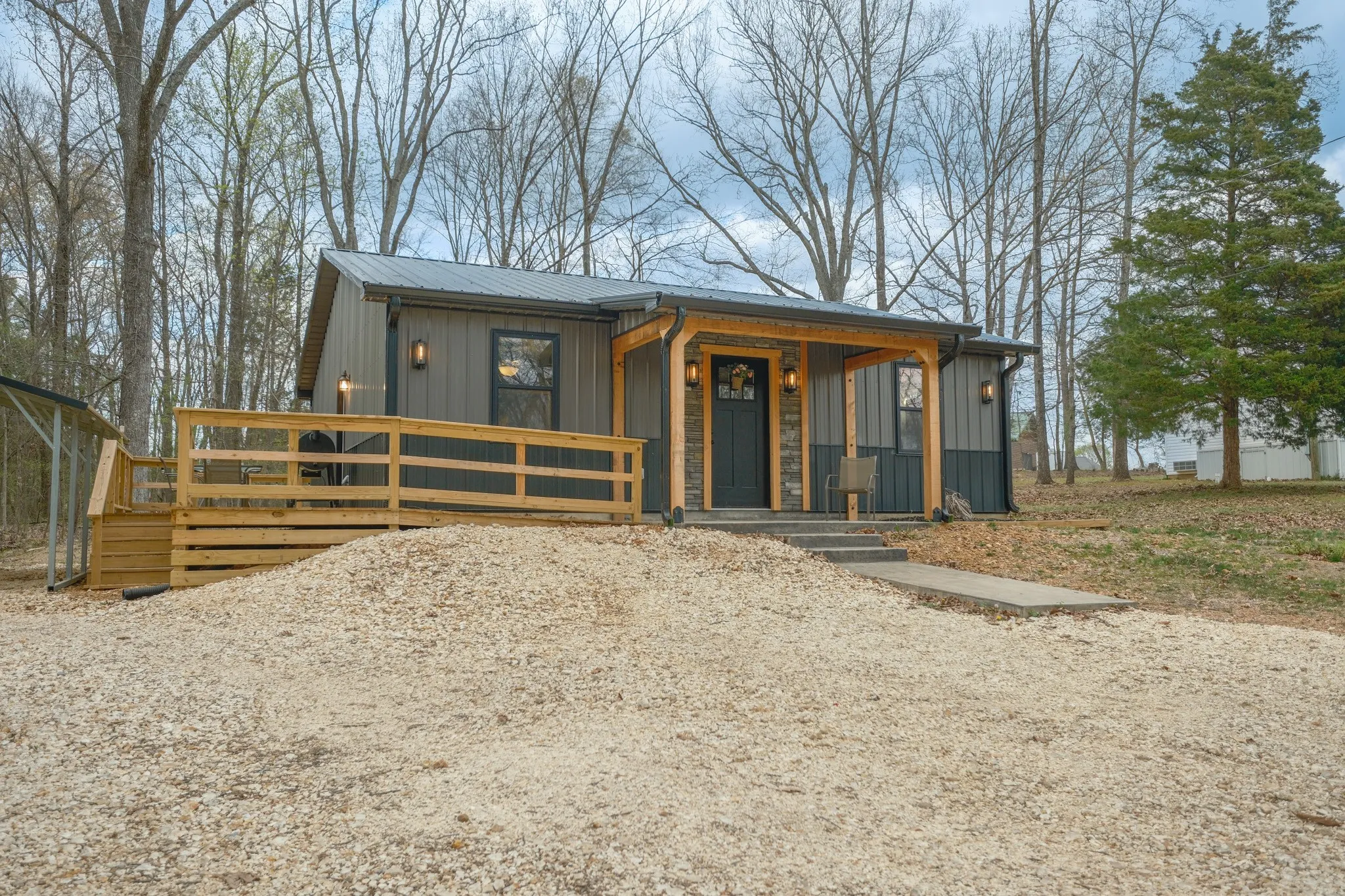 Kentucky Lake Cottage of your dreams! Looking for that perfect spot at the lake to spend your weekends, Airbnb or enjoy full-time? Look no further, this is the one! New Construction, Custom Built, low-maintenance inside and out. Located in desirable and quiet area just around the corner from lake and less than 2 miles from public boat ramp. Very little traffic, short lovely walk to the water. Home features an open floor plan with MANY stylish features such as modern lighting inside and out, exterior stone and wood accenting, gorgeous and durable LVP flooring throughout, stainless steel appliances, granite countertops, farm house sink, trendy white cabinetry with black accents, exterior black windows and doors, 3 sided wrap-around deck for entertaining, ample parking, matching 14×16 storage building for all your toys and even an on-trend bath fan with bluetooth speaker and color-changing lights! This one is absolutely a quaint and cozy dream that you do not want to miss! Call Rita @ 615-594-6259 to schedule your private showing today!
