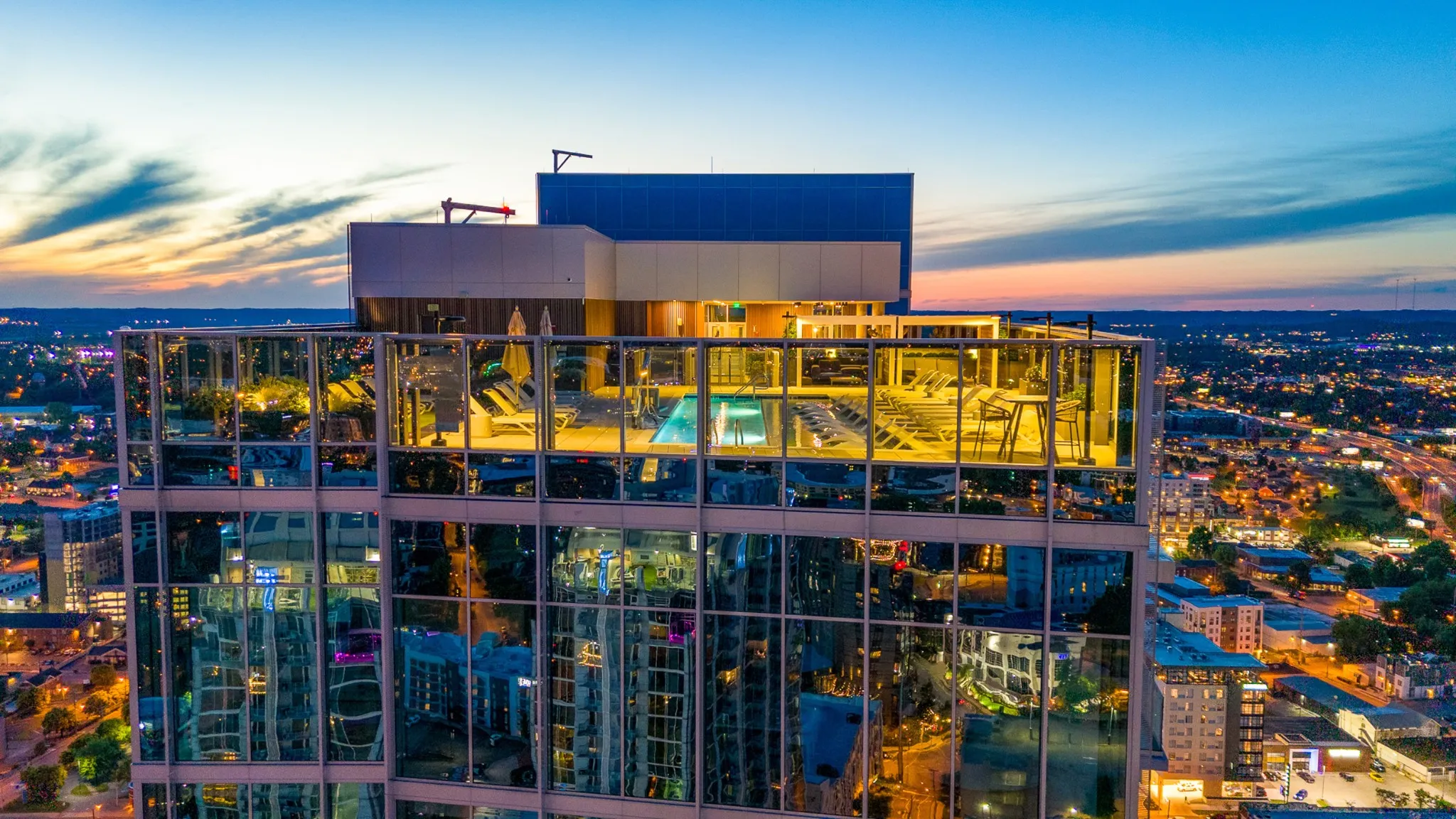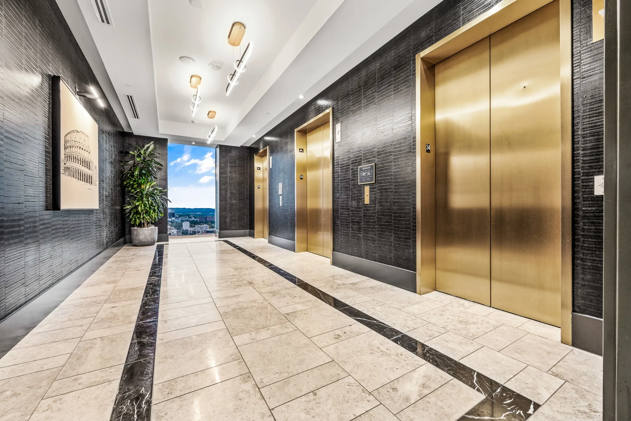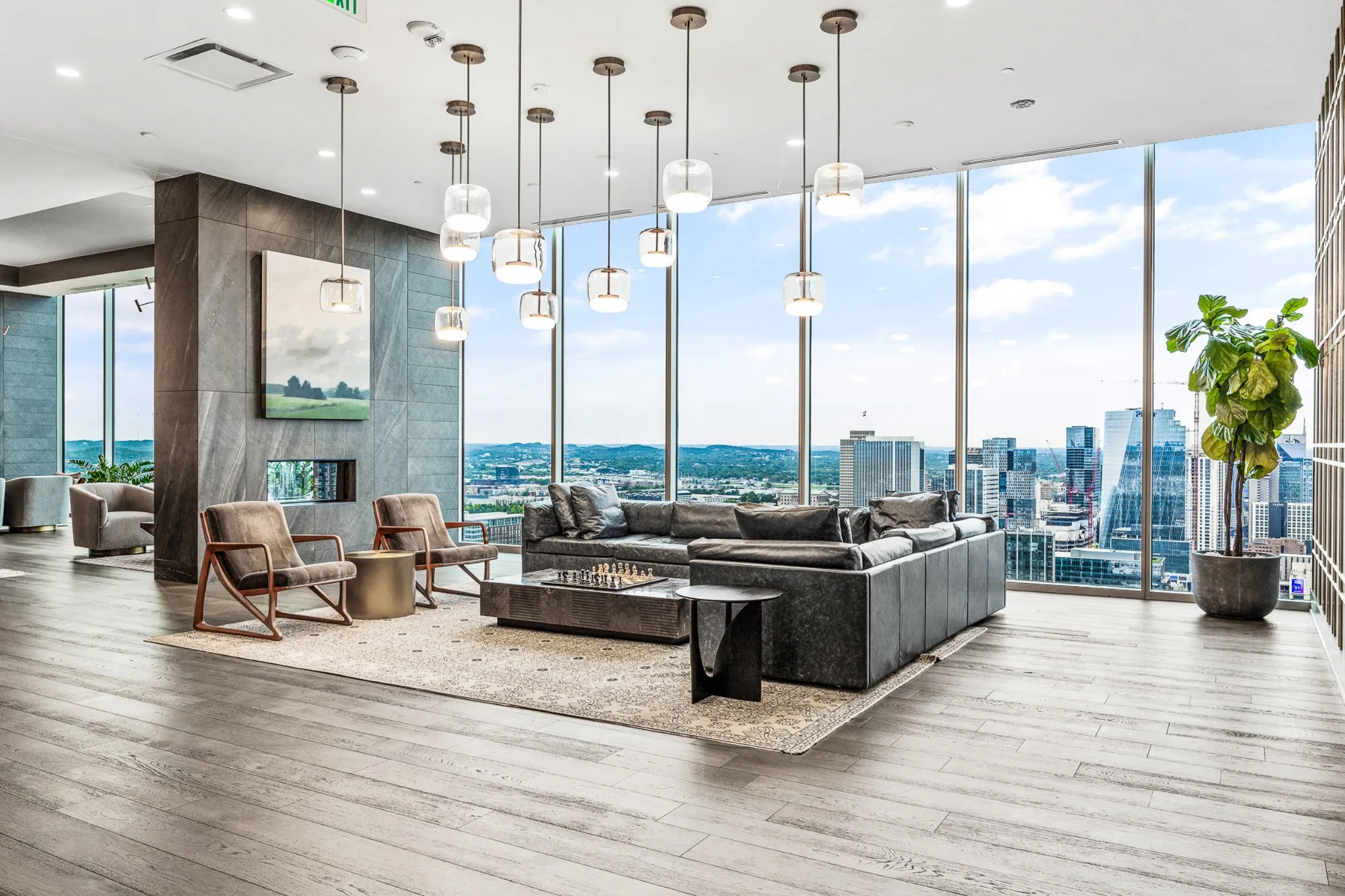 Residents enjoy a private 34th floor amenity level with fitness center, golf simulator, steam room, sauna, lounge, and rooftop pool. Services include 24 7 reception, concierge, valet, and onsite management. Steps from Halls Chophouse, Starbucks, Whole Foods, and Lola’s Café.