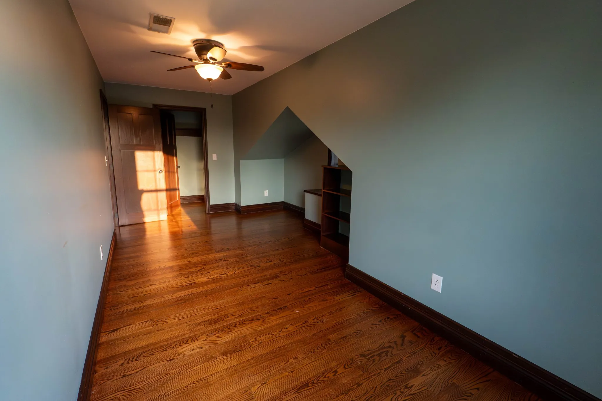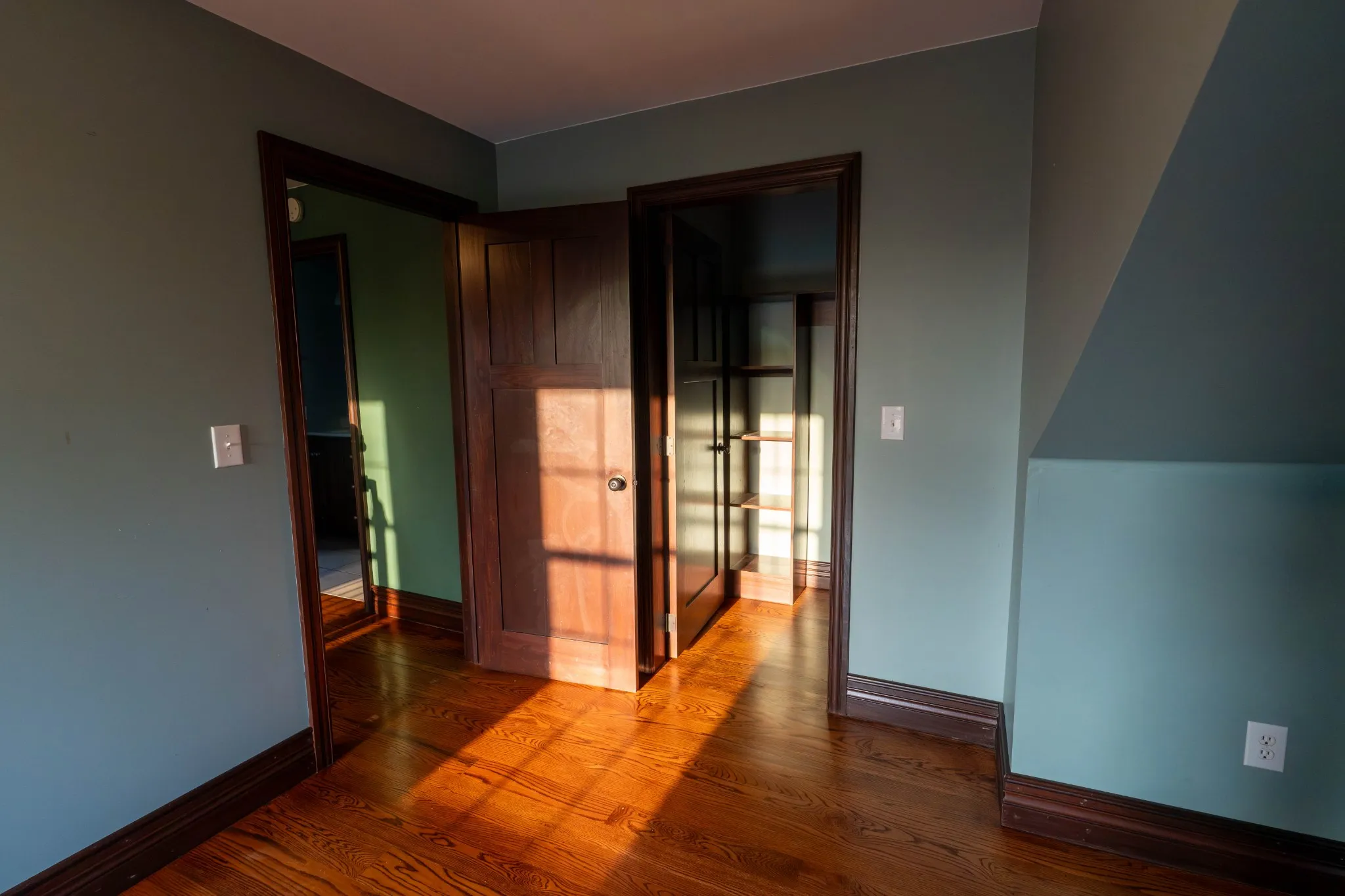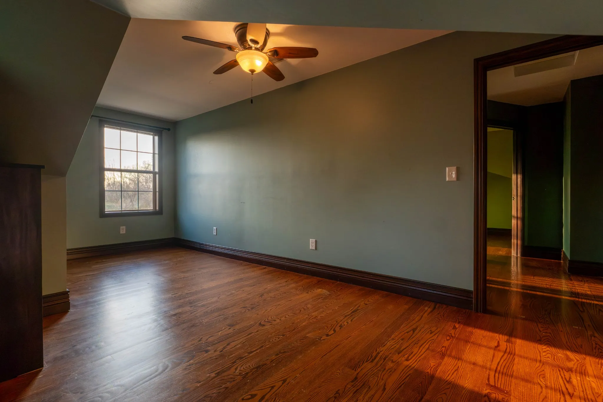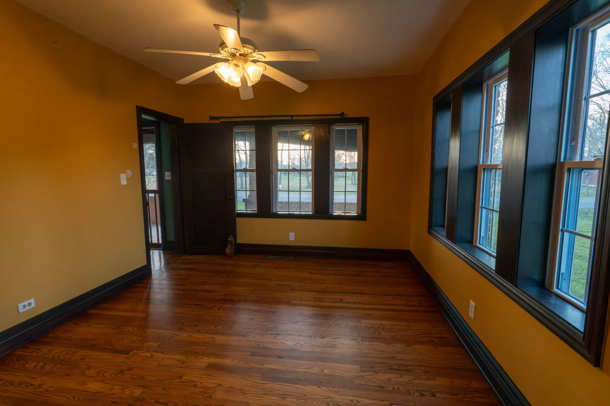 Inside the home, craftsmanship takes center stage. Custom woodwork is showcased throughout, from the rich hardwood floors to the beautifully crafted doors, including a one-of-a-kind front entry. A custom stairway and banister add character. The kitchen is warm and inviting, bathed in natural light pouring through a charming bay window.