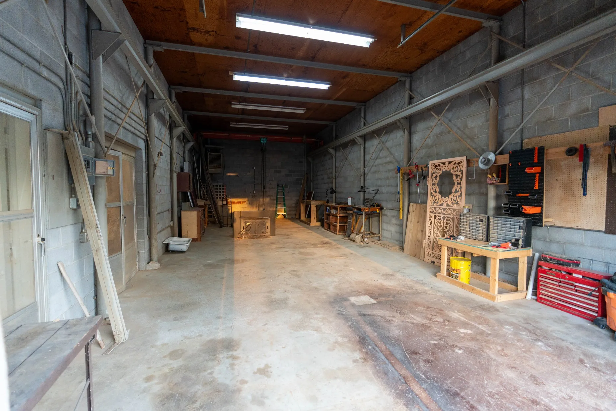 For those who value space to create, build, or run a business, the impressive 50×30 workshop is a rare find. With soaring 15+ foot ceilings and a rail hoist engine hoist, this versatile outbuilding has served as a mechanic shop, cabinetry workspace, and even a multi-artist studio. With four separate rooms, it offers incredible flexibility and strong potential for commercial or creative use.