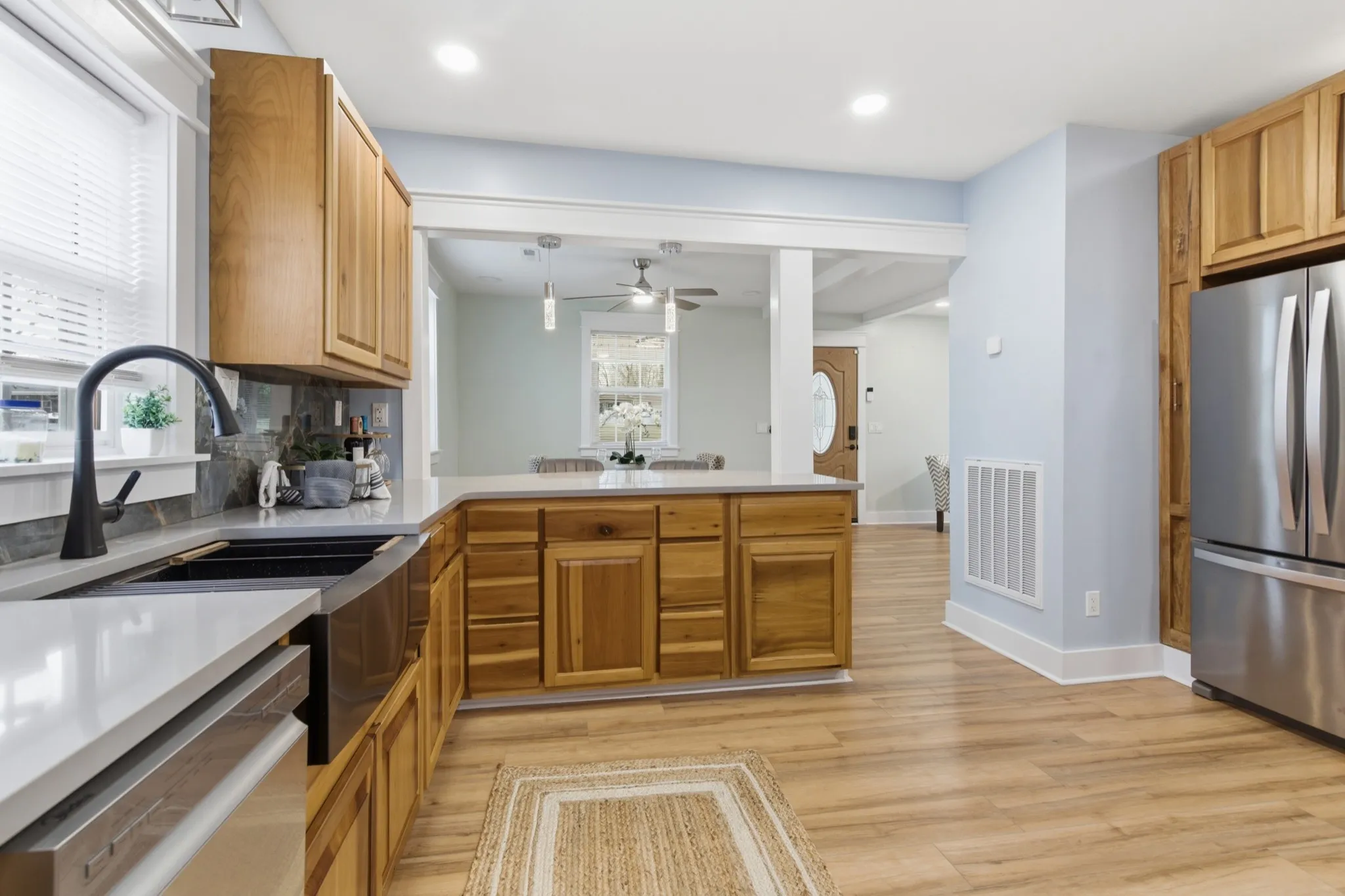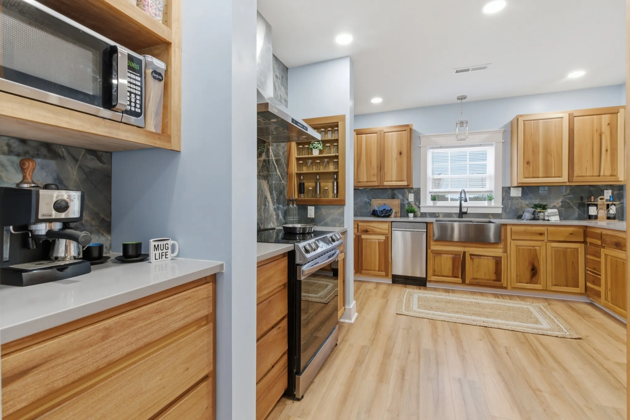 Experience the perfect blend of classic charm and modern comfort in this fully renovated 3 BR, 2 BA farmhouse, updated top-to-bottom in 2025, with the original section being built in 1938. This home features an open-concept layout with abundant natural light, a brand-new loaded custom kitchen w/quartz counter tops, a farm-house sink, all stainless appliances & energy efficient, beautiful poplar & oak custom cabinets. The primary bedroom has an awesome bath with a large tile walk-in shower & double vanity. The additional two bedrooms provide plenty of space for family guests, or a home office. All have closets include custom adjustable shelving and drawers.