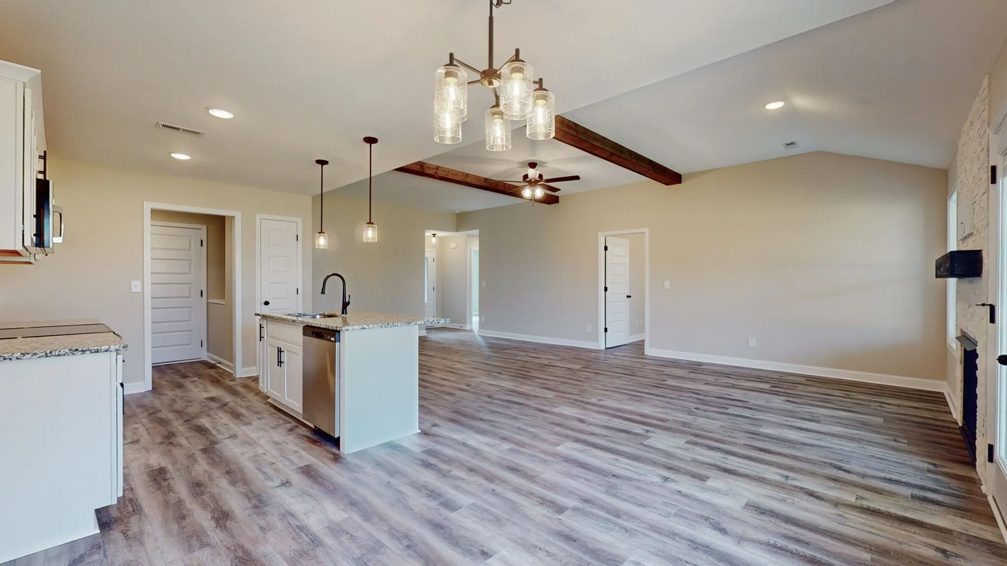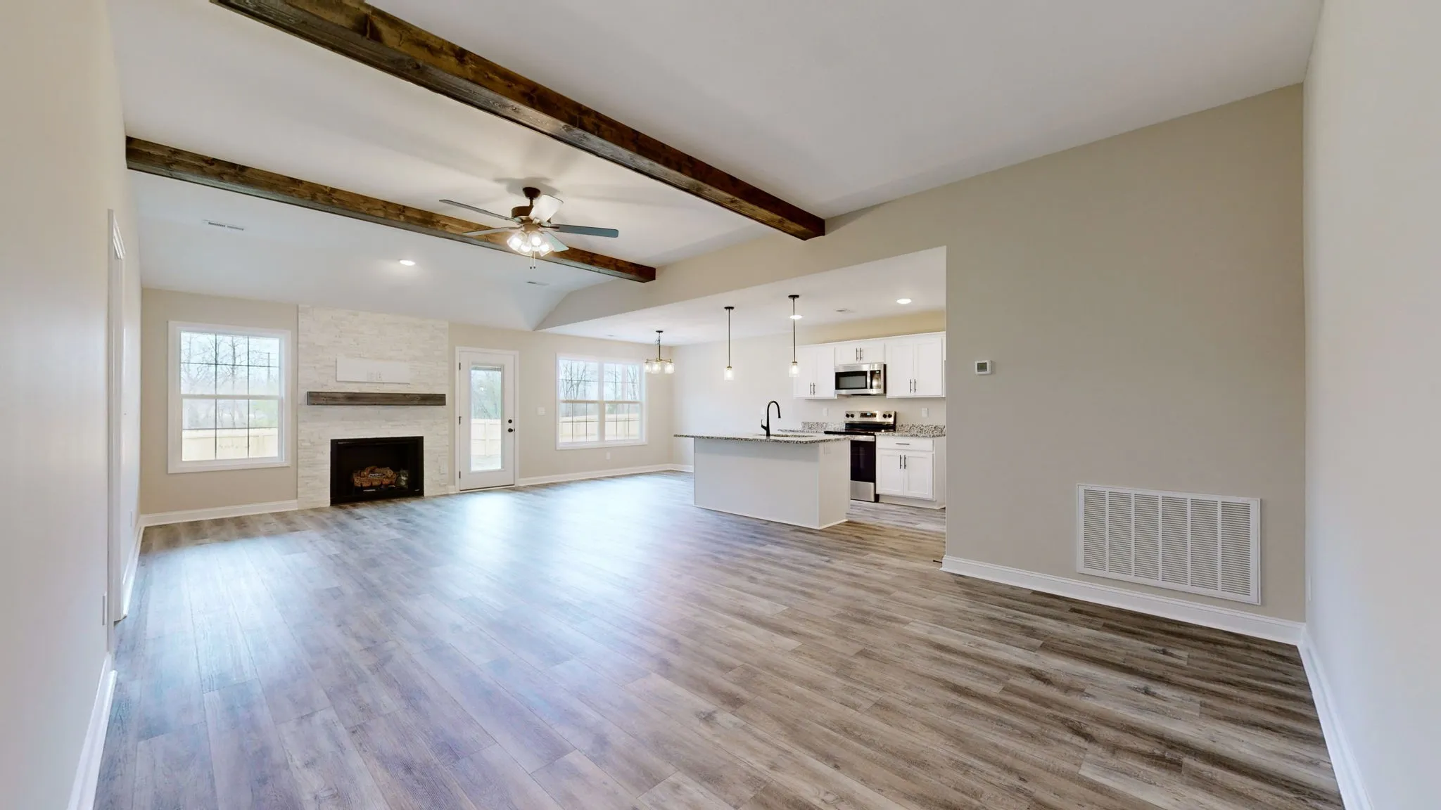Move in ready. New construction, one level, 2 car garage,3 bed 2 bath, LVP waterproof flooring throughout whole house, full tile shower and tile floors in bathrooms, stone fireplace, mini blinds, fridge and fenced in backyard. Covered patio with extended barbeque patio. Home is located close to Ft Campbell and easy commute to all local amenities. Seller to offer up to $15,000 in incentives. No City Taxes.