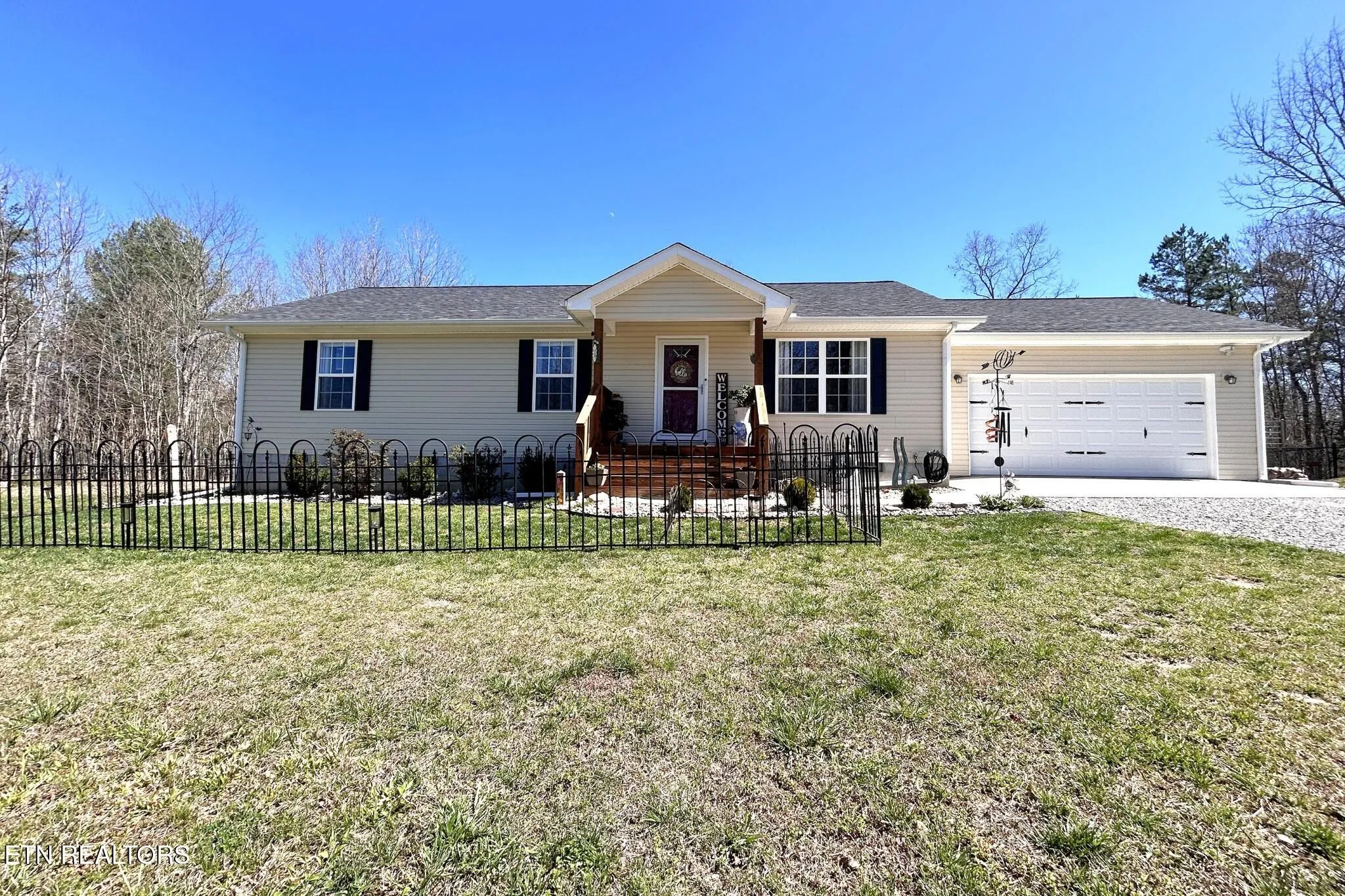 Welcome to this beautifully maintained, one-owner home built in 2022, set on over 2 acres across two parcels–offering both privacy and room to grow. Inside, you’ll find 1,624 sq ft of thoughtfully designed space, including a stunning 14’x20′ great room addition filled with natural light from wall-to-wall windows and anchored by a cozy slate, gas fireplace.The kitchen is both stylish and functional, featuring a granite composite double sink, gas range, and an island with seating–perfect for everyday living or entertaining. The owner’s suite provides a relaxing retreat with adjustable blackout blinds, while the bathroom includes a marble-top vanity, and a step-in shower. Step outside to enjoy a fully landscaped and black chain-linked fenced yard, complete with a two-level deck, pool area, and a garden with raised beds and a programmable watering system. A two-car garage, wide driveway, and a versatile shed with lofts, workbench, and potting bench add even more appeal to this inviting property with room to expand, build and create your home retreat.