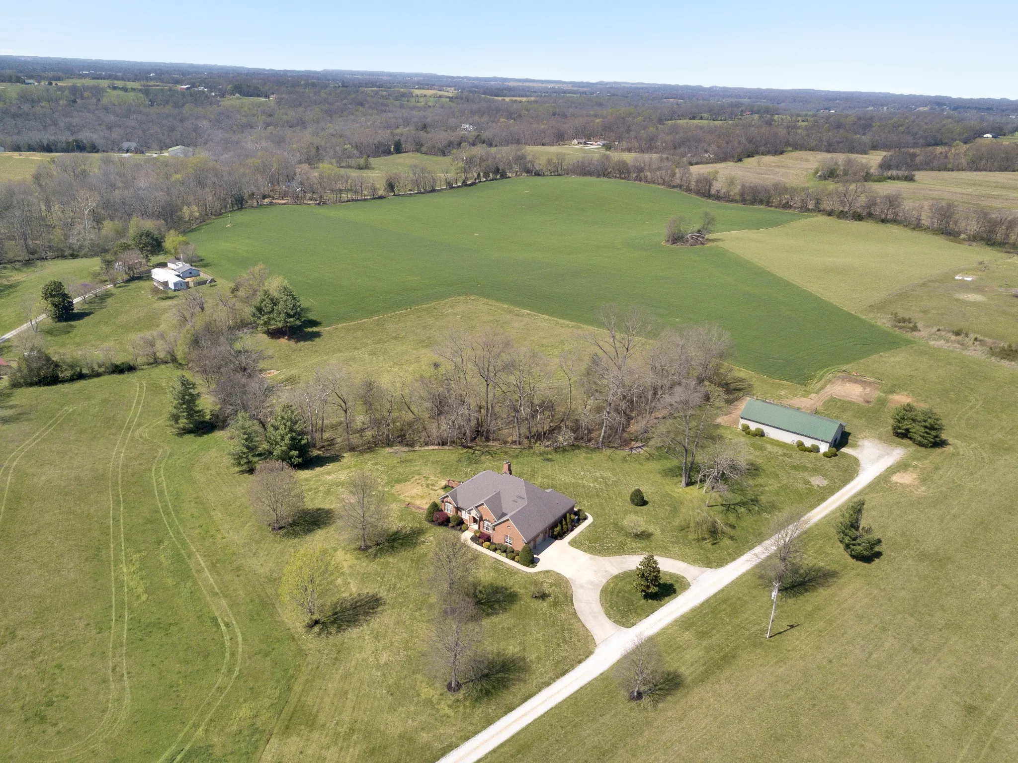 Equestrian Estate featuring ALL Brick Home with Full (partially finished basement), Less than 10 minutes to Springfield City Limits, 38.8 Acres and a 4 Stall 72×36 Horse Barn * Home is a Custom Build * 3 Bedrooms/2 Full Baths on Main Level * Basement has a 4th Bedroom and another Full Bathroom and Exterior Entry * Home features an Entry Foyer, Formal Dining Room, Study, Living Room with Fireplace, Spacious Primary Suite with exterior door leading to Patio and Private Bathroom with separate Tub and Shower/2 sinks/2 Walk-In Closets/Water Closet, Kitchen with Granite Countertops/Tile Backsplash/Island and Breakfast Nook, 2 Guest Bedrooms, Guest Bath * Full Basement with Rec Room, Bedroom, Full Bath, work room, storage room * 2 Car Side Entry Garage * Covered Porch and Patio on Back with 2 outlets for gas grills * Horse Barn has 4 Stalls/36 Ft Riding Area/Tack Room/Feed Room/12×72 Shed on Side
