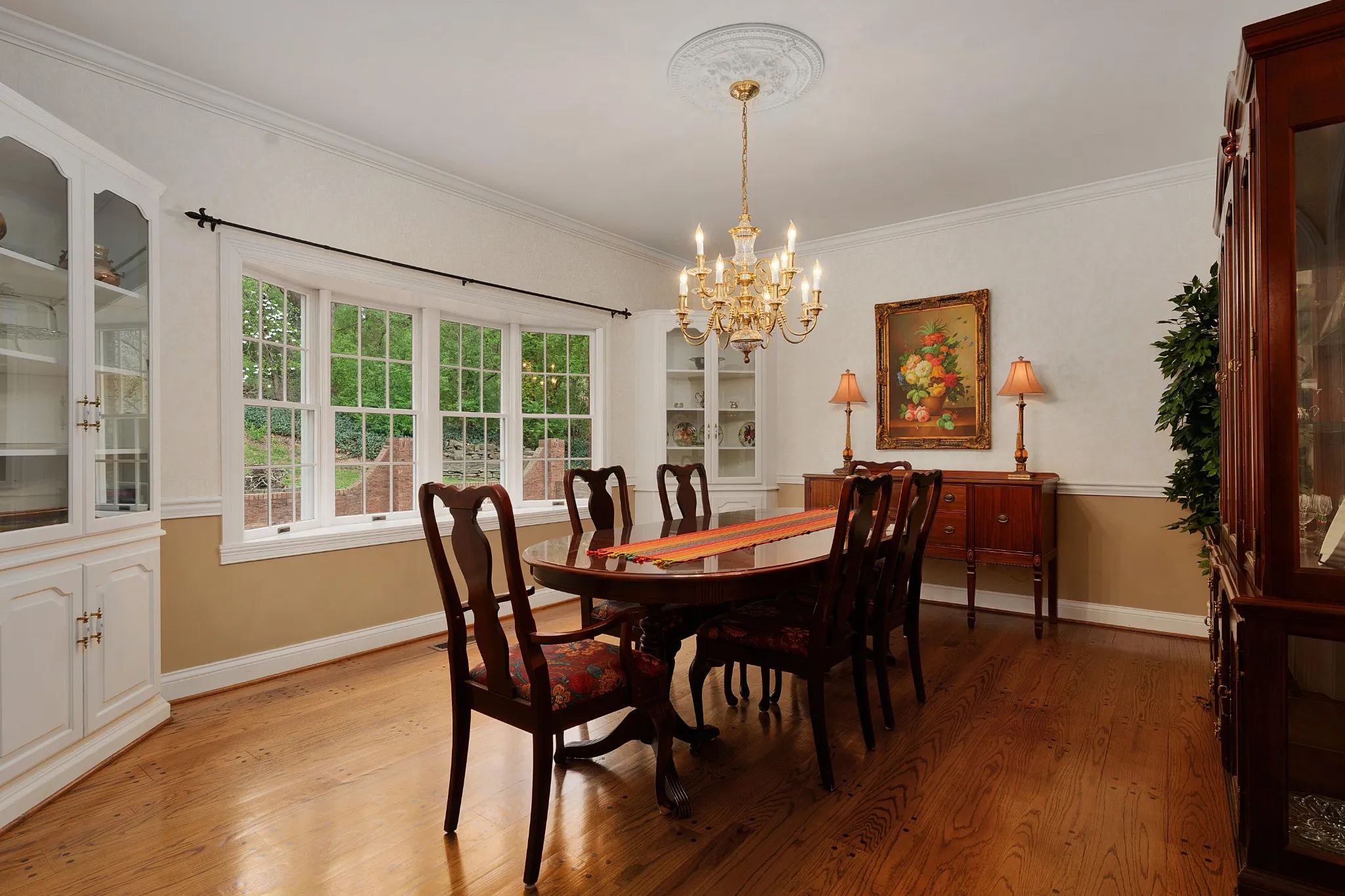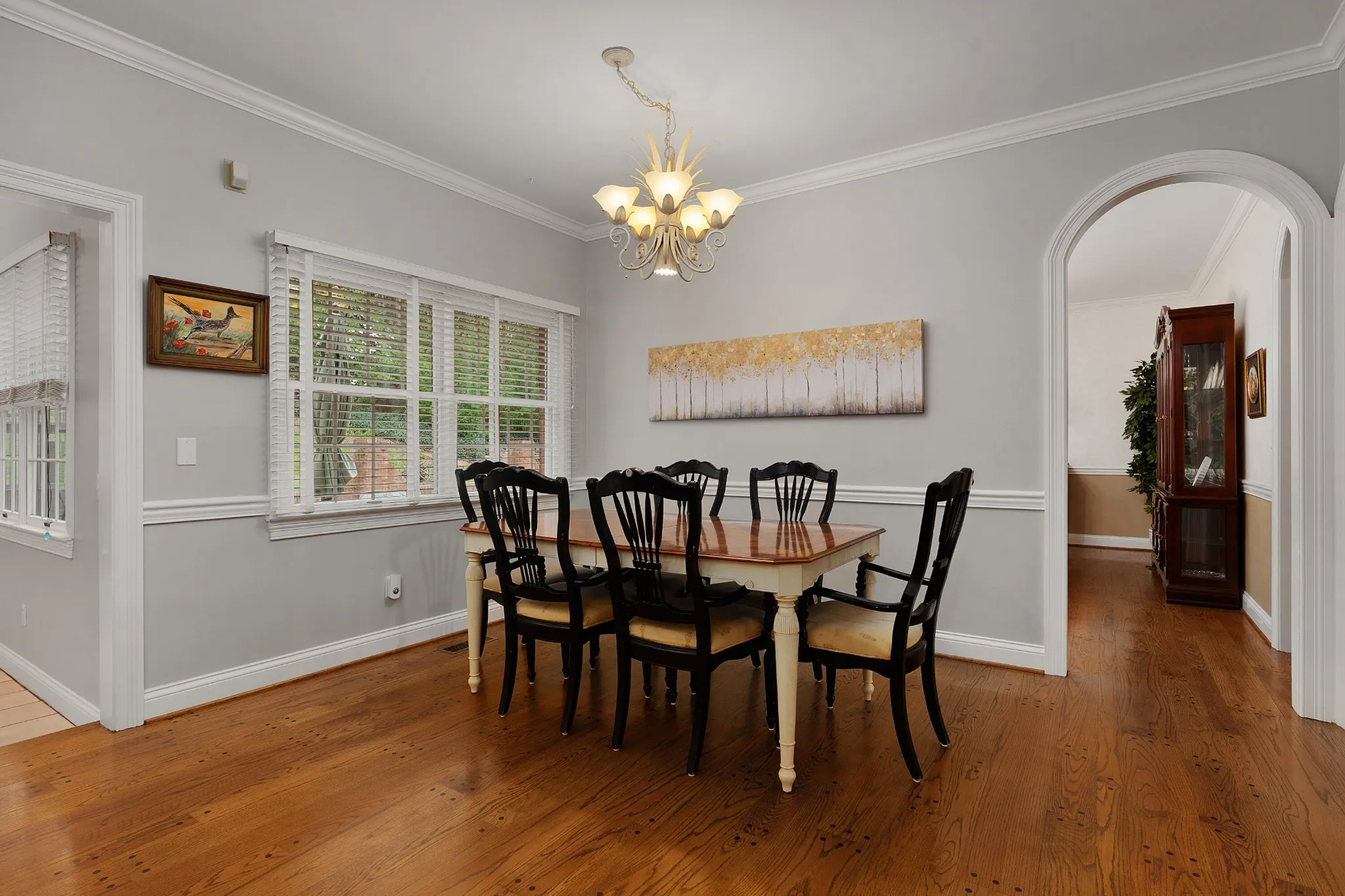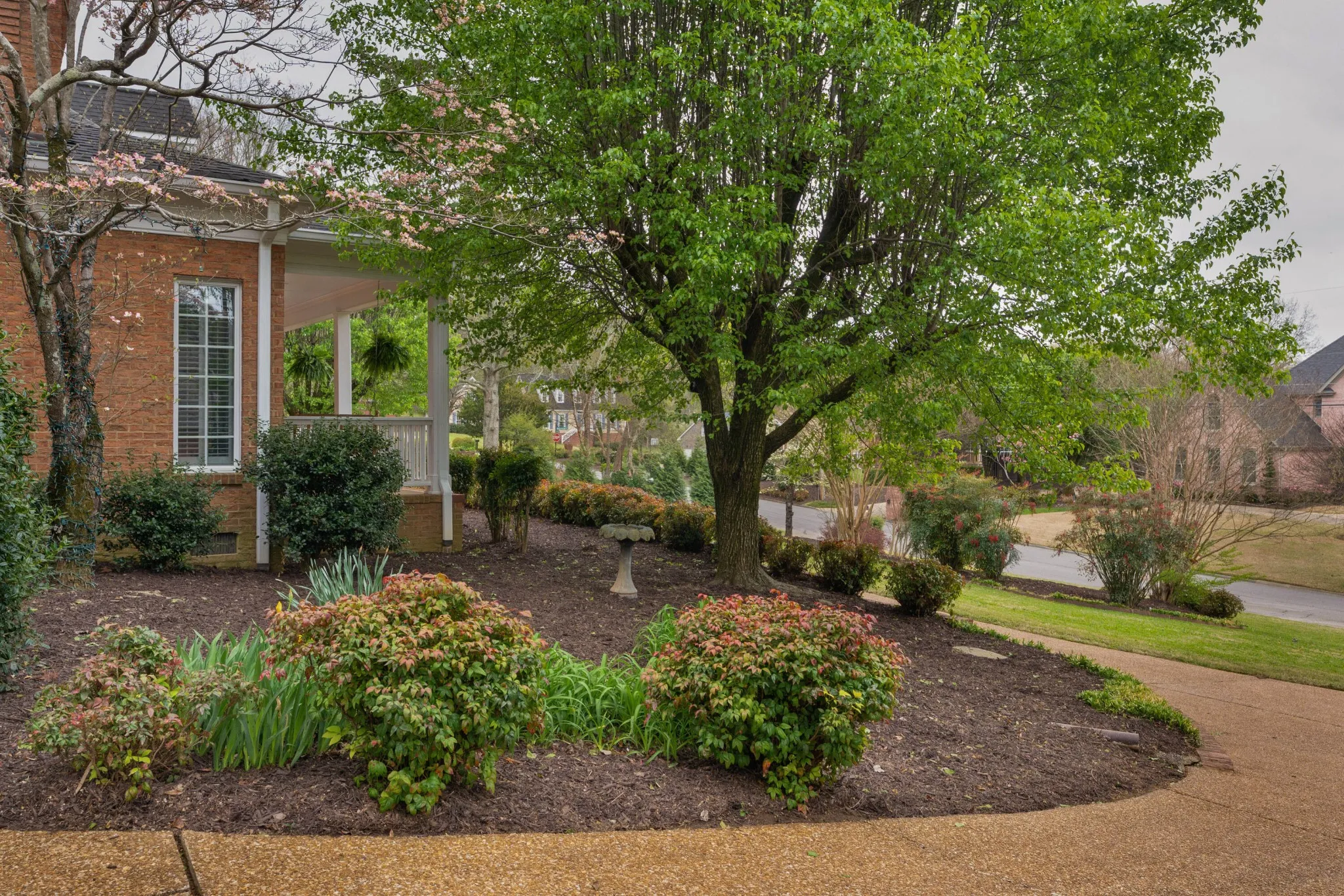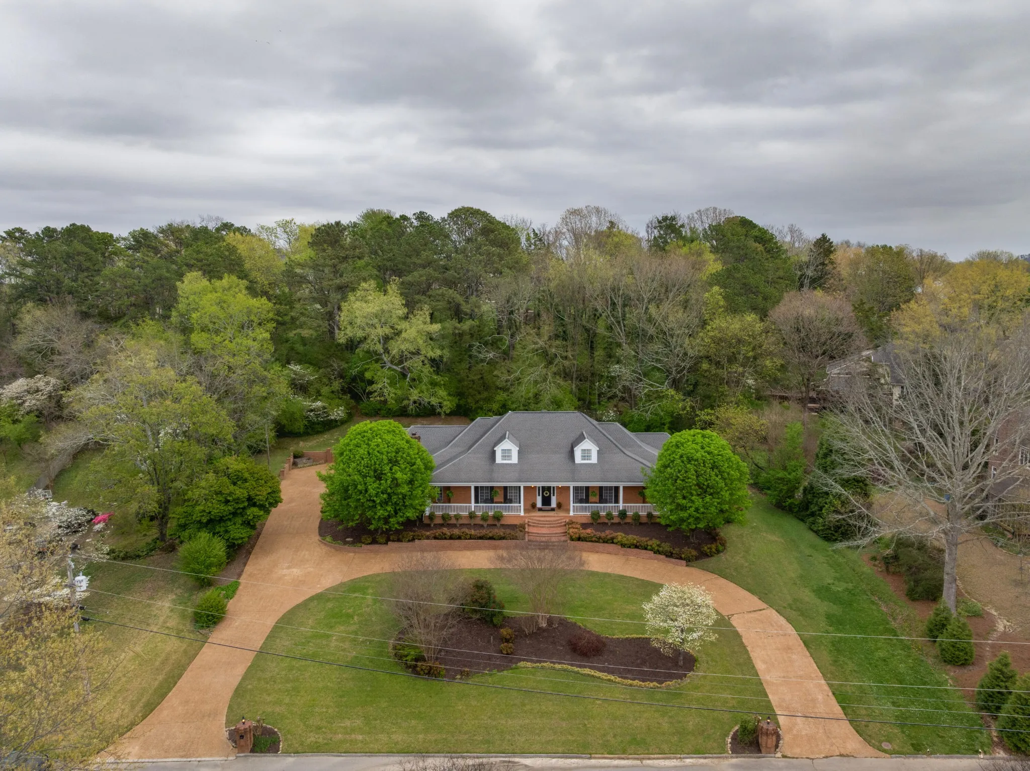 Fantastic opportunity in the desirable Mountain Shadows neighborhood in the heart of East Brainerd convenient to schools, parks, medical facilities, the Chattanooga Airport and the shopping and restaurants in the Hamilton Place area. This mostly brick 4 bedroom, 3 full and 2 half bath home is positioned on a 1.2 +/- acre lot and exudes southern charm with its plantation style architecture, covered front porch and mature landscaping, and the interior is equally impressive with its large rooms, hardwood floors, crown moldings, arched doorways, plantation shutters, multiple window seats with storage, formal and informal living spaces, the primary on the main, a great bonus room, an abundance of storage, 3 garage bays and a wooded setting in back providing coveted privacy in back when relaxing or entertaining on the rear patio or soaking in the hot tub. Your tour begins with the dedicated foyer that has access to the living room, family room, dining room and kitchen/breakfast room. The living room could easily be used as an office, while the family room is perfect for gathering and has a gas fireplace, a wet bar and adjoins the kitchen area via a laundry room with a sink and private water closet. The formal dining room is across from the living room and has arched doorways from the hallway and breakfast room. The breakfast room is open to the kitchen which has a center island, granite countertops, under-cabinet lighting, stainless appliances, a walk-in pantry, a pass-through window to the sunroom and is just steps away from the 2-bay garage and the separate single bay garage which is accessible from the cozy den off of the kitchen. The sunroom will definitely become a favorite spot in the house with its vaulted ceiling and skylights, French door to the rear patio and of course, proximity to the kitchen. A guest powder room is located on the other end of this level as is the primary bedroom which has French doors to the rear patio and hot tub area, and a double door entr