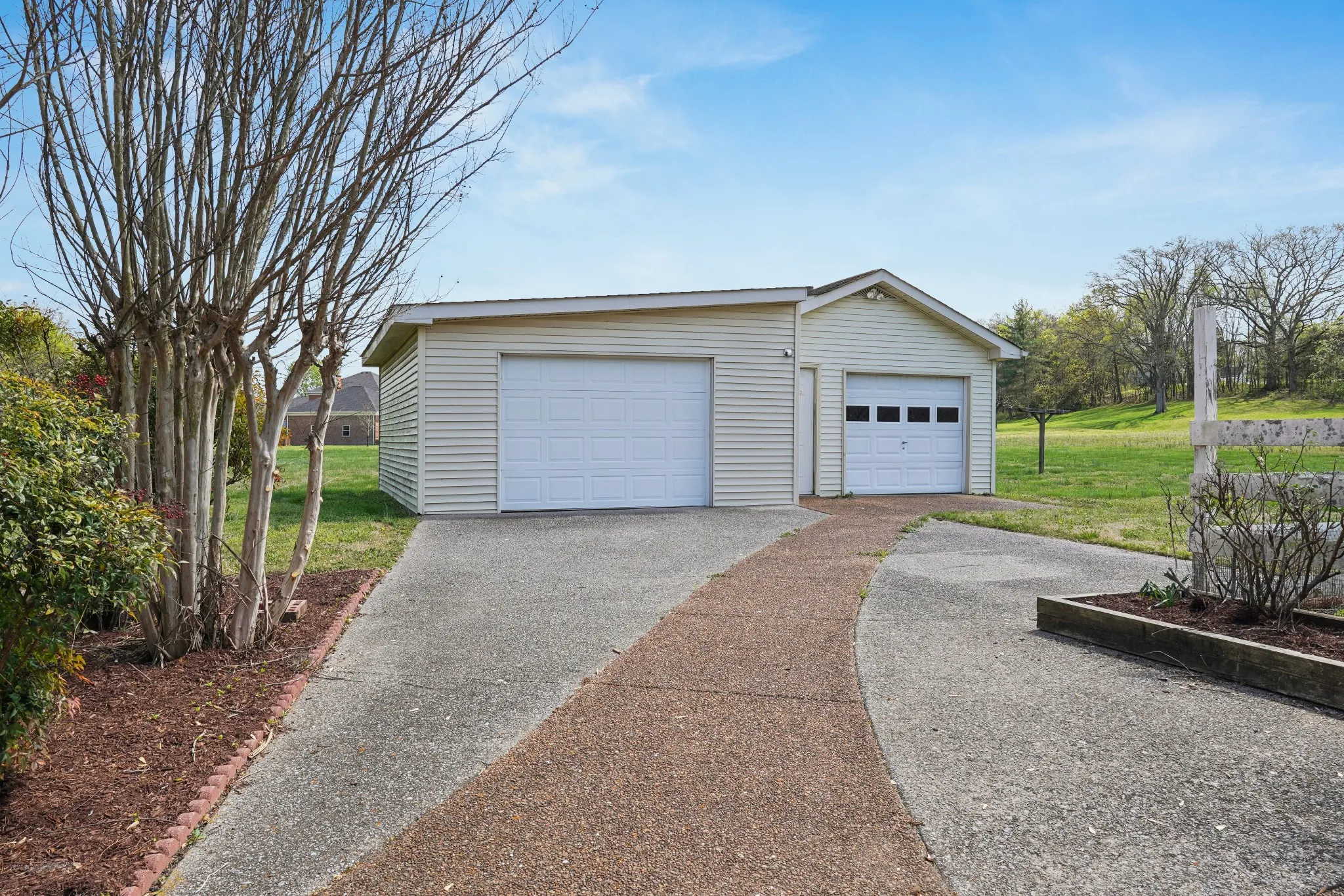4 BR 3FB, 2 1/2 baths on large 2.98 acre tract that was bought as two tracts together but could be split. Hardwood floors. Deck and patio, 2 car att. garage and detached garage that is wired and had A/C & heat prior. Farm estate feeling but close to town. Large kitchen. Rec. room and offices, large primary bath with tub and shower, has recently been connected to city sewer, has propane tank