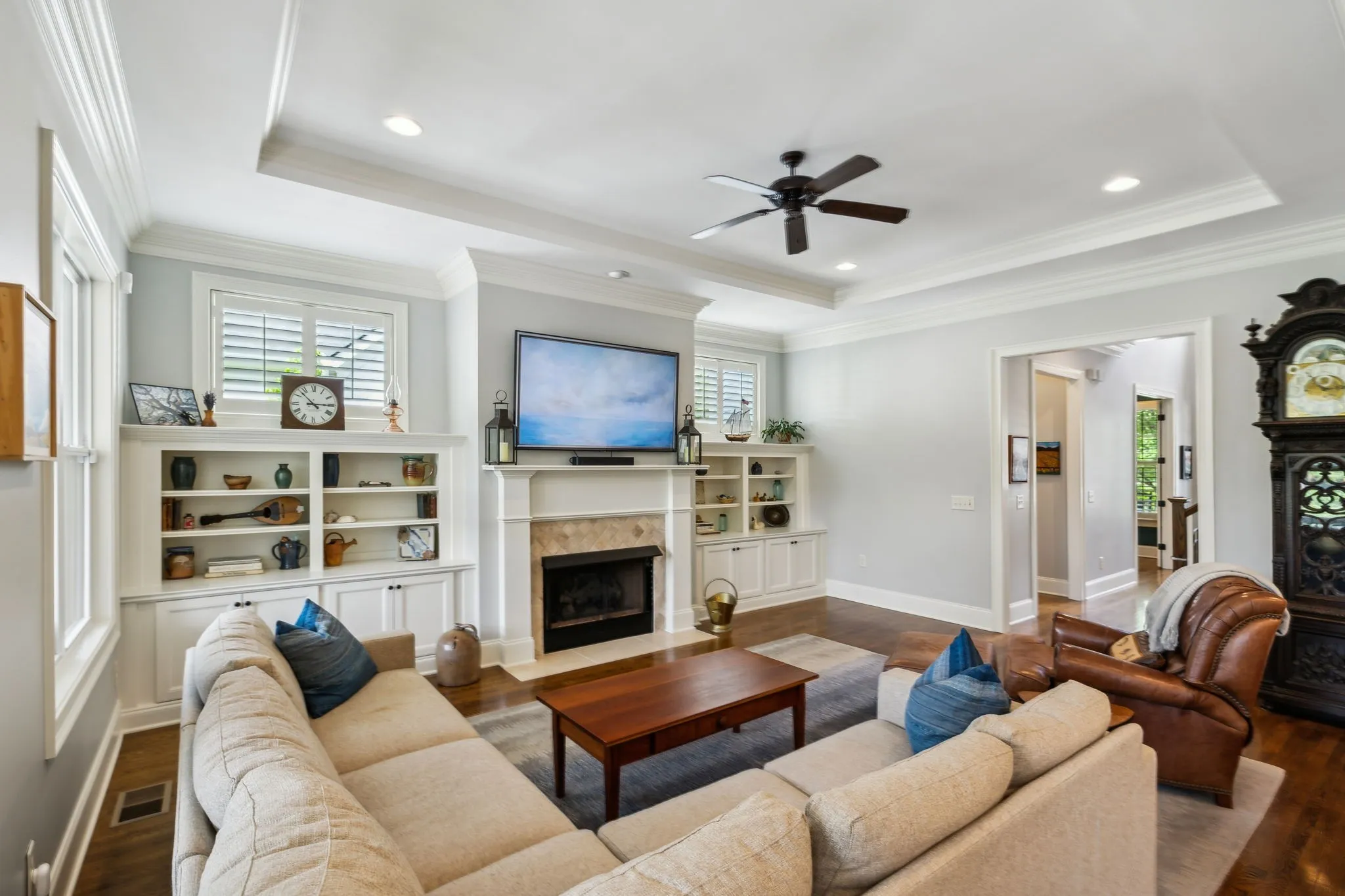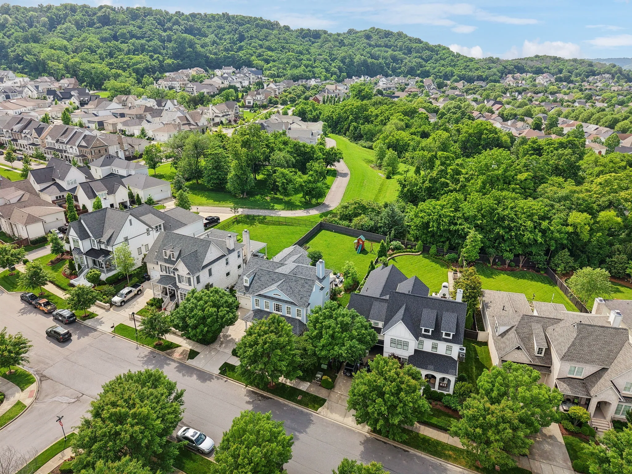 Welcome back to one of the last truly expansive, pool-ready backyards in the highly sought-after Westhaven community of Franklin, TN! This beautifully maintained 4–5 bedroom home offers exceptional living space and versatility. The primary suite is conveniently located on the main level, along with a front office that can easily serve as a fifth bedroom. Gleaming hardwood floors flow throughout the main level, leading you to a charming screened-in porch. Watch the sun set over a stunning blue limestone patio and a private, tree-lined backyard. Behind the yard, your privacy is further enhanced by HOA-owned green space, a lightly traveled rear lane serving just 10 homes, and a preserved historic area with mature trees. The quiet back street offers ideal access for equipment, making it easier and more cost-effective to build the POOL OF YOUR DREAMS! Upstairs, you’ll find three additional bedrooms and two spacious bonus rooms perfect for play, media, or work-from-home flexibility.