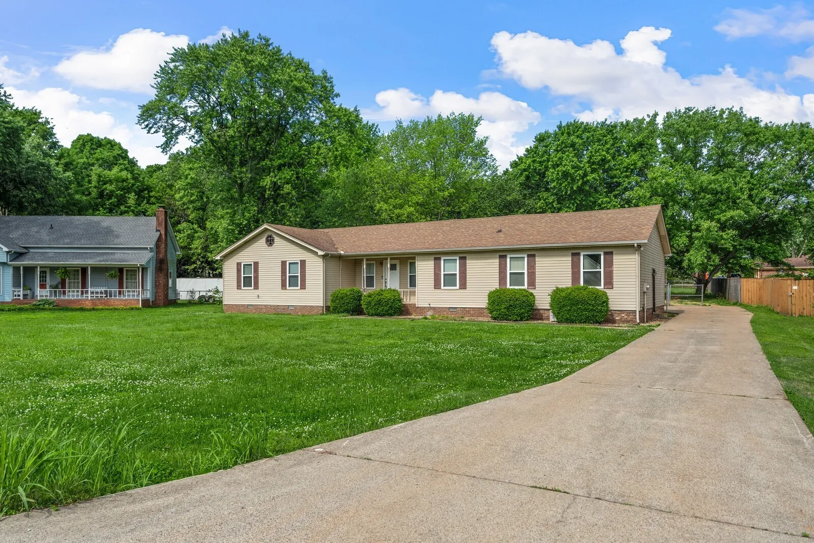 Nice Ranch home with 3 bedrooms, 2 bathrooms, 2 car garage and huge 3/4 Acre yard fenced. Hardwood floors throughout and tile in bathrooms. No Carpet. Separate Dining Room adjacent to kitchen and living room. Eat in Kitchen. Garage is oversized with storage room and shelving and is located on the rear of the home. Storage building in back yard. Home is on cul de sac. Large Screened/Covered Patio in back. Small dog under 25 lbs considered. Very convenient to I24, Schools, Restaurants and Shopping. Available June 1st.