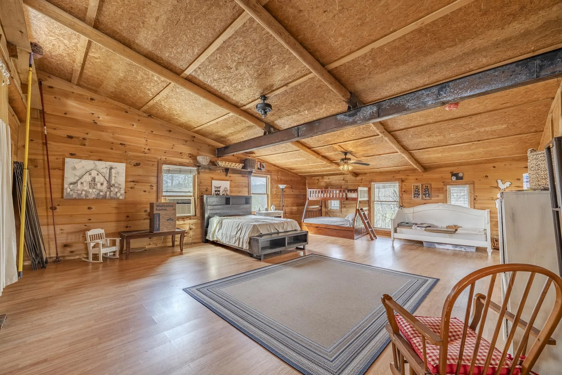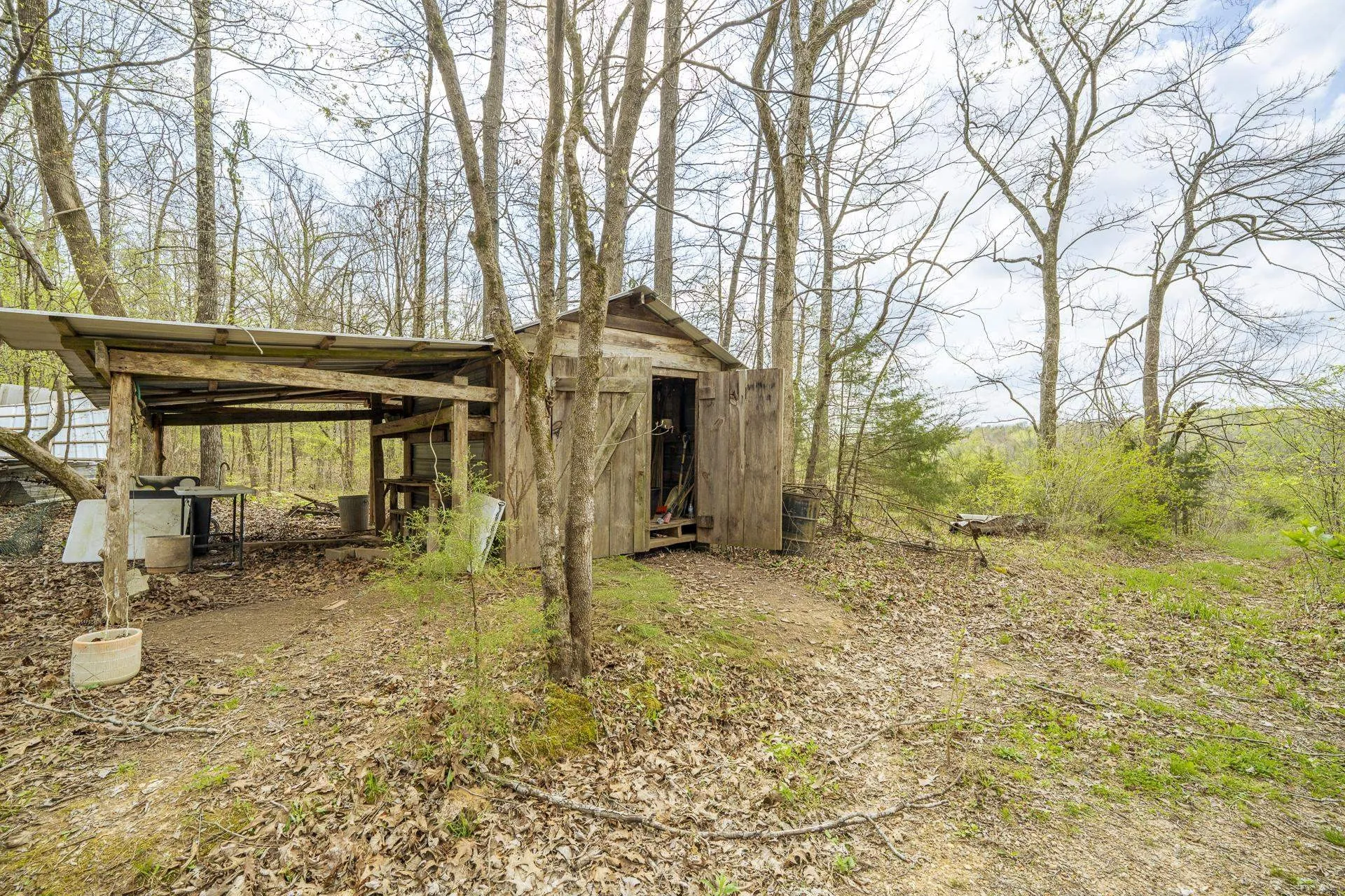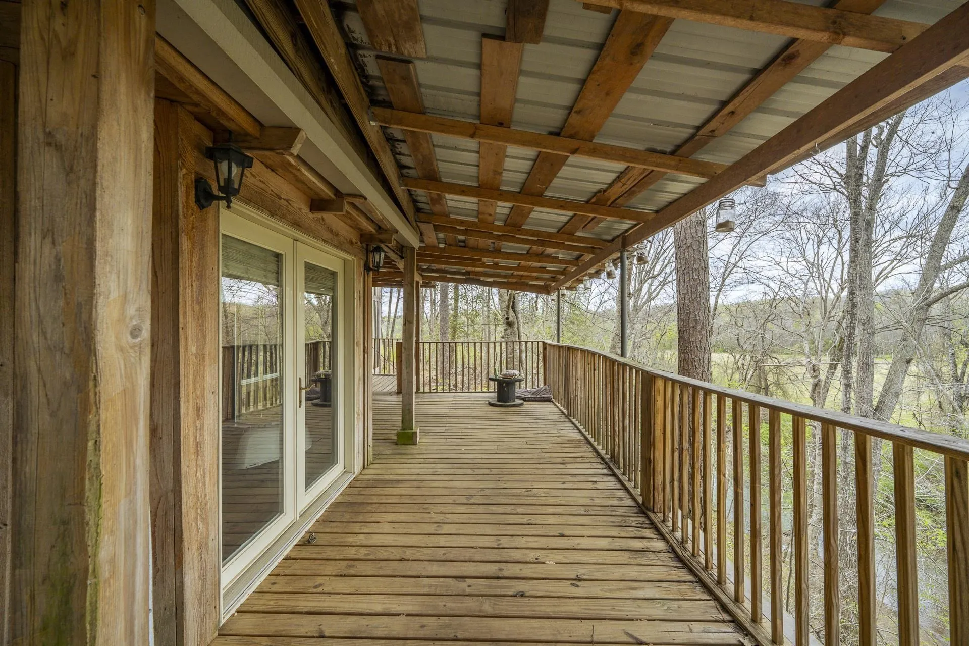 Nestled on 55 private wooded acres +/- with stunning Turkey Creek frontage, views, & access, this one-of-a-kind rustic lodge-style home offers incredible potential for a dream retreat or homestead! Featuring two levels plus a walkout basement, the home is anchored by the centerpiece…a double-sided stone fireplace soaring to the vaulted ceiling! The great room opens to a deck overlooking the creek…perfect for morning coffee, a little fishing, or kayaking fun. Inside includes two primary suites, an office w/built-ins, & a spacious kitchen w/island, spacious pantry, eat-in bench seating, & expansive dining area perfect for entertaining. Upstairs offers a loft, more deck access, & flexible sleeping space. An additional structure adds even more potential for a future in-law suite. Ideal for hunting, gardening, & self-sufficient living, w/room for chicken coops & ample storage for canning. A rare opportunity to create your private escape with unmatched land, character, and possibilities!