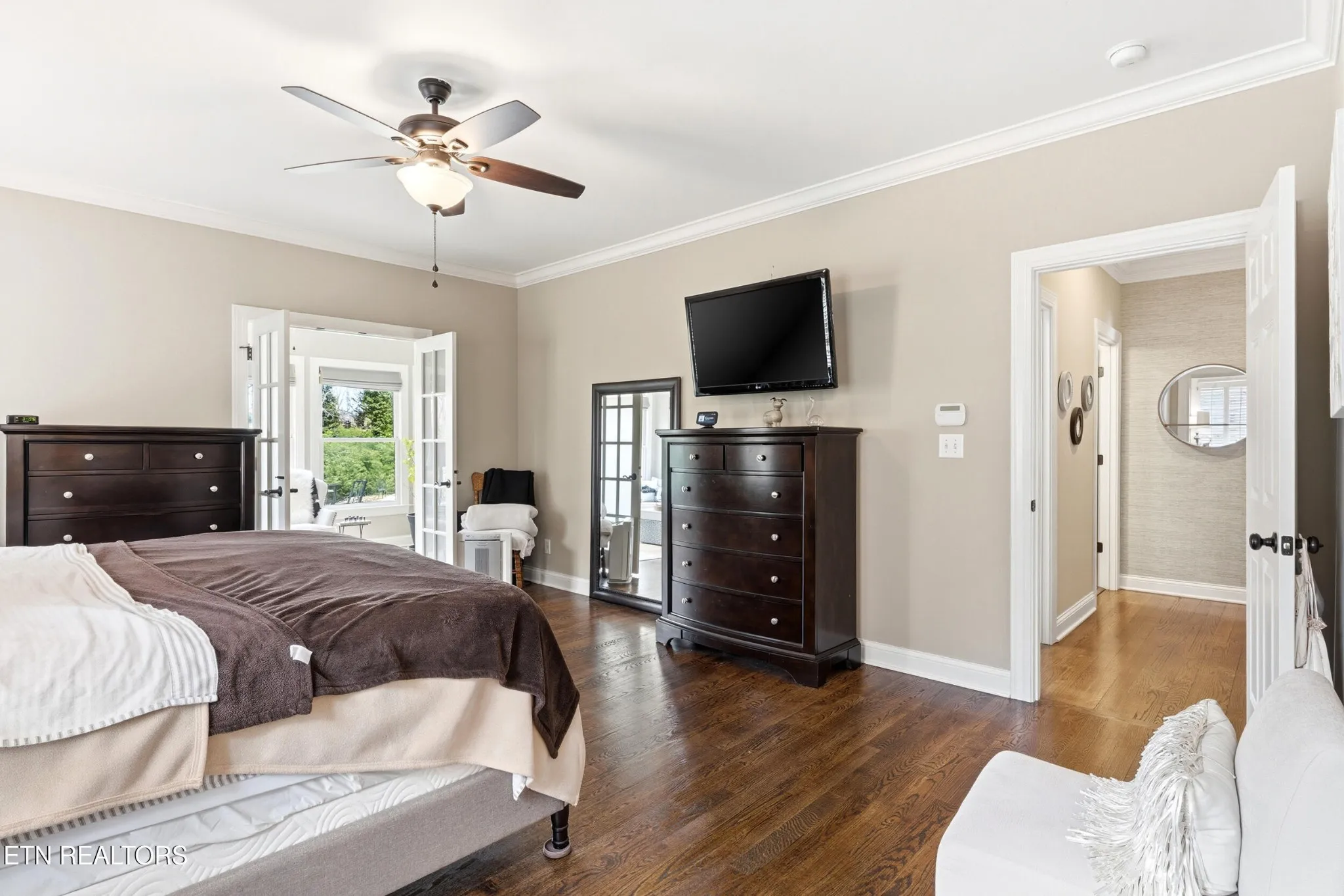 The main-level primary suite provides comfort and privacy with generous space and a well-appointed en-suite bath. A sunroom on the main level adds the perfect spot to relax and enjoy natural light year-round.