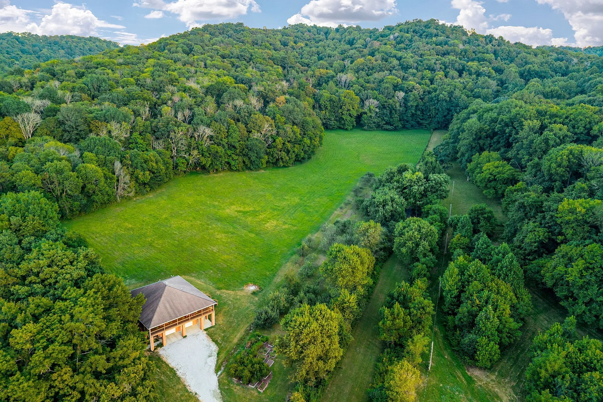 Private 36.84-acre oasis located only 10 mins to Center Hill Lake and less than an hour to Downtown Nashville and nestled at the base of a lush, wooded valley offering unmatched privacy, breathtaking natural beauty, and modern comfort. Surrounded by mature hardwoods and abundant wildlife, this exceptional property feels like your own secluded sanctuary. A thriving apple orchard with 95 producing trees adds both charm and function, while the private disc golf course provides a unique recreational experience right in your backyard. The 3-bedroom, 2-bath home offers approximately 2,688 square feet of thoughtfully designed living space with an open-concept layout, soaring ceilings, hardwood flooring throughout, custom tile work, and an abundance of natural light. The gourmet kitchen flows seamlessly into the spacious living area, creating an ideal setting for both everyday living and entertaining. Step outside onto the expansive wrap-around covered deck and take in panoramic views of your private valley—perfect for enjoying peaceful mornings, vibrant sunsets, and the beauty of every season. Comfort is ensured year-round with radiant heated floors spanning the main level, the finished 800 sq ft basement, and even the 2-car garage. The basement offers versatile space that can serve as an entertainment room, media area, or multipurpose retreat. A dedicated gym room comes fully equipped with professional-grade workout equipment, making it easy to maintain an active lifestyle at home.