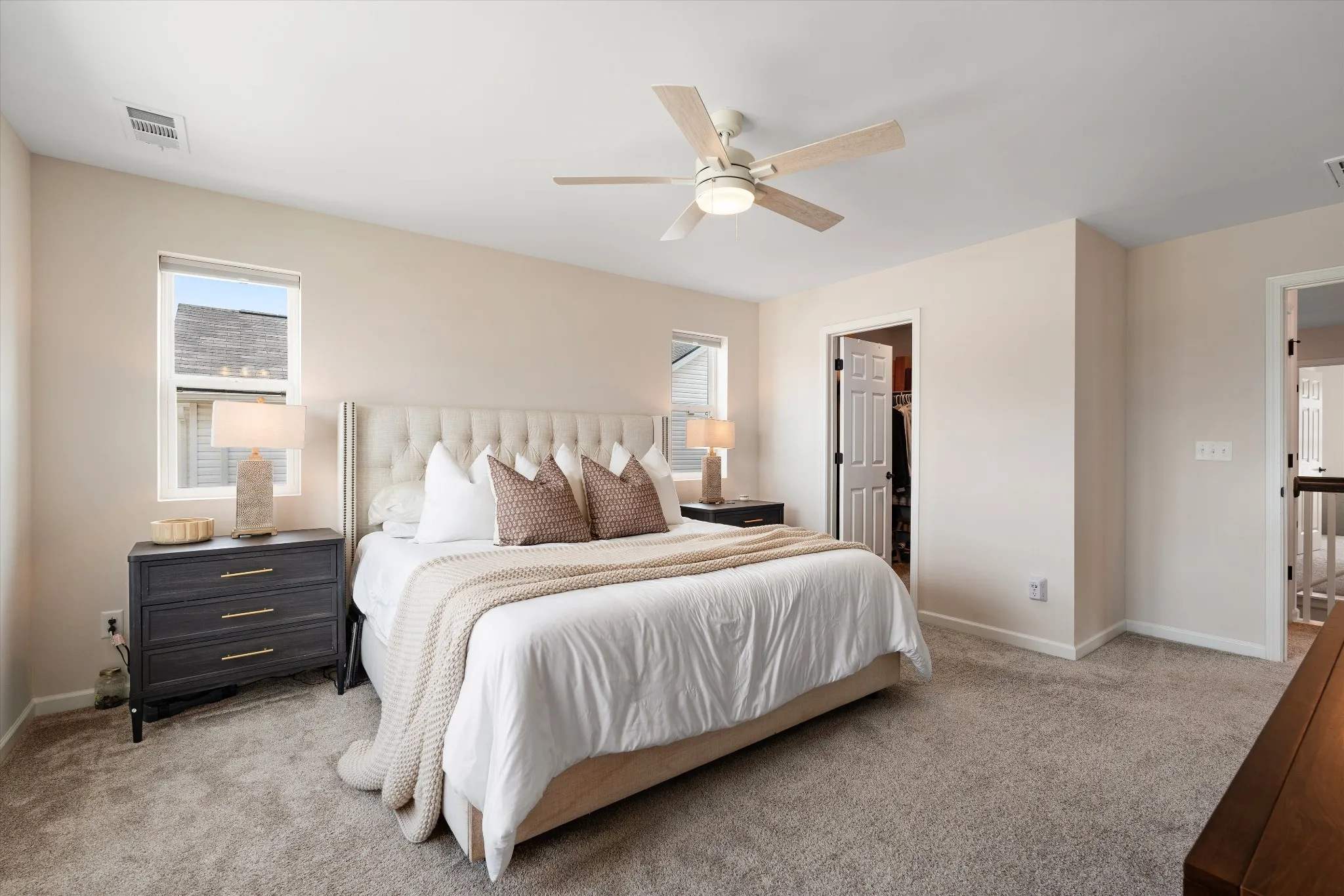 Upstairs, you’ll find generously sized bedrooms along with a spacious primary suite. Bathrooms are finished with tile and quartz surfaces, including double vanities for added convenience.