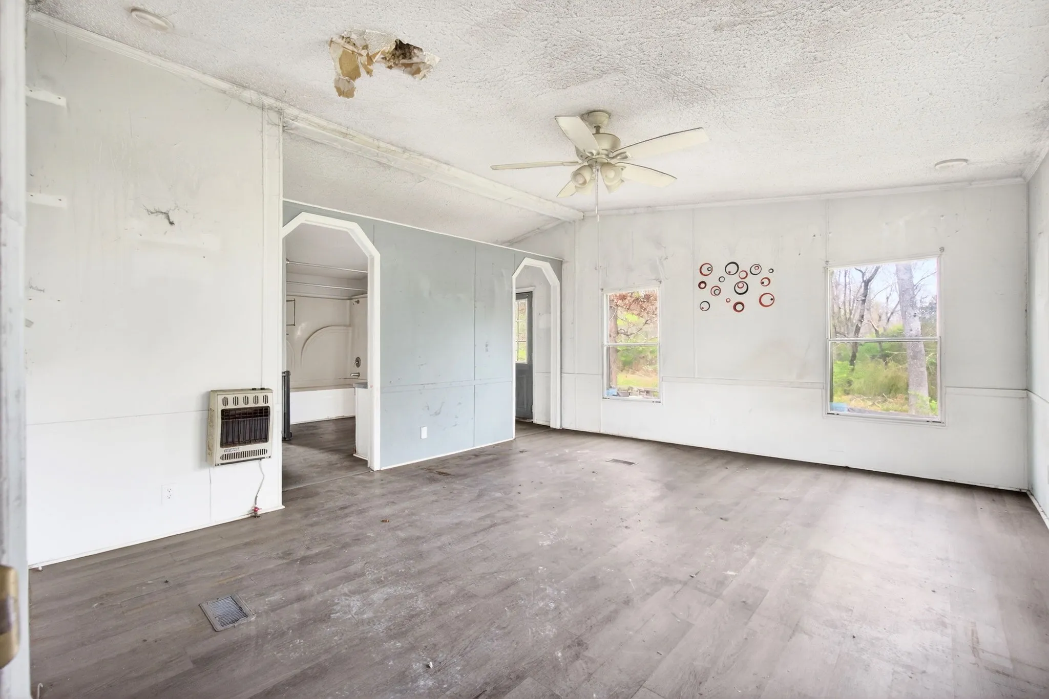 FIXER UPPER with motivated sellers- CALLING ON INVESTORS, HANDY PEOPLE AND OTHERS THAT ARE WILLING TO PUT IN SWEAT EQUITY. Bring your furbabies, and let’s get to work! This 3/2 doublewide on a permanent foundation has an incredible location and needs a little love to be a true home, again. Dwelling suffered fire damage 1/2026. Damage appears to be minor. This property boasts a split floor plan and 2 full bathrooms. Floor coverings and walls were damaged in front foyer and living room, as well as master ceiling. Otherwise, an appropriate cleaning would truly make a difference. With determination and a vision, this one could be good as new, in no time! While putting the work in, enjoy options of relaxation from renovations on the covered front porch, sitting around the fire or get the pool going and go for a dip in your private back yard. Let the pups run in the fenced in area, and know that you have landed. Reach out today for access instructions and to schedule your showing on this fixer upper! Buyer to verify information before making an informed offer.