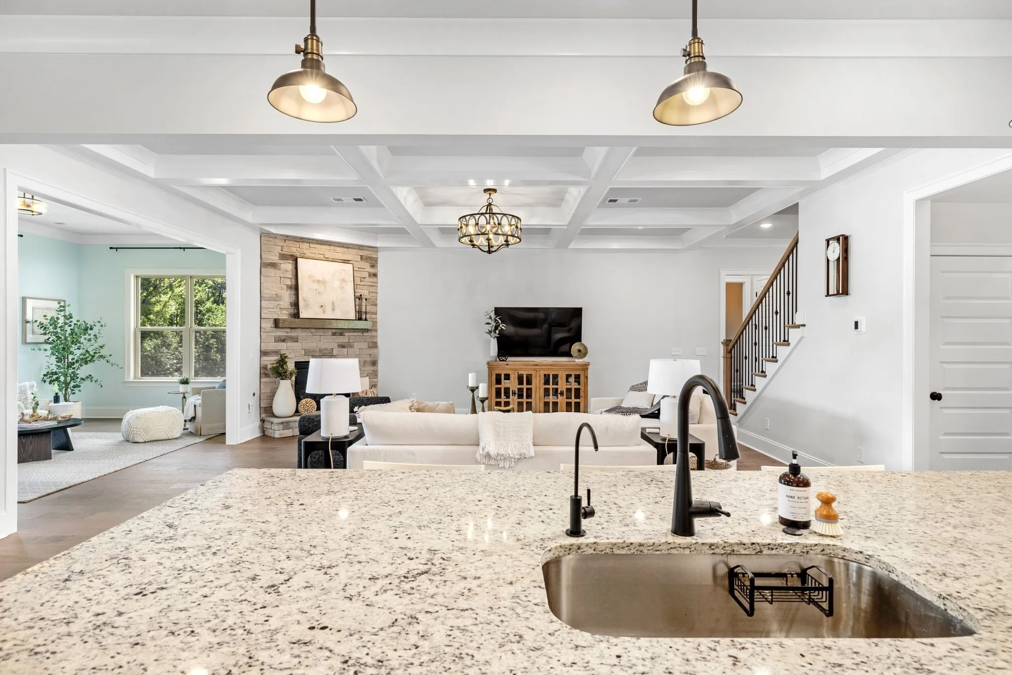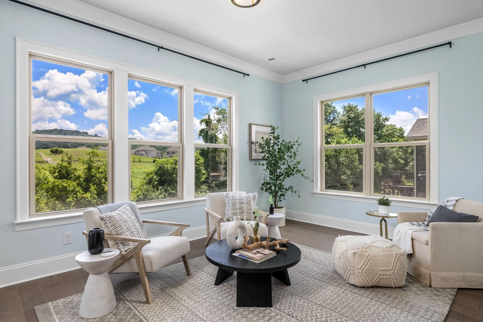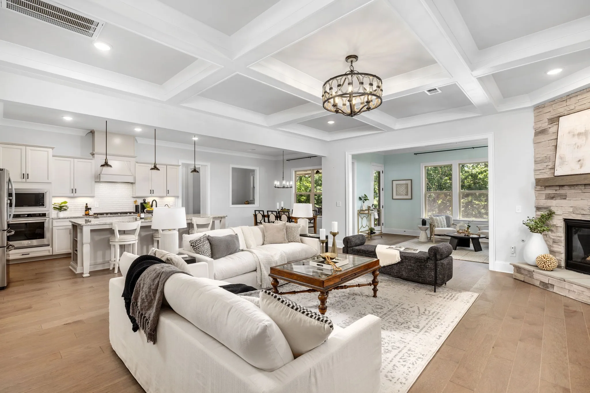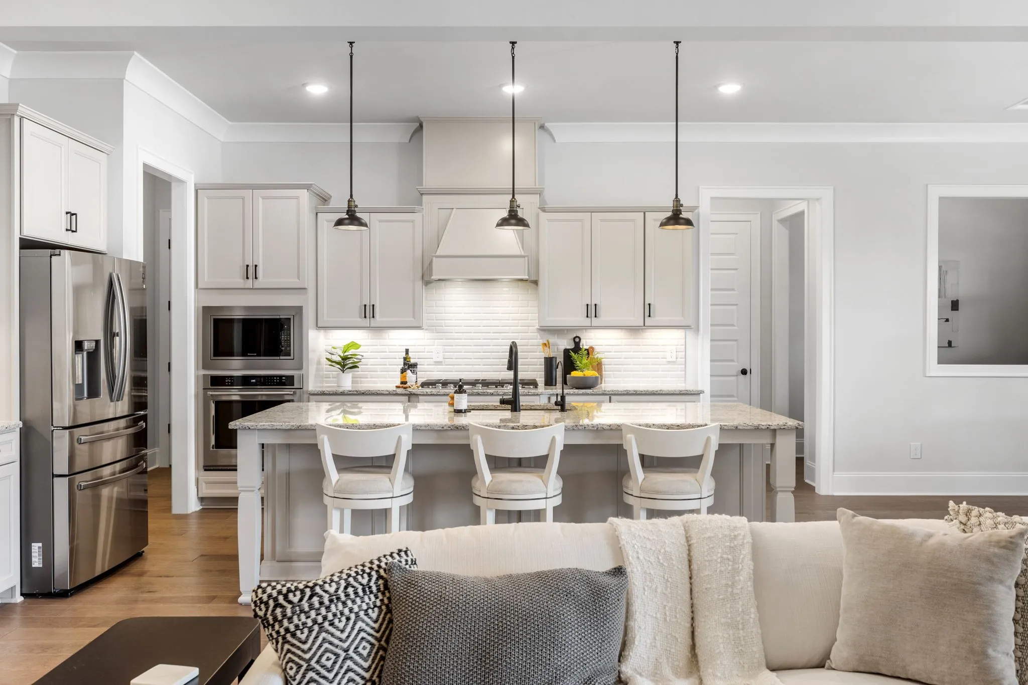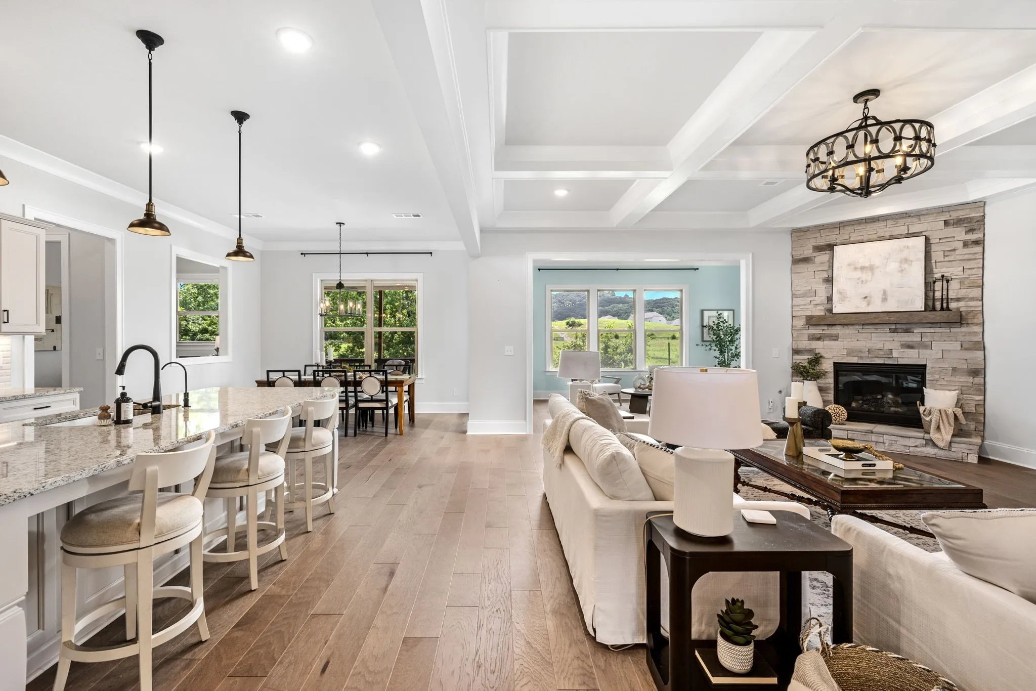 Positioned at the end of a private cul-de-sac in one of Franklin’s most desirable settings, this 2024 built residence offers a rare blend of refined design, exceptional upgrades, & sweeping views across protected green space. Enjoy quiet mornings with coffee as the sun rises behind the home, a view that can be experienced from both the primary suite & sunroom—creating a beautiful start to each day. Outdoor living is designed to impress, centered around a heated saltwater fiberglass pool & spa, covered porch, & patio—all overlooking a fully fenced private backyard. This setting creates a true extension of the home, ideal for effortless entertaining. Thoughtfully designed for the way today’s buyers live, the main level balances open-concept living with intentional spaces for work & retreat. A private office with custom built-ins, guest suite, large formal dining room & light-filled living areas create both function & flow. The chef’s kitchen seamlessly flows into the family room & sunroom, creating an inviting space for both everyday living & entertaining. Upstairs, the primary suite is a true retreat with hardwood flooring, a spa-inspired bath, & generous custom closet space, complemented by additional bedrooms & a versatile bonus area. The fully finished walkout level elevates the home’s versatility, offering a true second residence complete with full kitchen, dedicated laundry, bedroom, bath, den, & a spacious flex room—ideal for multigenerational living. Extensive post-construction enhancements include finished not only the back yard oasis but attic & basement finished space, hardwoods added to the primary suite, designer lighting, custom closets, whole-house water softener, smart irrigation, landscape lighting, custom closets, smart home features throughout & more!. Zoned for top-rated schools including Ravenwood High, & just minutes from shopping & dining, this home offers a rare opportunity to experience elevated living in a truly exceptional setting.