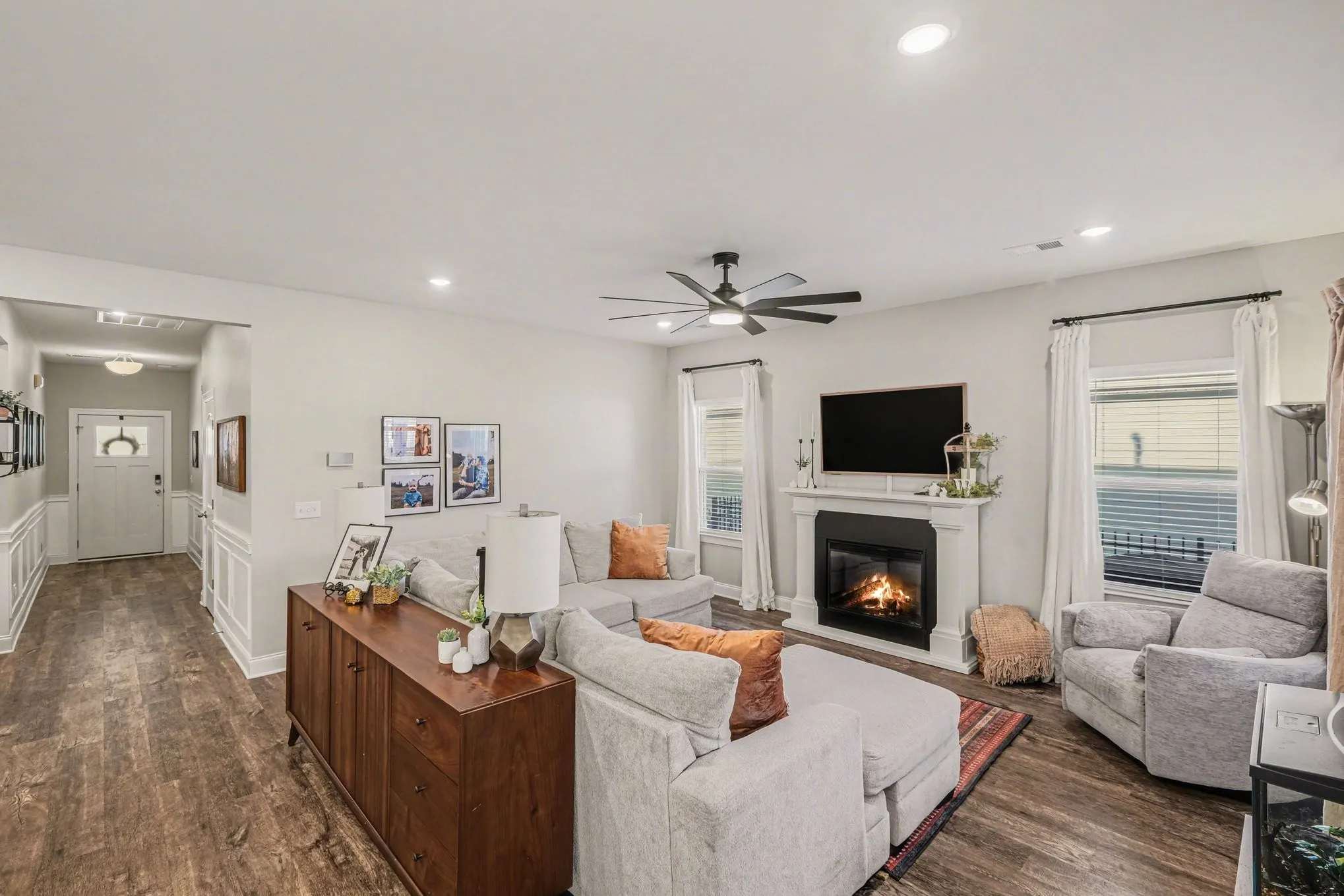 Welcome to this beautifully designed home featuring an open floor plan with LVP flooring throughout and recessed lighting that enhances the bright, modern feel. The spacious kitchen is the heart of the home, complete with a large island that doubles as a breakfast bar, perfect for casual dining and entertaining.