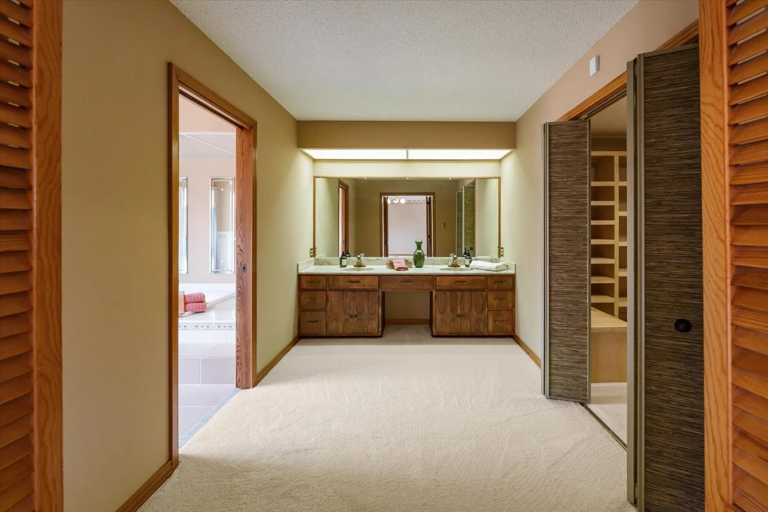 The impressive primary suite spans approximately 1,000 square feet, offering a true owner’s retreat with two oversized walk-in closets—one easily suited for a private office, dressing room, or flex space tailored to your lifestyle.
