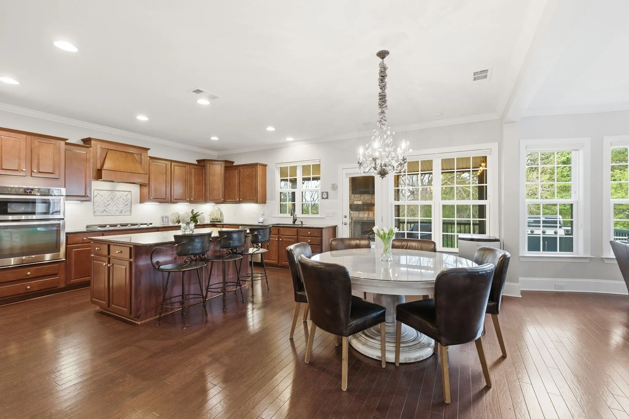 Welcome to 719 Thurrock Circle, a spacious and beautifully designed home in the heart of Brentwood, offering exceptional living space, thoughtful updates, and versatile functionality for today’s lifestyle. This impressive residence features 5,660 square feet, including 3,840 square feet across the main and second levels, plus an additional 1,820 square feet in the fully finished walkout basement. With 6 bedrooms and 5 full bathrooms, there is room for everyone to live, work, and entertain comfortably. The main level is inviting and thoughtfully designed. It features a private office, a guest bedroom with full bath access, a formal dining room, an open-concept eat-in kitchen, and a family great room with a gas fireplace perfect for gathering. A walk-in pantry and a convenient laundry room complement the kitchen. One of the standout features is the newly renovated screened-in porch, complete with a cozy gas fireplace, that looks out to a beautifully wooded lot. This is the quintessential year-round outdoor living space, perfect for watching the sun set. Upstairs, you’ll find four generously sized bedrooms with professionally designed Elfa closet systems and three full bathrooms, including a spacious primary suite. A large bonus room provides flexible space for a playroom, media room, or additional living area. Natural light is abundant, with a clear view of mature trees and the Brentwood hills.The fully finished walkout basement offers incredible versatility, ideal for an in-law suite or extended living space. It includes a bedroom, a full bathroom, an exercise room, a recreation area, and a second living room. There is also a large storage room and access to an enclosed lower-level porch featuring a hot tub and retractable screen—perfect for relaxing at the end of the day. Additional highlights include a 2-car side-entry garage and a prime location zoned for Brentwood High School, a highly desirable school.