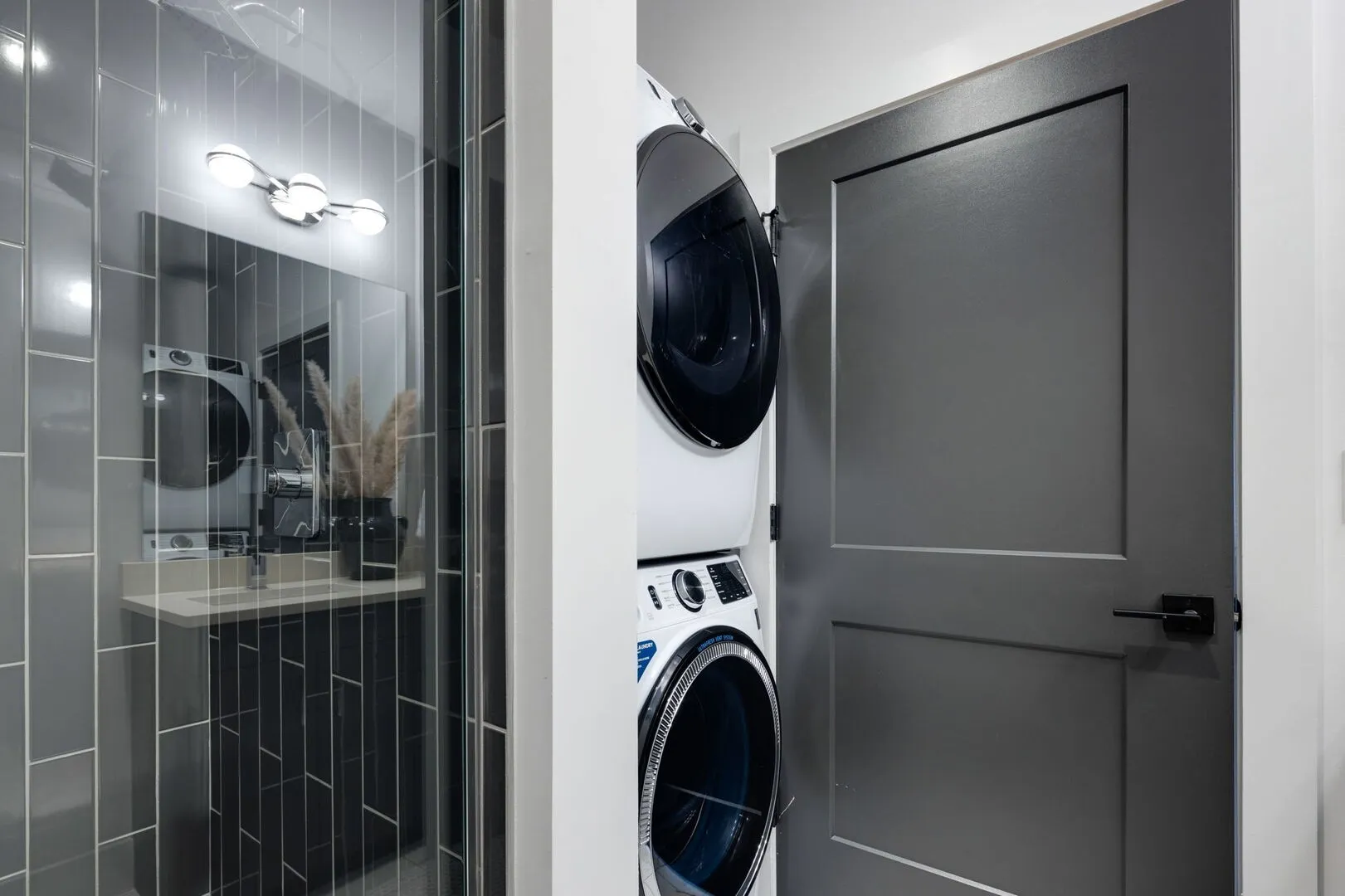 Each residence includes a spacious primary suite with walk-in closet and en-suite bath featuring dual vanities and walk-in shower. Secondary bedrooms are generously sized, with access to well-appointed baths designed for convenience and privacy. In-unit laundry and thoughtful finishes throughout provide modern comfort.