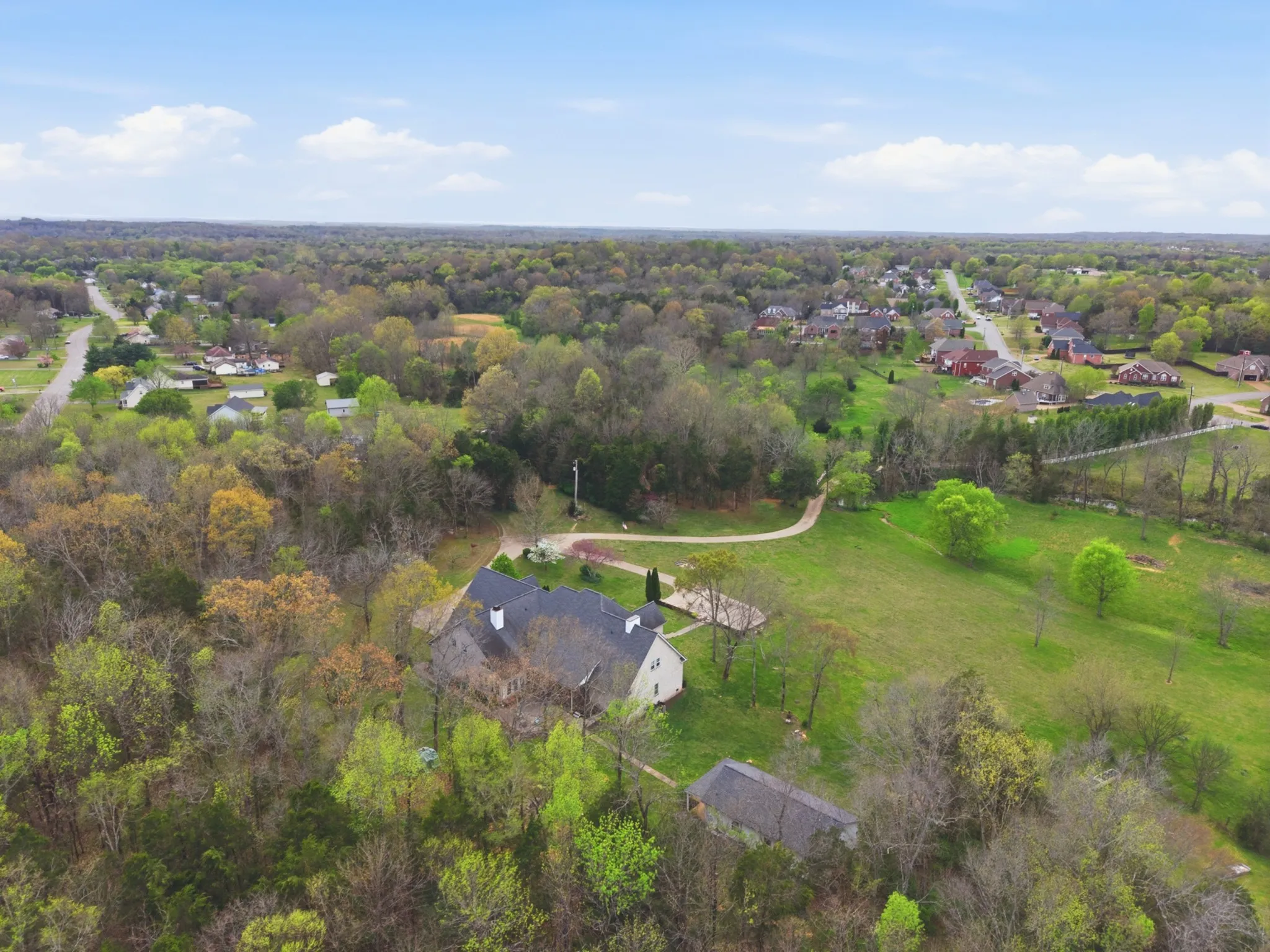 Minutes from shopping and the interstate, tucked behind a long, tree-lined drive, this 14.5-acre property delivers the kind of privacy that’s getting harder and harder to find. The property features a year-round creek, wide open rolling fields ready for recreation or livestock, and pockets of mature woods that create a setting that feels like your own private retreat. Morning coffee overlooking the pasture, kids running the land, evenings watching the sun drop behind the trees – this is what people picture when they say they want space.