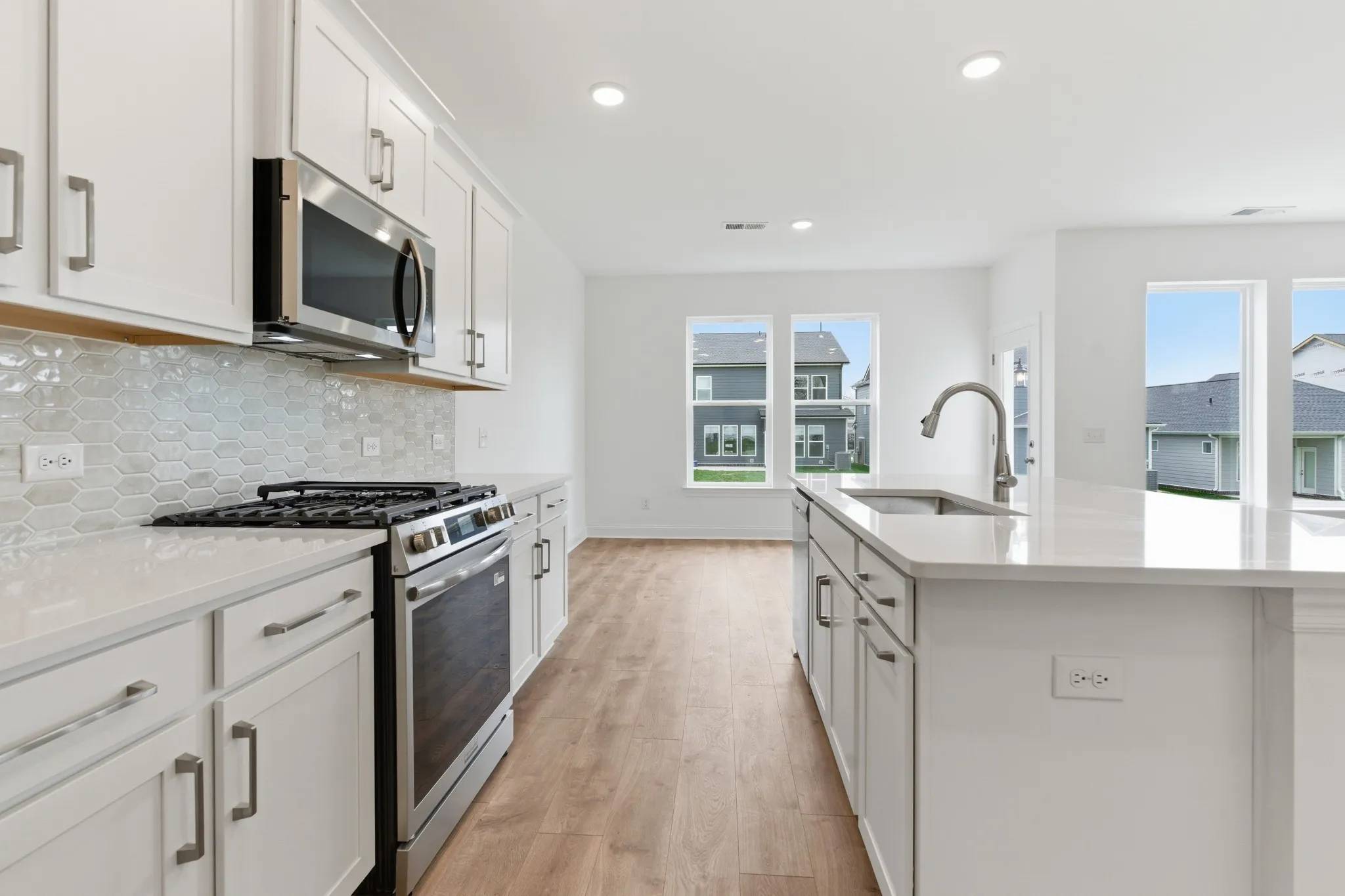 Move-in ready in Nexus with a more private setting—this home sits next to open space, so you only have one direct neighbor. Sidewalks run throughout the community, and HOA includes high-speed internet, making day-to-day living easier. Inside, the primary suite stands out for its size, and the bathroom features a separate tub and shower with unique tile work you’ll want to see in person. The kitchen has a stylish picket backsplash that adds just the right amount of character.
